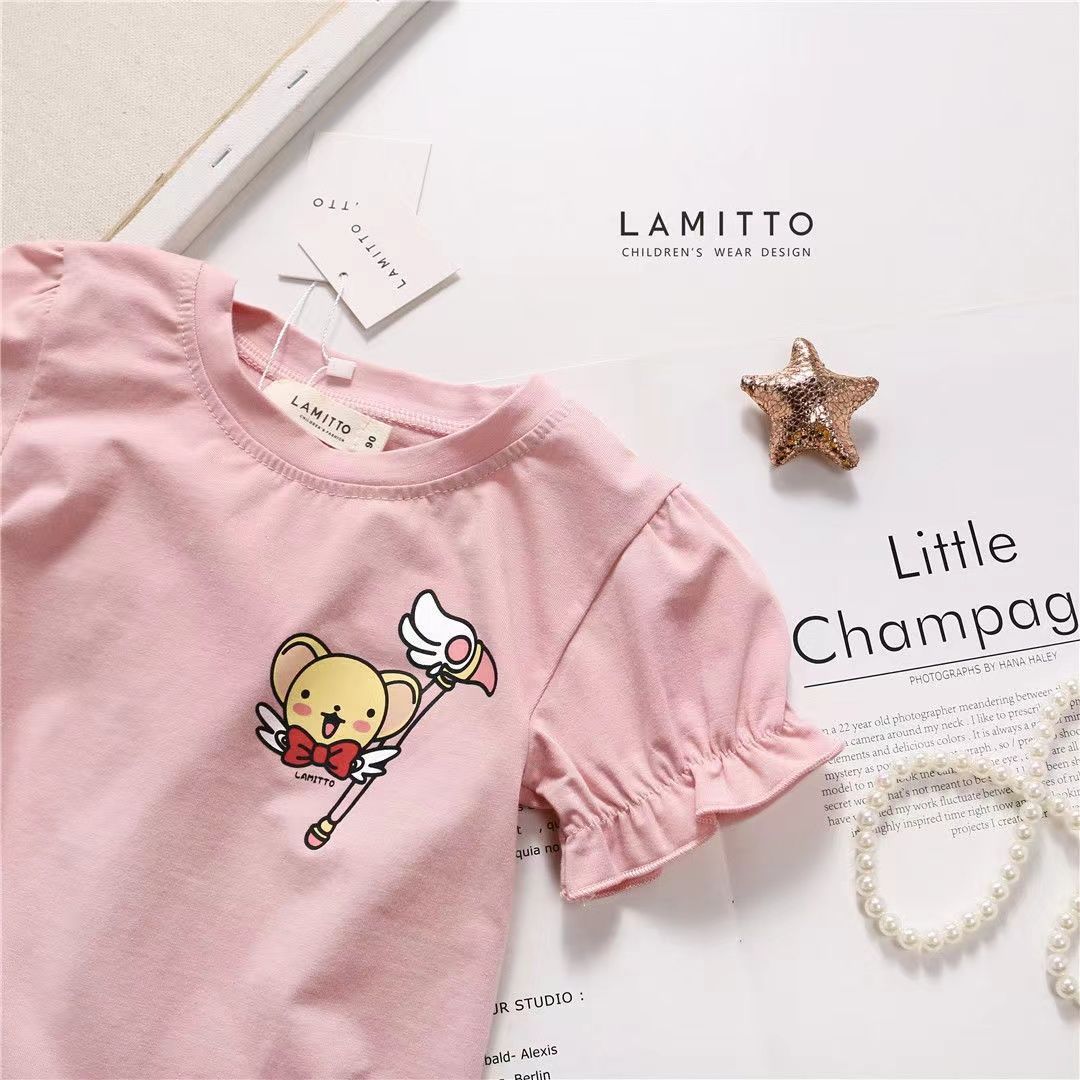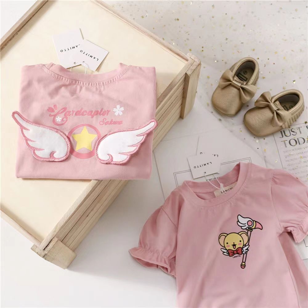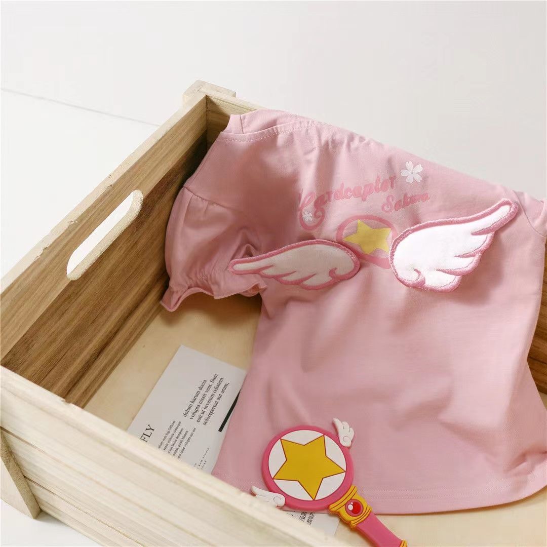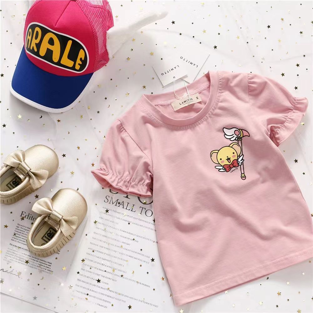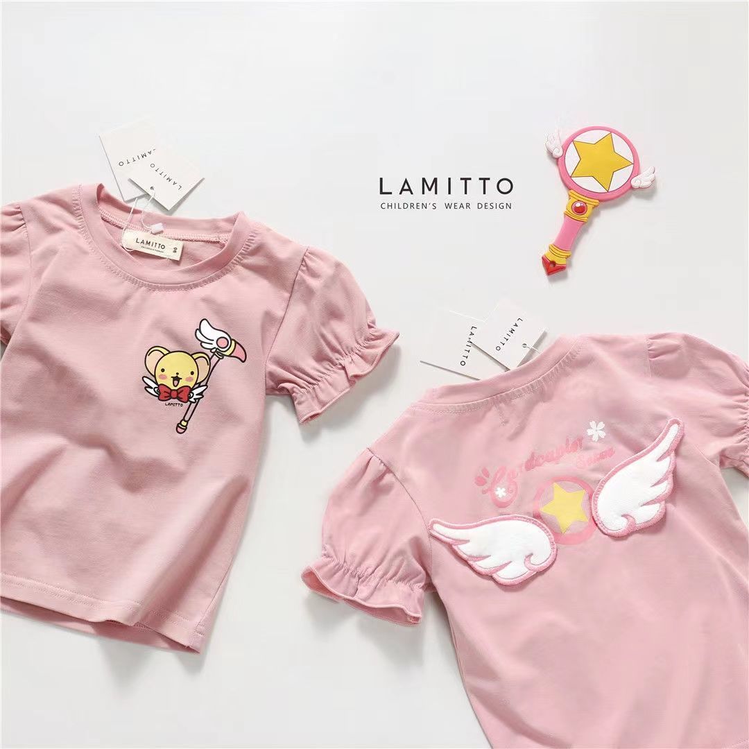 소녀 반팔 티셔츠 여름 새로운 패션 올매치 만화 3 차원 날개 최고 어린이 라운드 칼라 패션스토어 가기