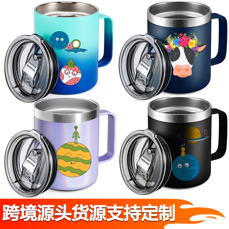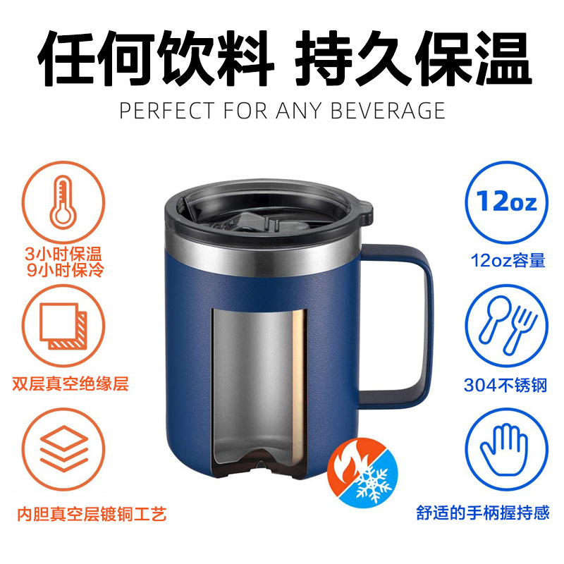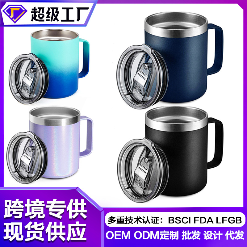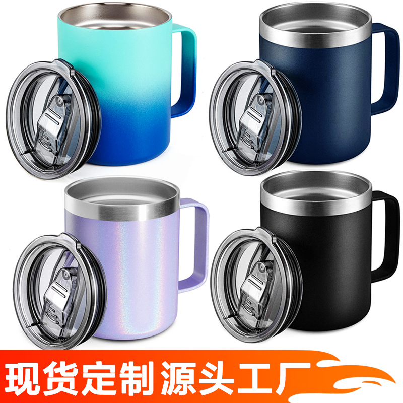 국경을 넘는 인기상품 12oz/14oz 304 스테인리스 스틸 커피 머그컵 보온보냉 사무실용 손잡이 커피컵스토어 가기