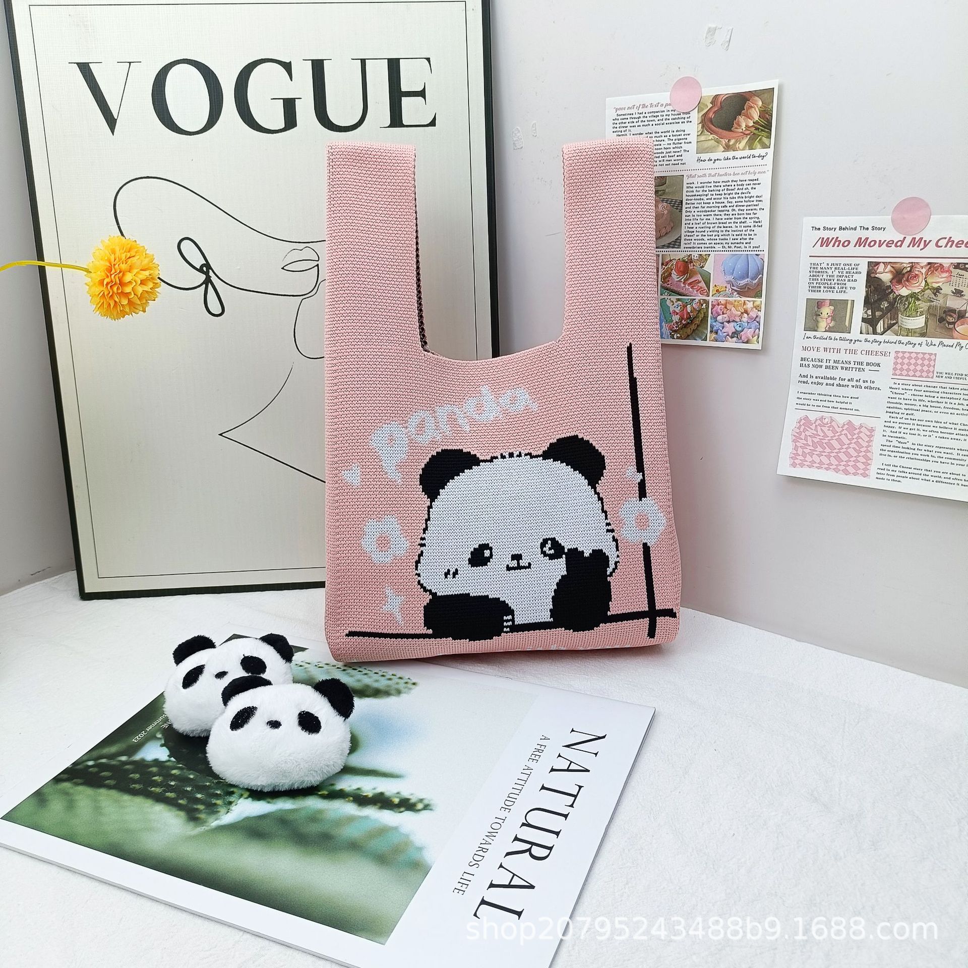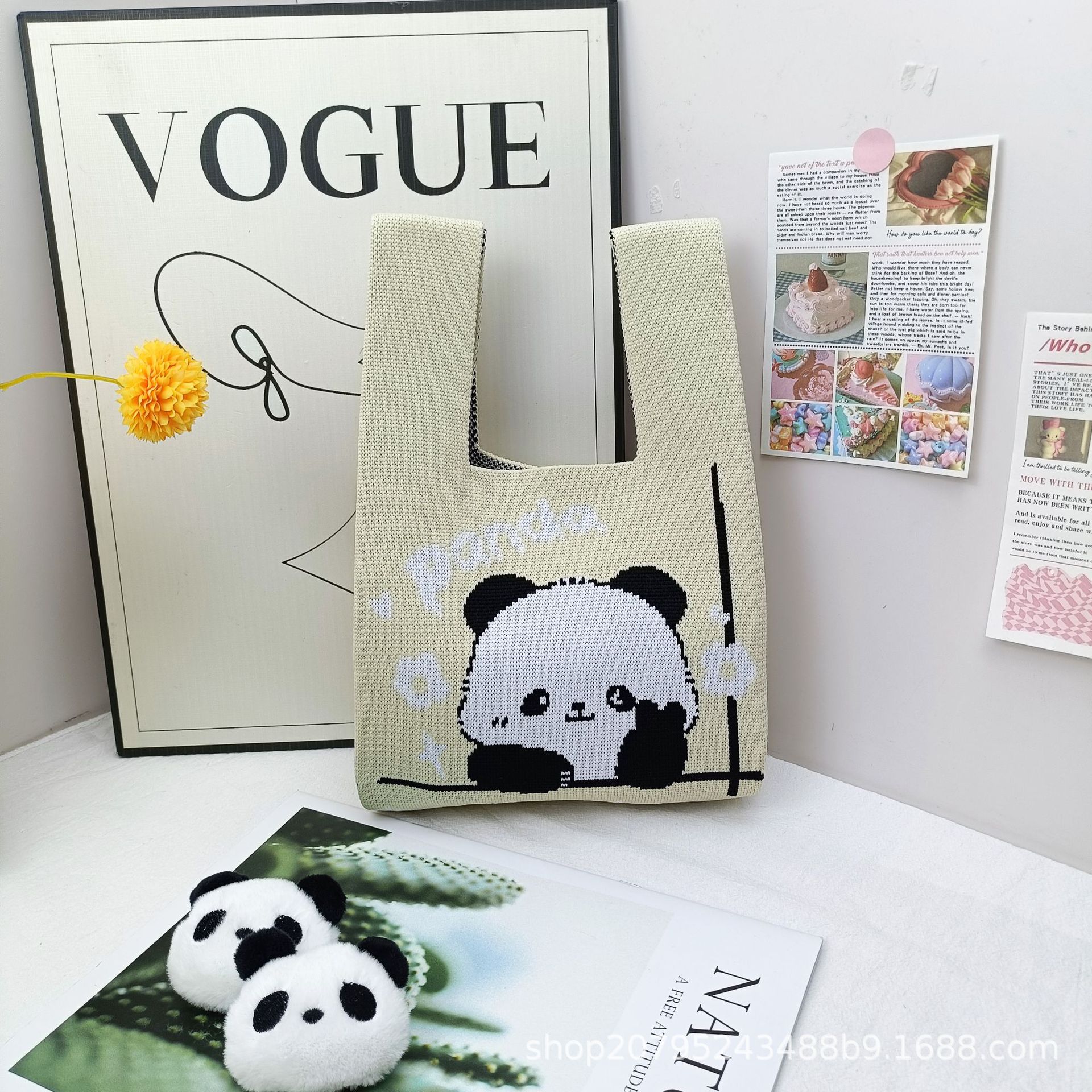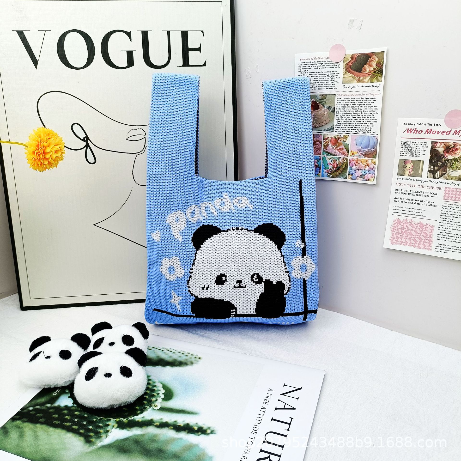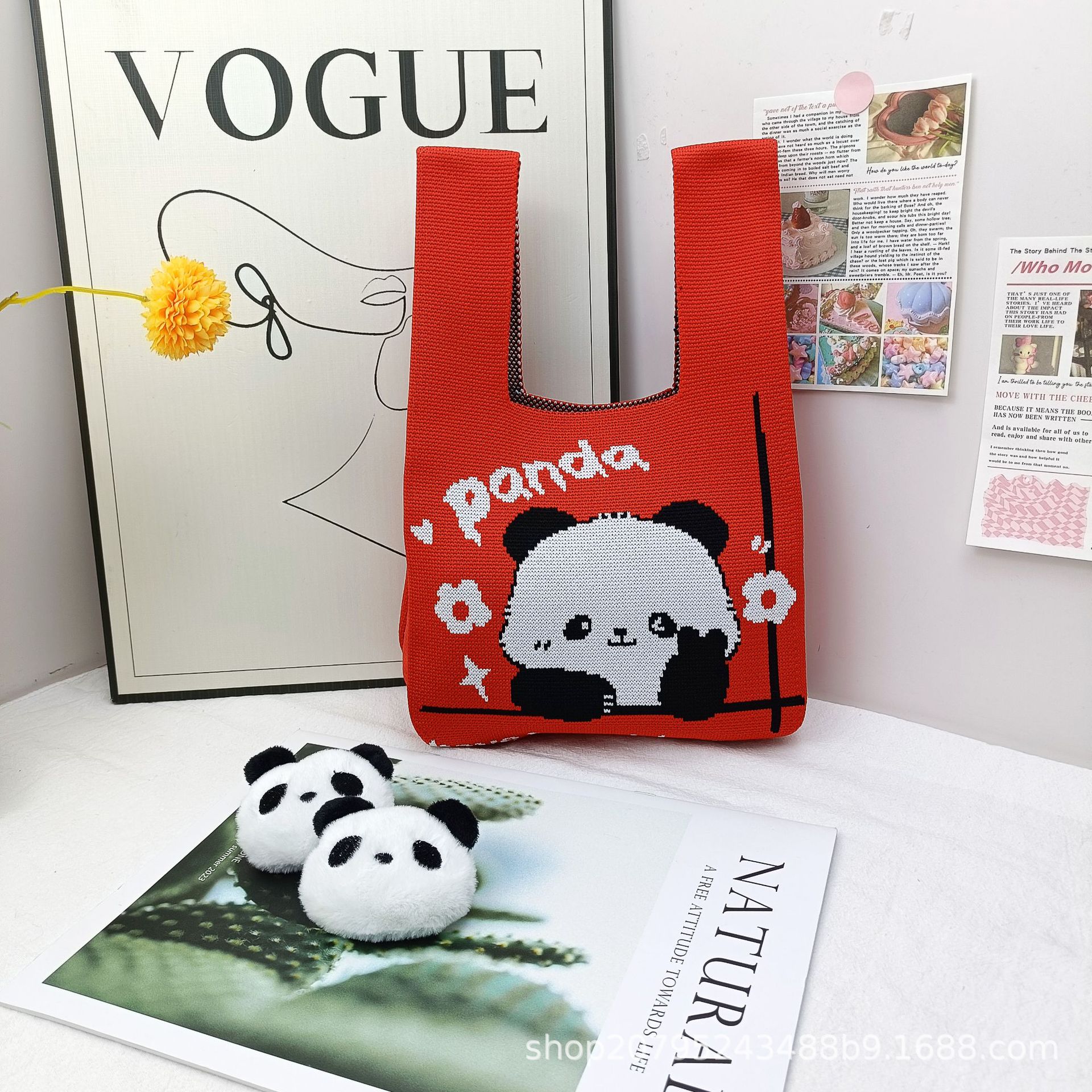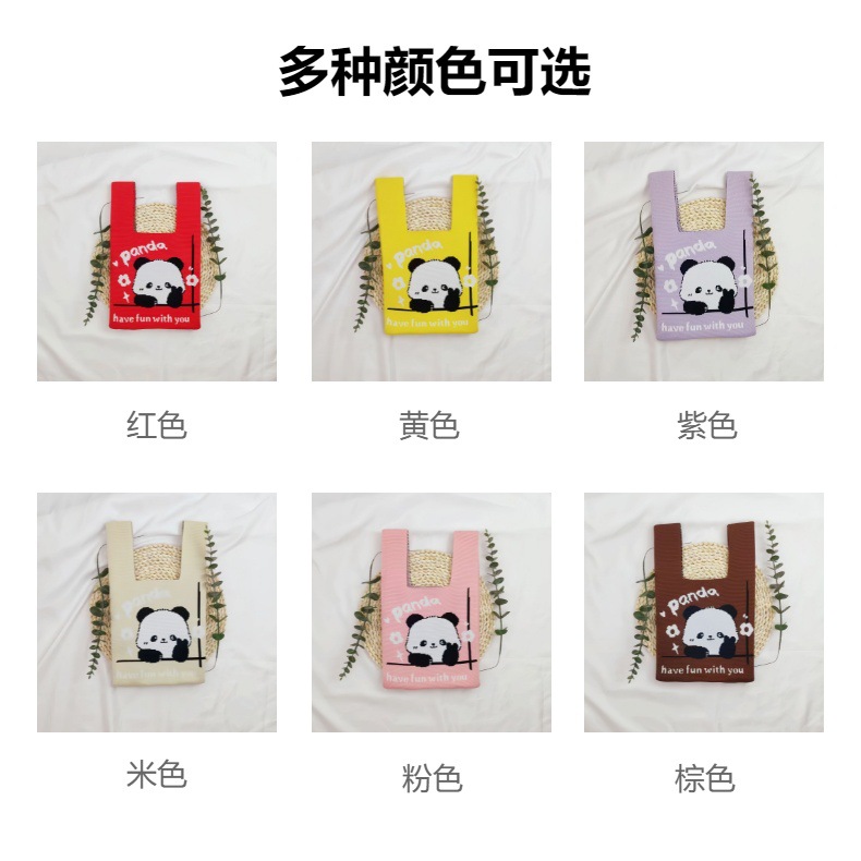 재고 있음 도매 귀여운 다용도 선물 가방 해피 팬더 니트 가방 인기 공장 핸드백 조끼 조끼 가방스토어 가기