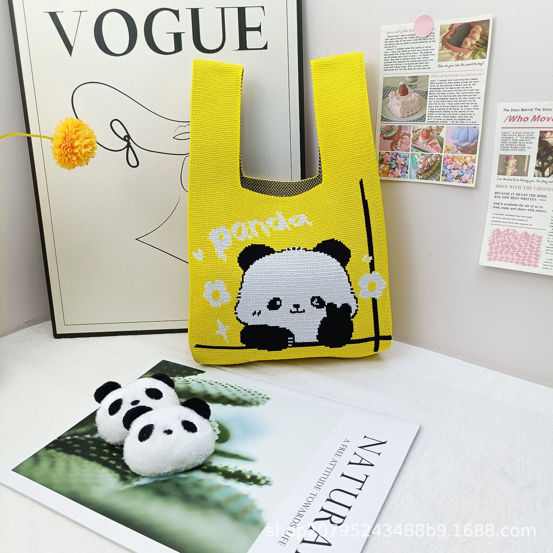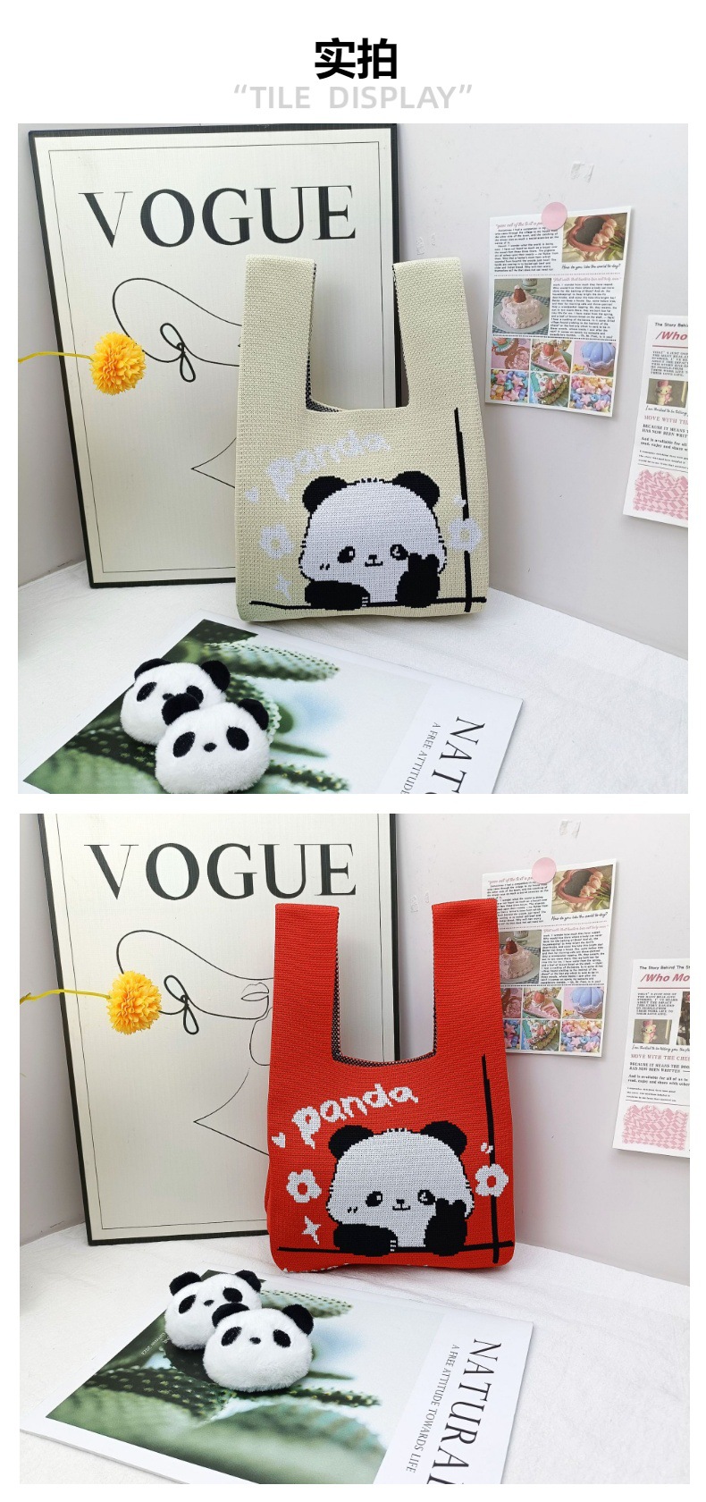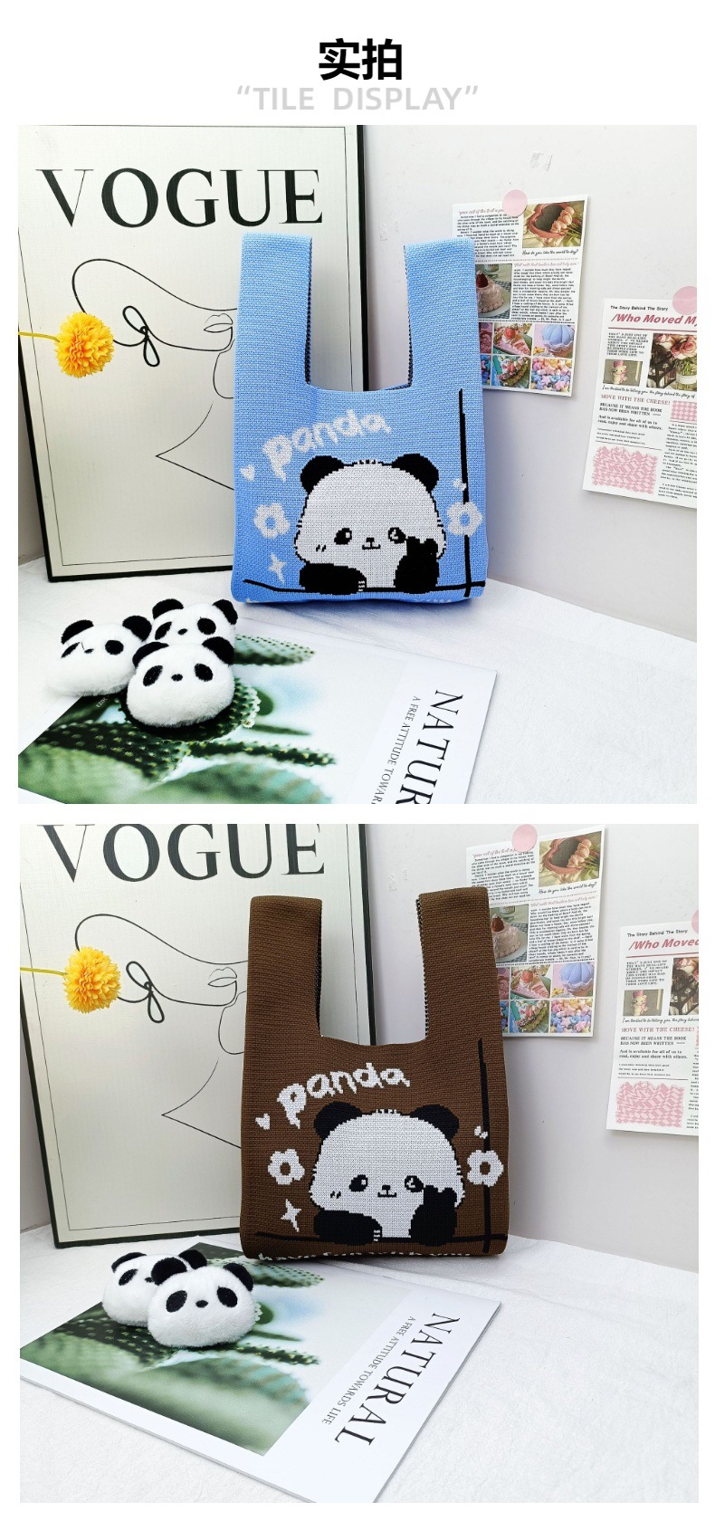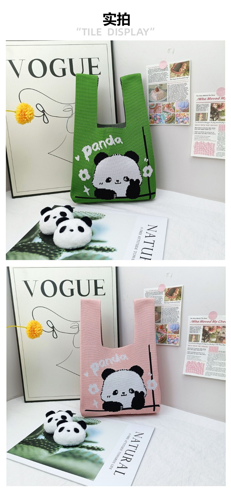재고 있음 도매 귀여운 다용도 선물 가방 해피 팬더 니트 가방 인기 공장 핸드백 조끼 조끼 가방스토어 가기