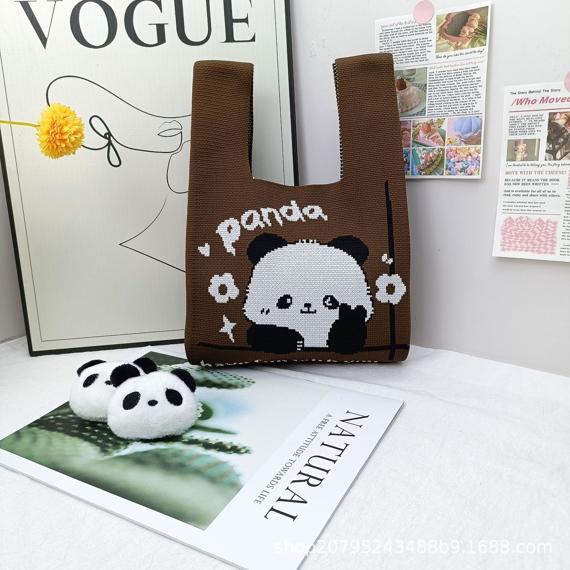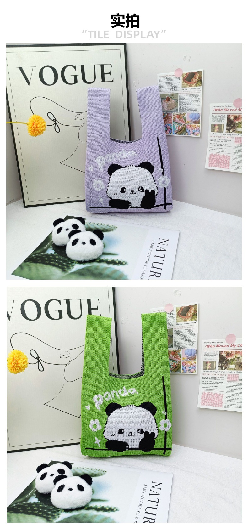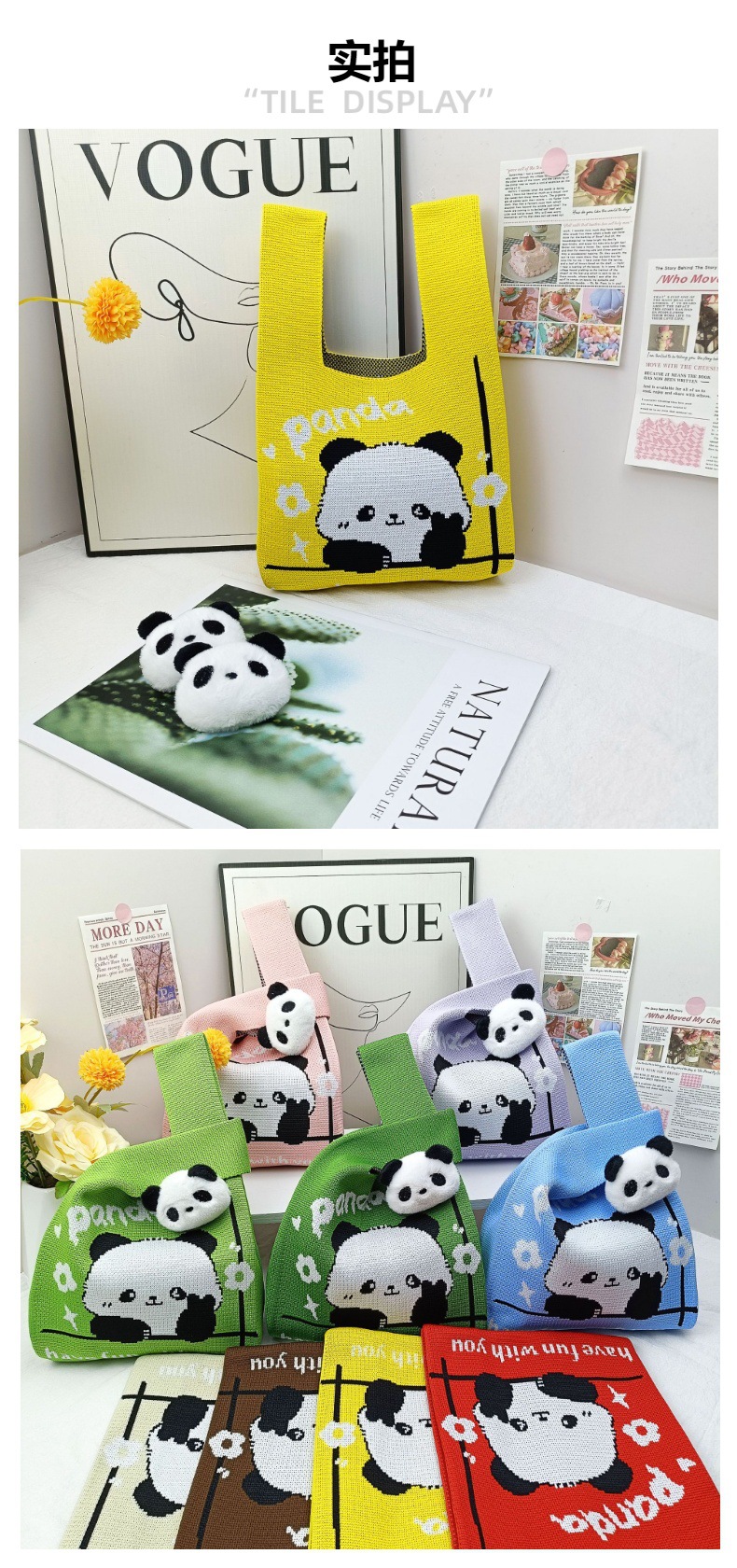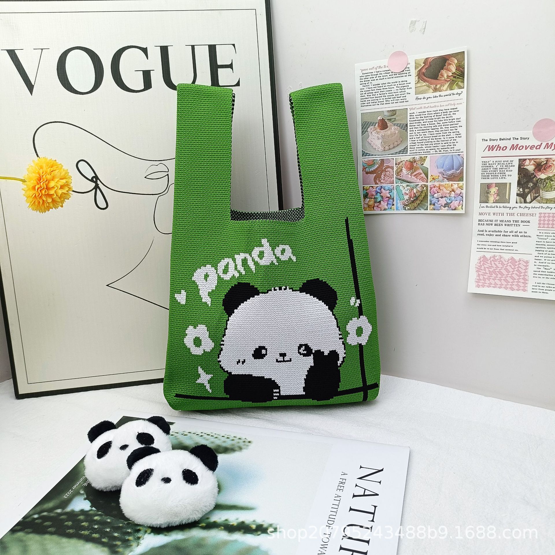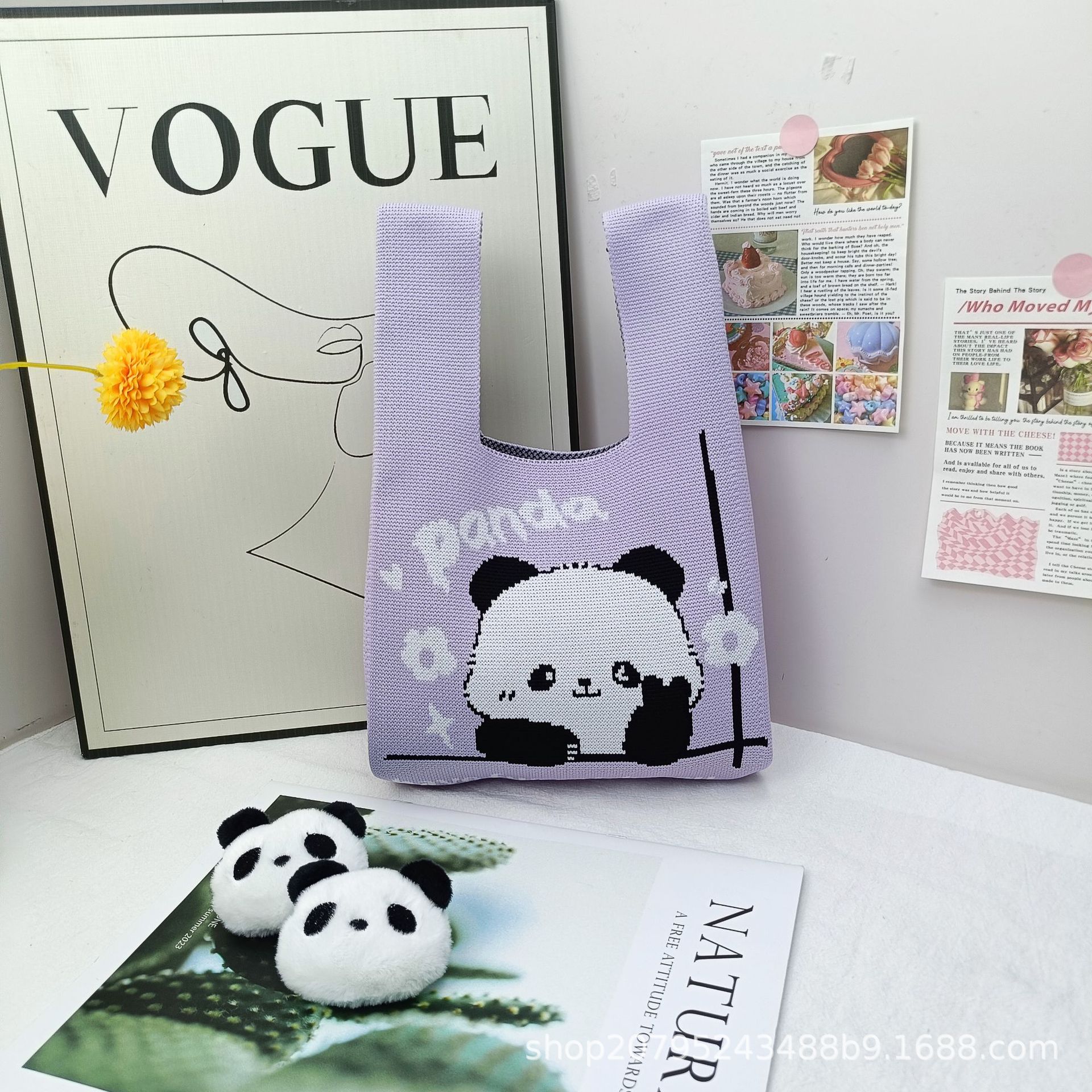 재고 있음 도매 귀여운 다용도 선물 가방 해피 팬더 니트 가방 인기 공장 핸드백 조끼 조끼 가방스토어 가기