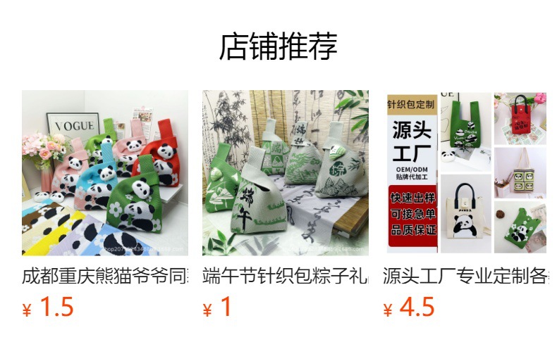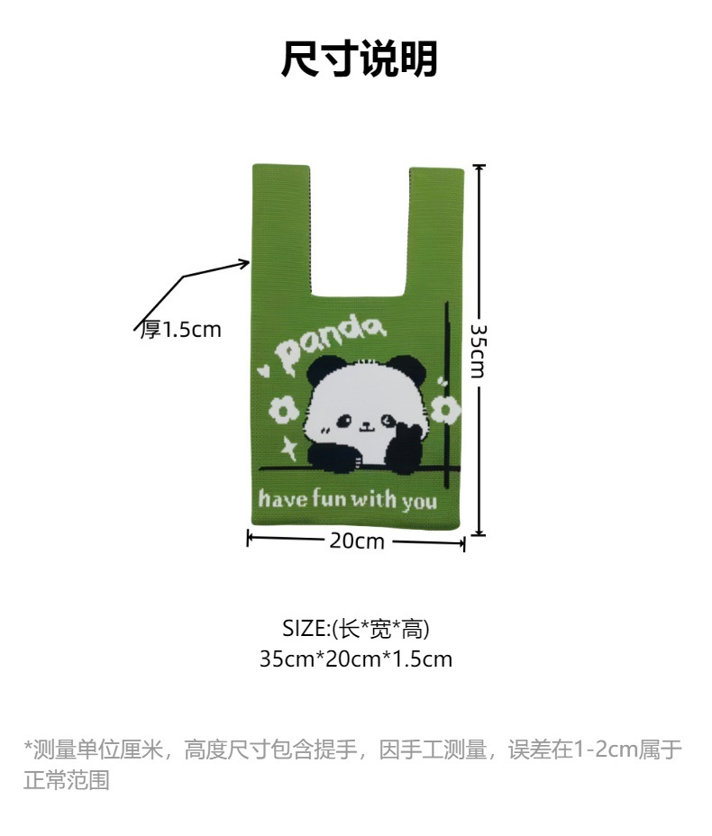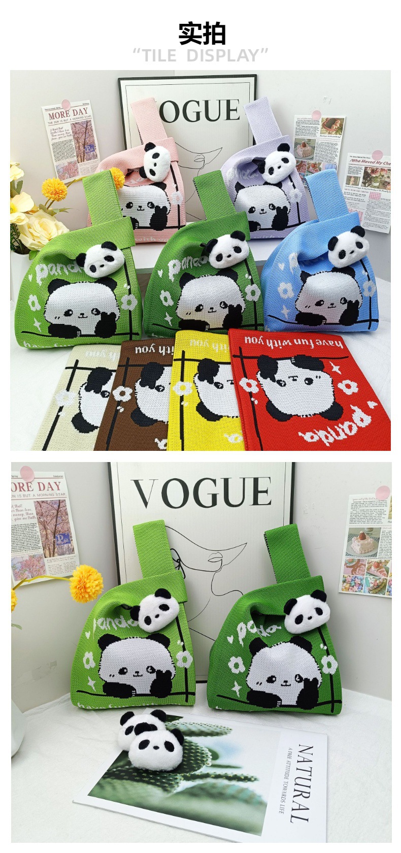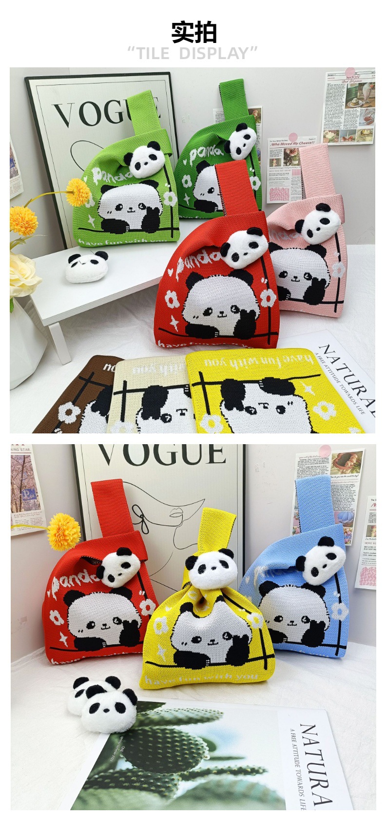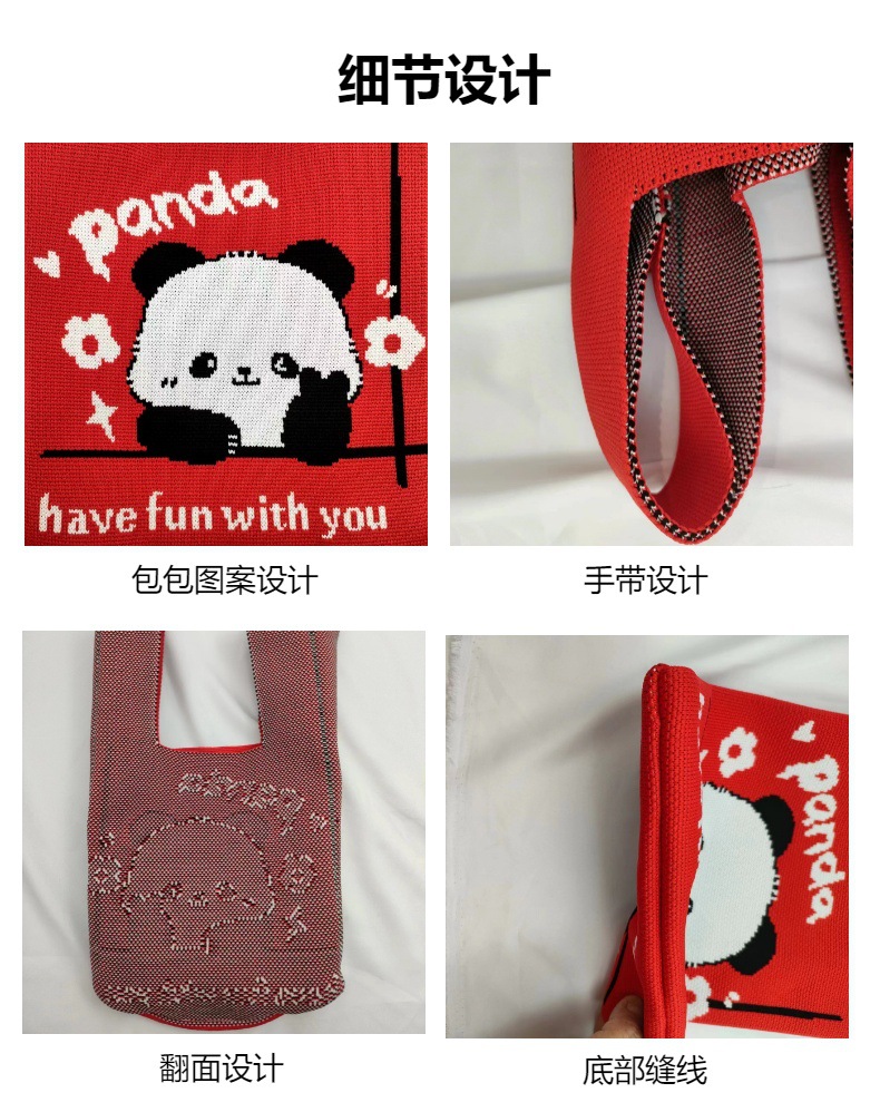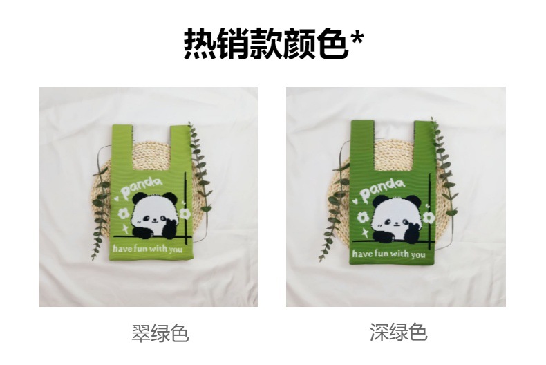 재고 있음 도매 귀여운 다용도 선물 가방 해피 팬더 니트 가방 인기 공장 핸드백 조끼 조끼 가방스토어 가기