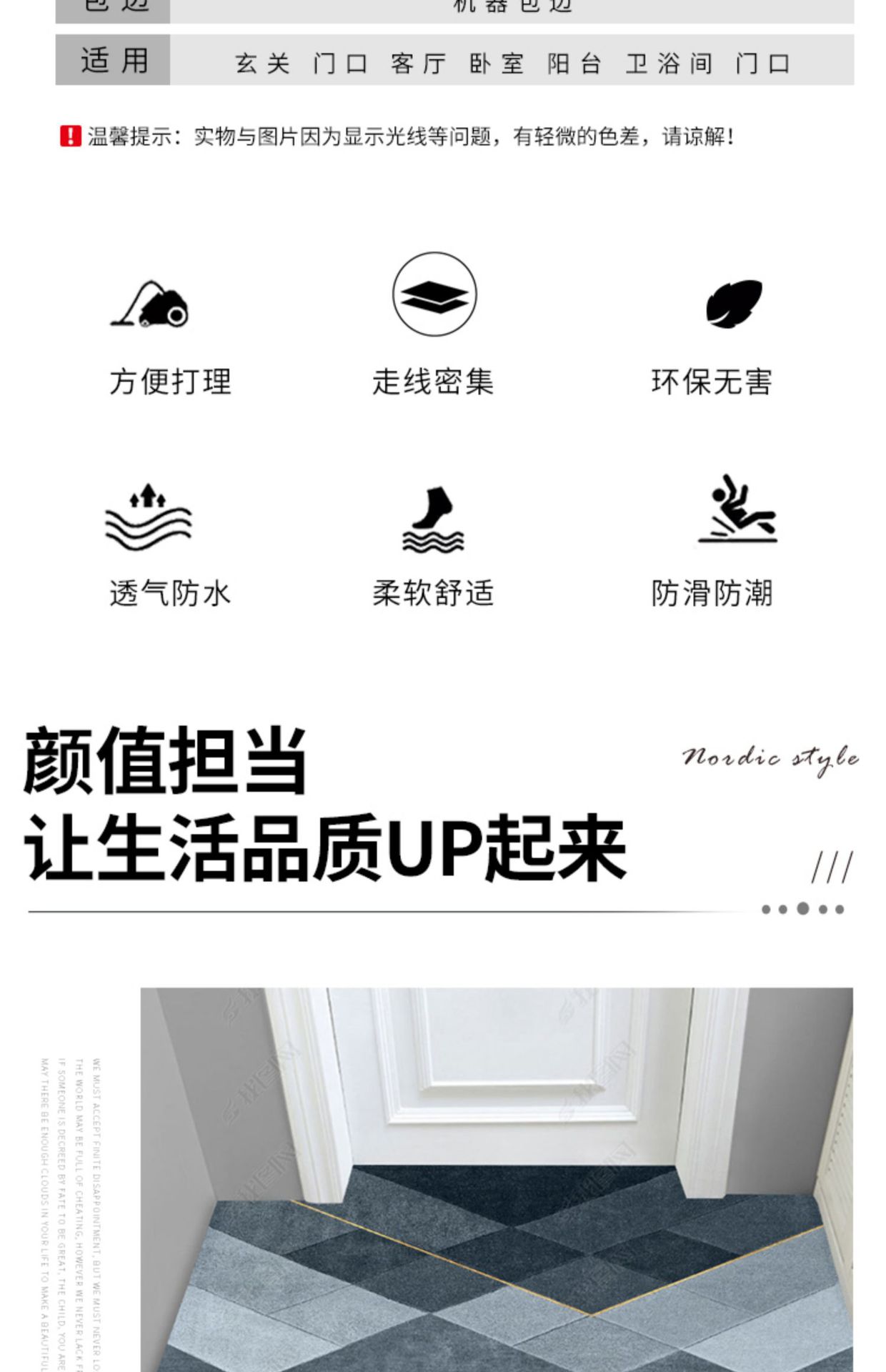 현관 매트, 출입문 매트, 거실 카펫, 침실 카펫, 욕실 매트, 화장실 매트, 미끄럼 방지 매트, 내마모성