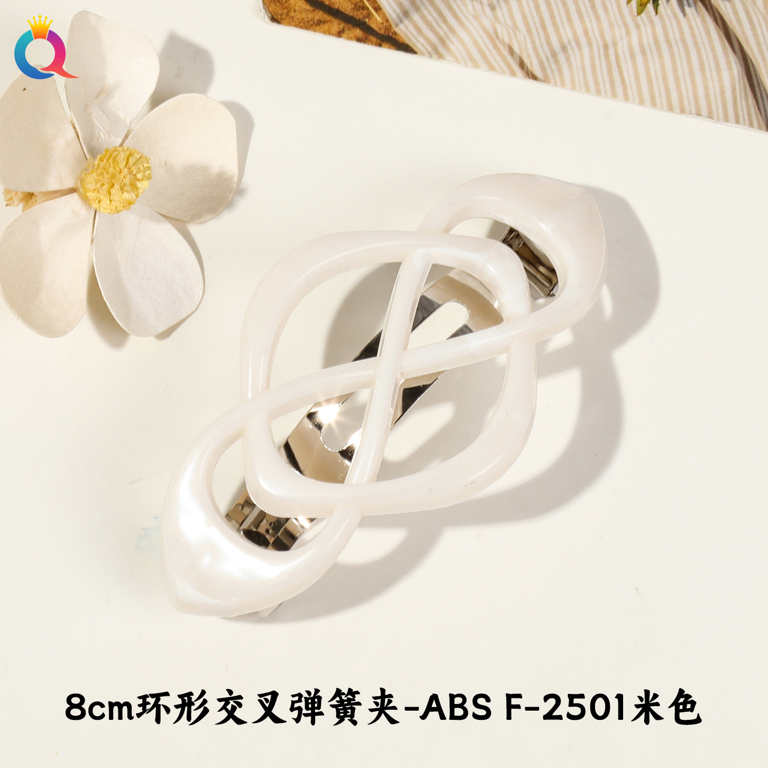 • 링 크로스 스프링 클립 - 프로스티드 오프화이트