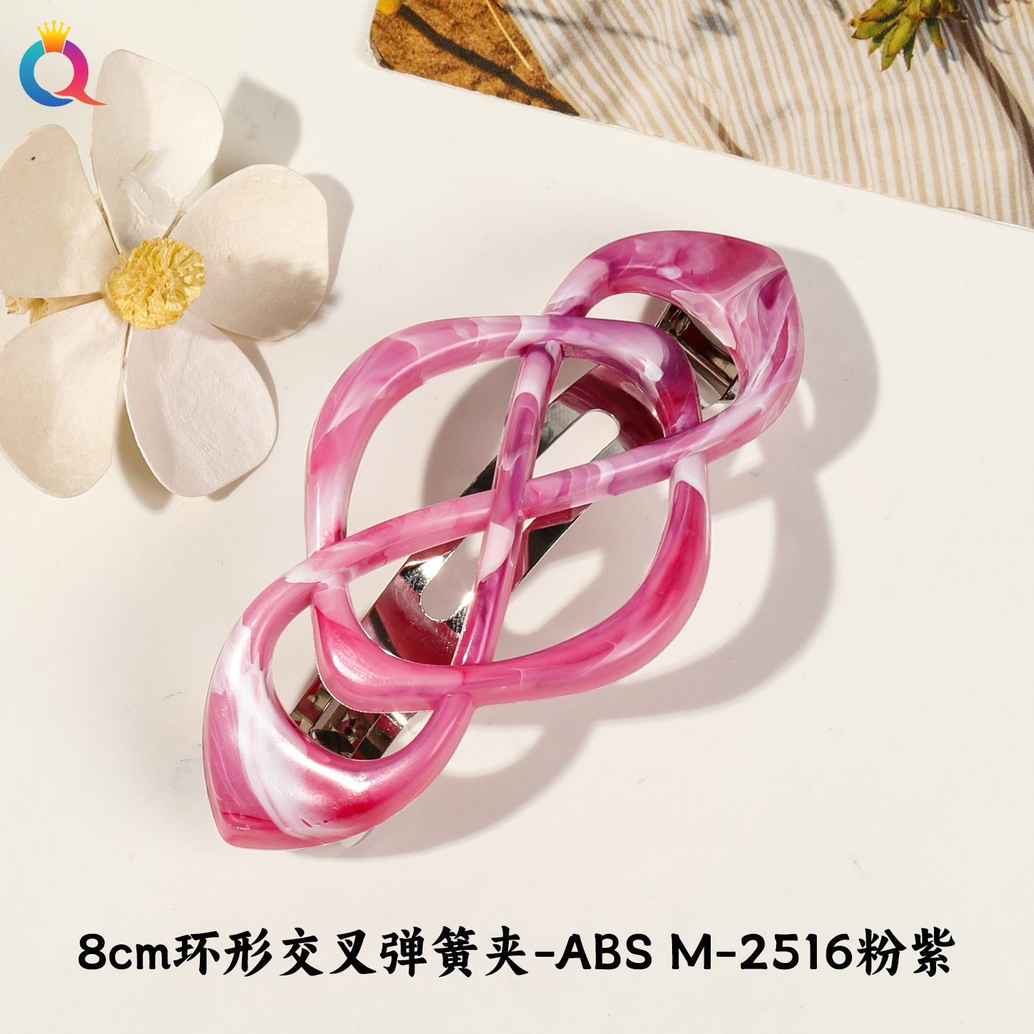 • 8cm 링 크로스 스프링 클립-ABS-M-2516 핑크 퍼플
