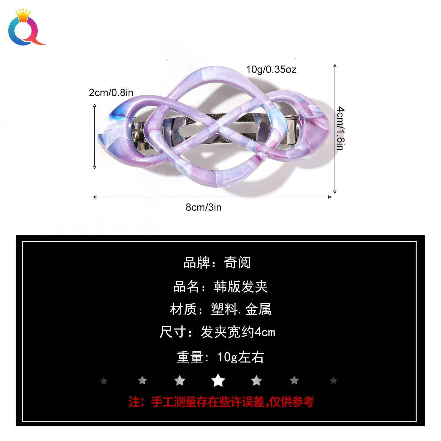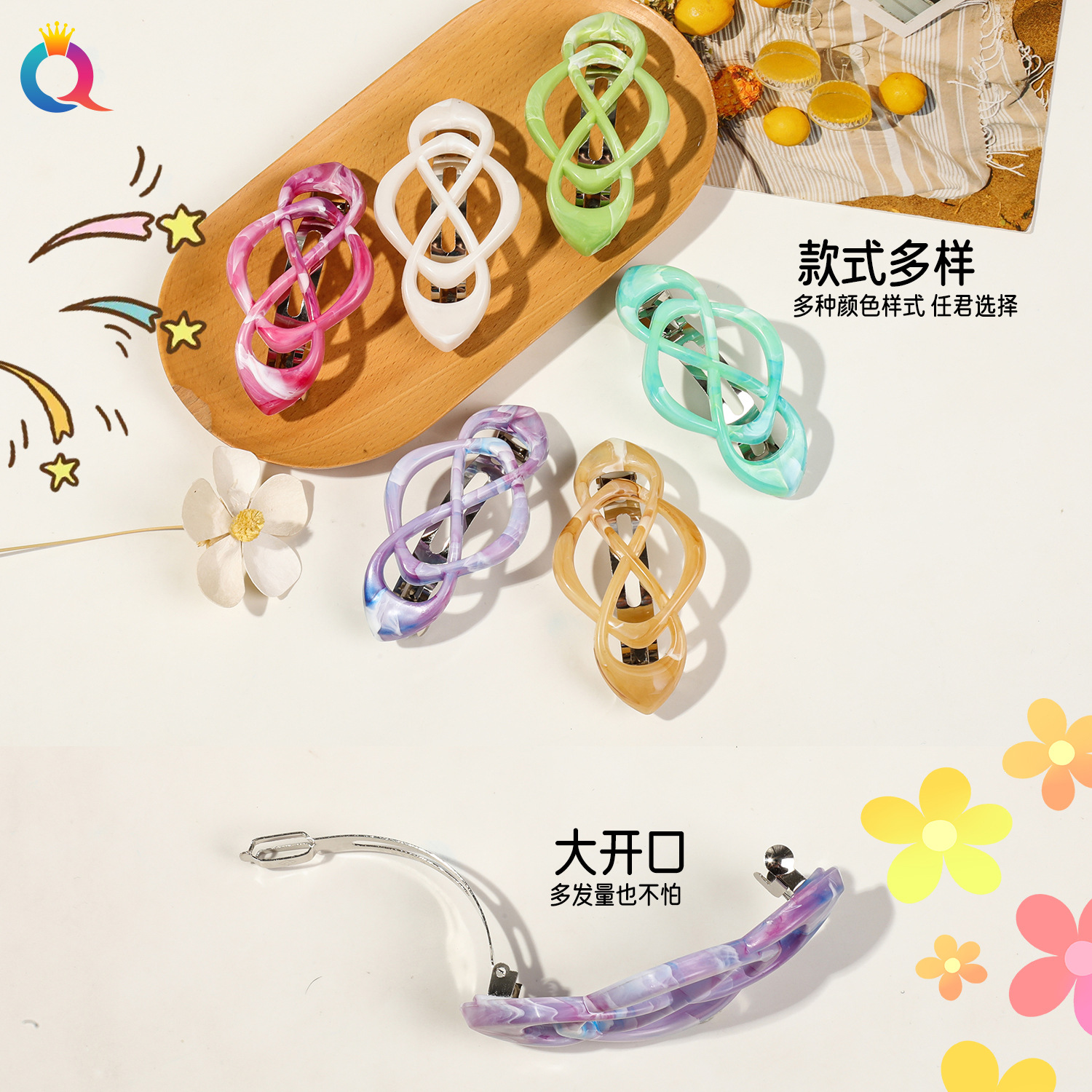 Qiyue 크로스 국경 헤어 클립 크로스 포니 테일 하프 헤어 스프링 클립 고급 센스 헤어 클립 헤어 액세서리 도매스토어 가기