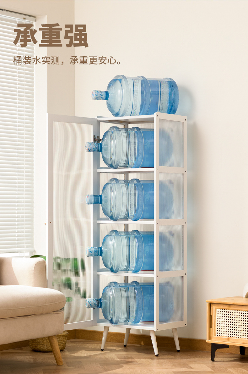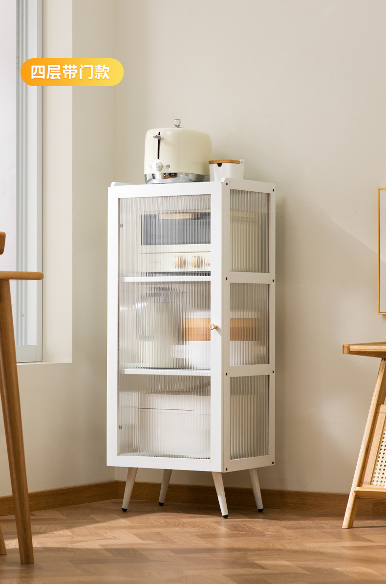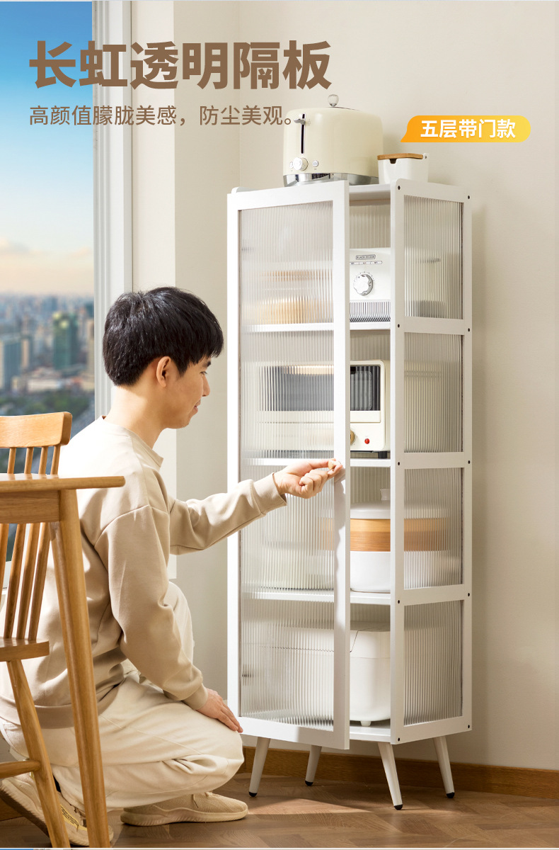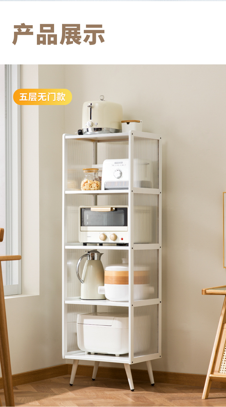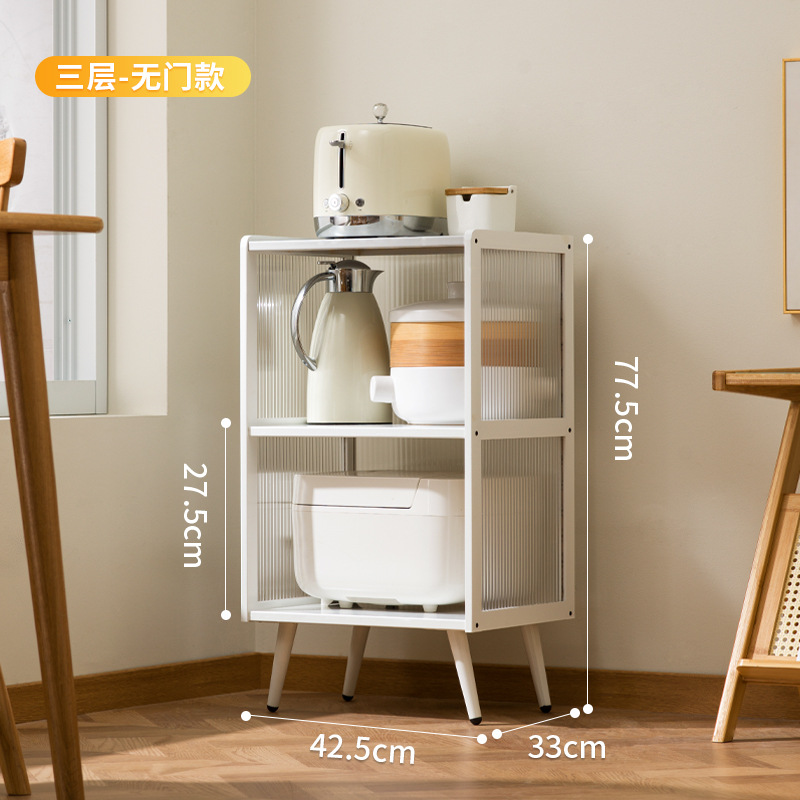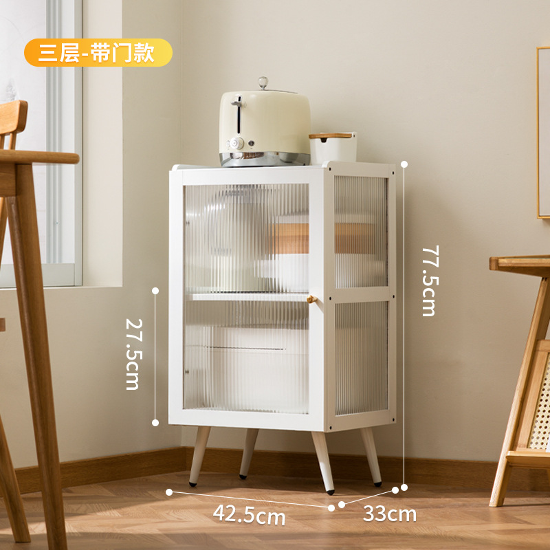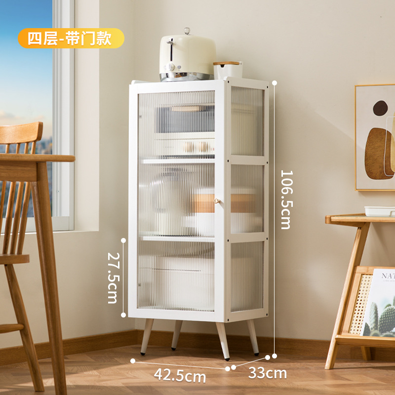 주방 보관 랙 도어 및 보울 캐비닛 전자 레인지 오븐 냄비 랙 다이닝 사이드 스토리지 캐비닛이있는 바닥에 서있는 다층 보관 캐비닛스토어 가기