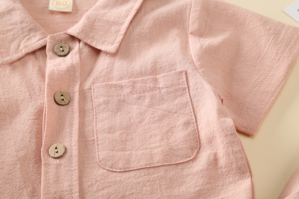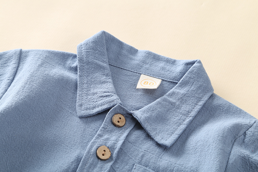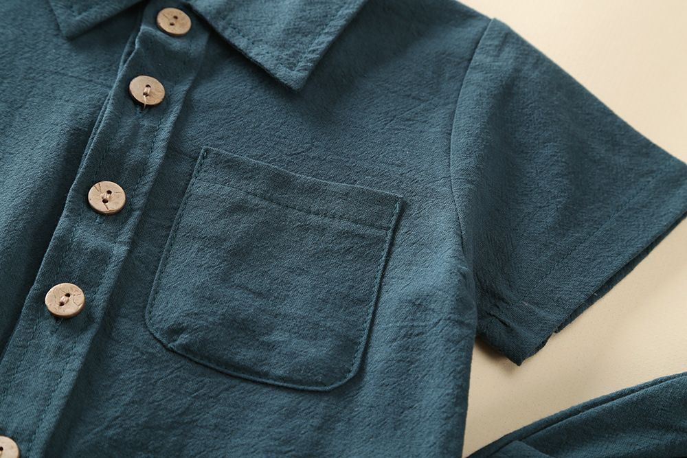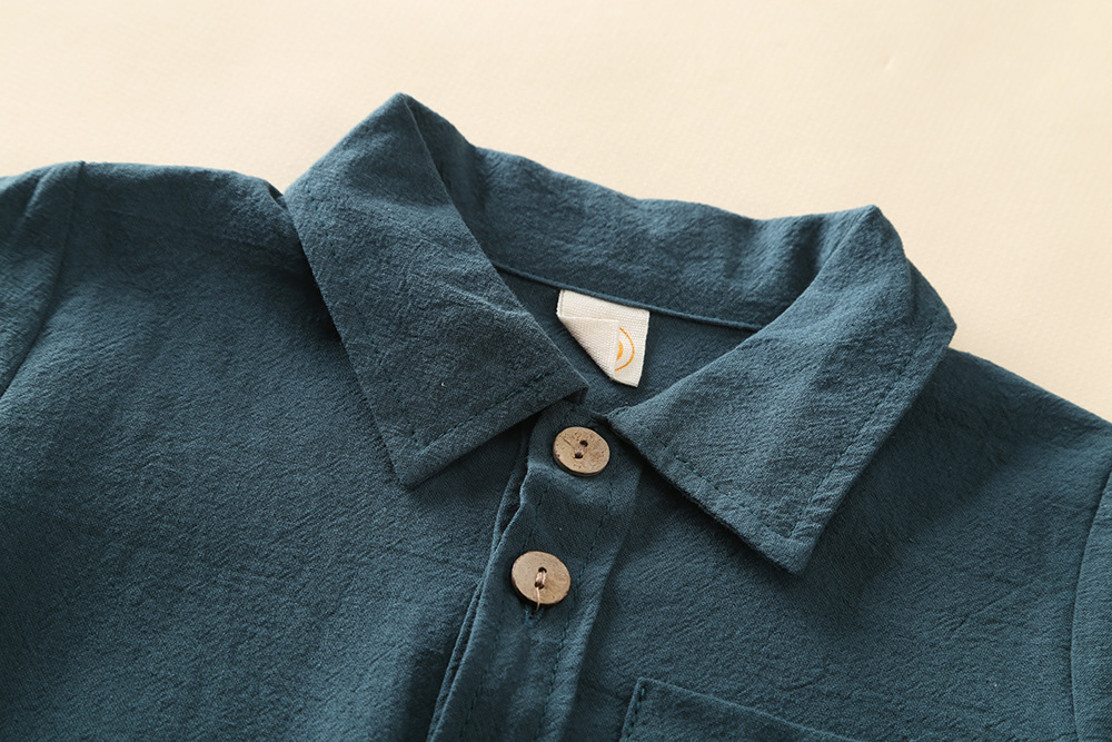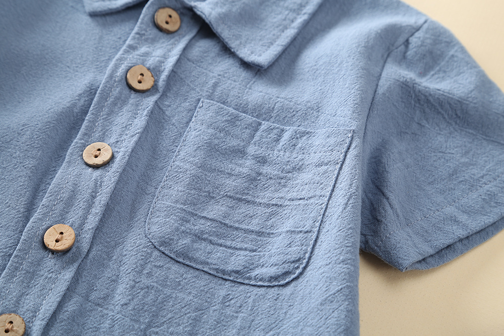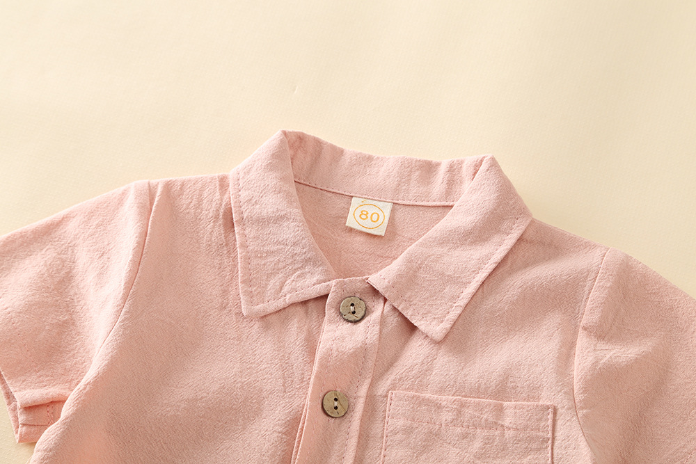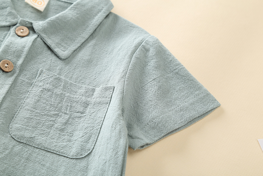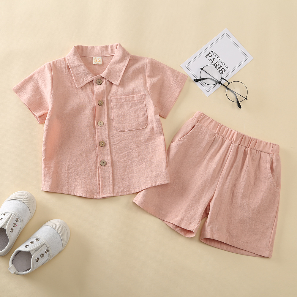 2024 여름 소년 솔리드 컬러 옷깃 코튼 반팔 셔츠 반바지 정장 아동 캐주얼 투피스 세트 대외 무역 아동 의류