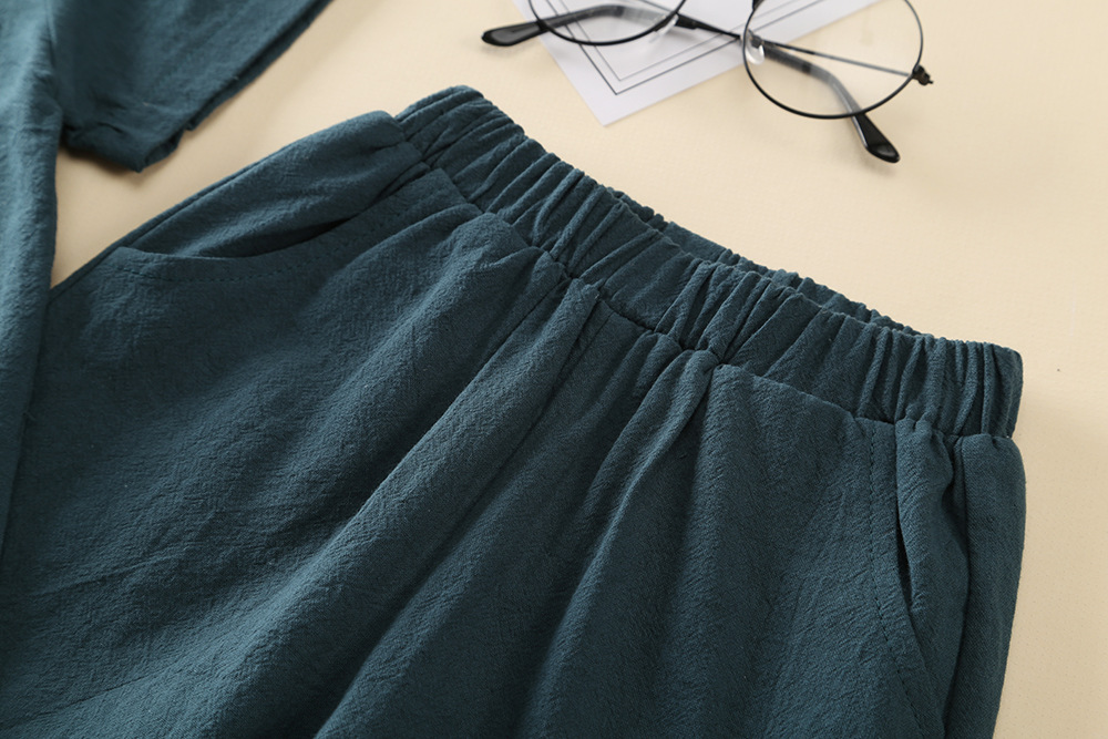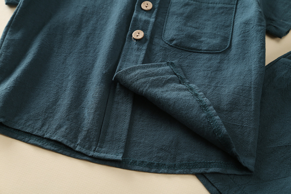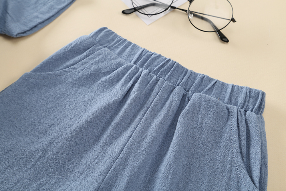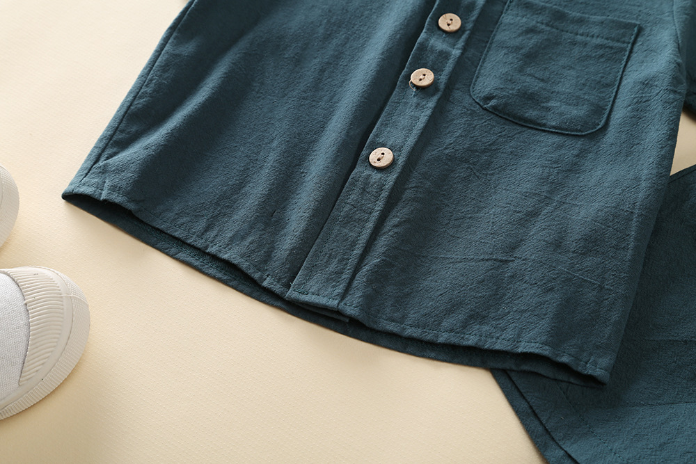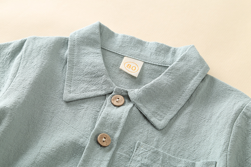 2024 여름 소년 솔리드 컬러 옷깃 코튼 반팔 셔츠 반바지 정장 아동 캐주얼 투피스 세트 대외 무역 아동 의류스토어 가기
