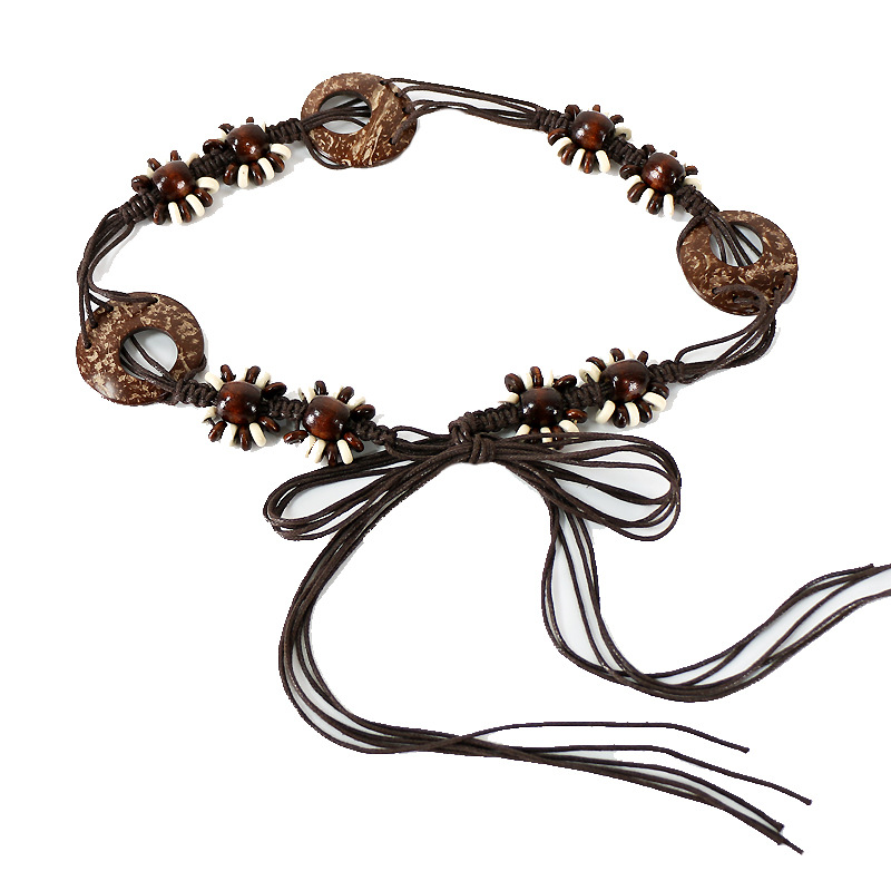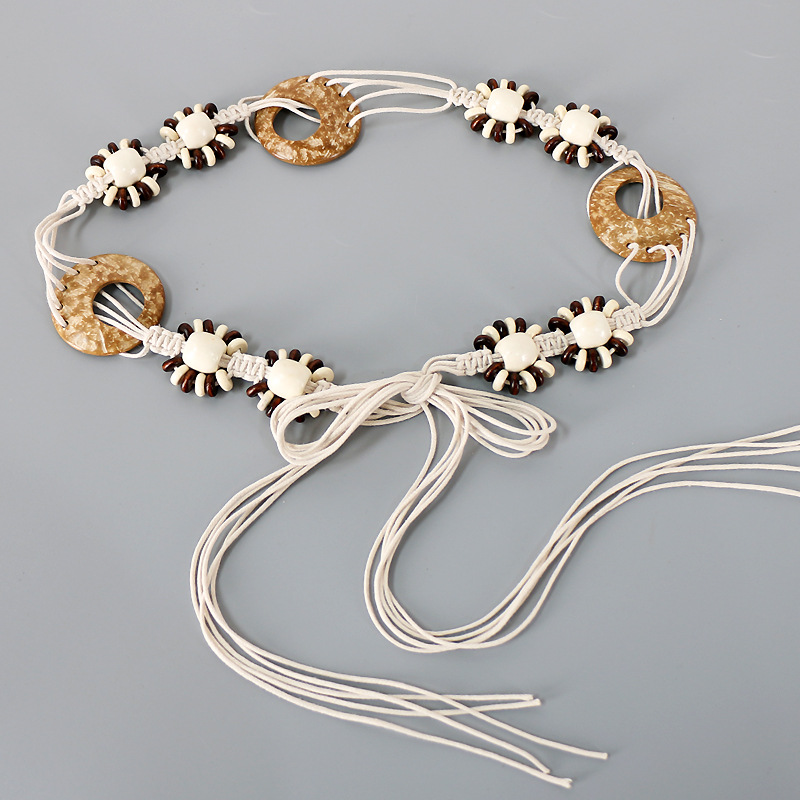 민족풍 수제 직조 벨트 여성용 스커트 레트로 다용도 보헤미안 장식 허리 체인 비즈 액세서리