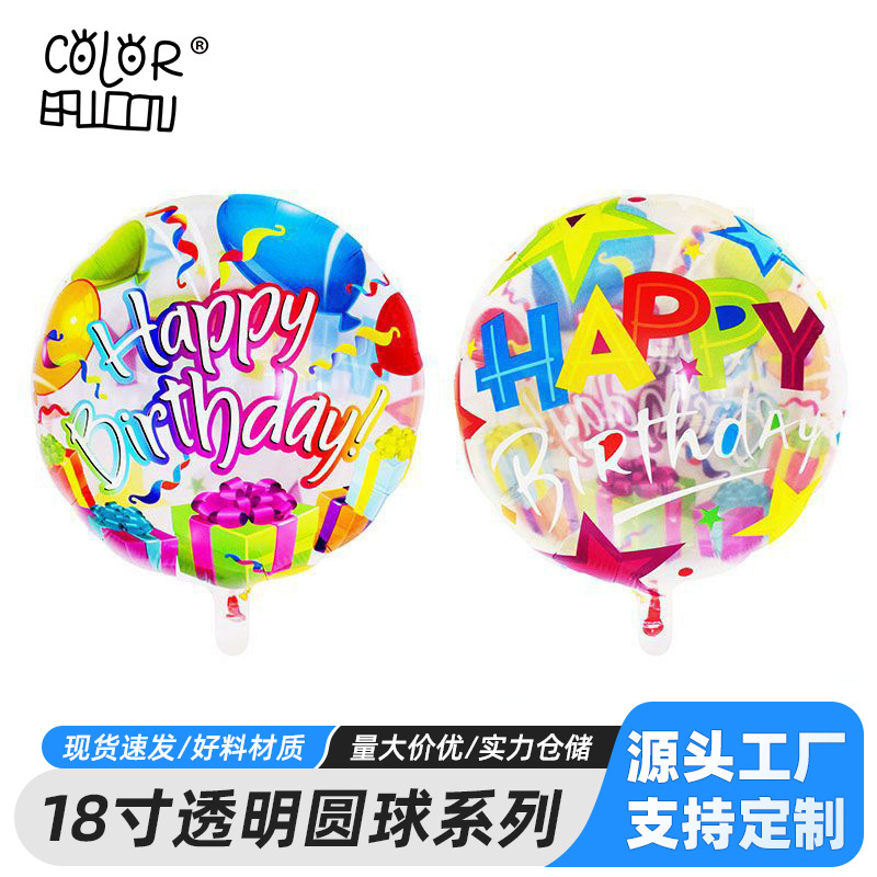 그린 가든 풍선 제조 업체 18inch 투명 라운드 영어 생일 알루미늄 필름 풍선 장소 레이아웃 장식 풍선스토어 가기