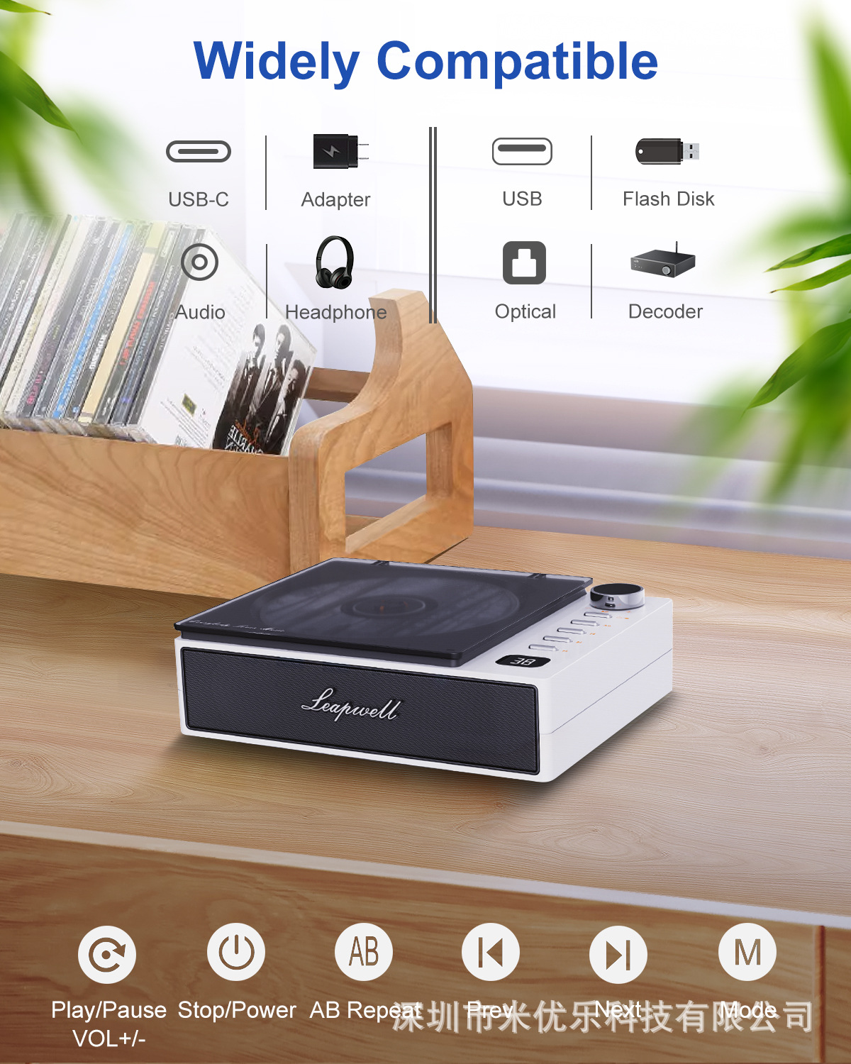 국경 간 CD 기계 복고풍 앨범 플레이어 벽에 장착 된 블루투스 오디오 선물 채널 태아 교육 기계와 함께 영어를 배울 수 있습니다.