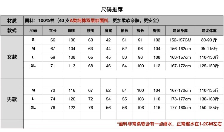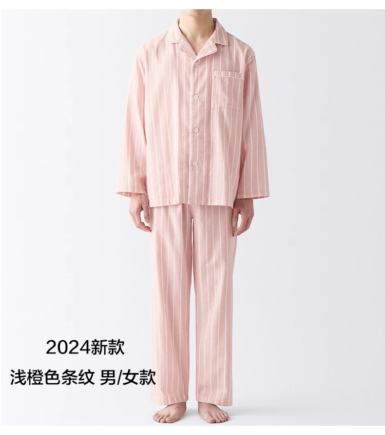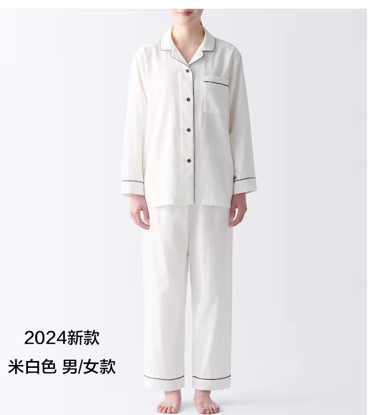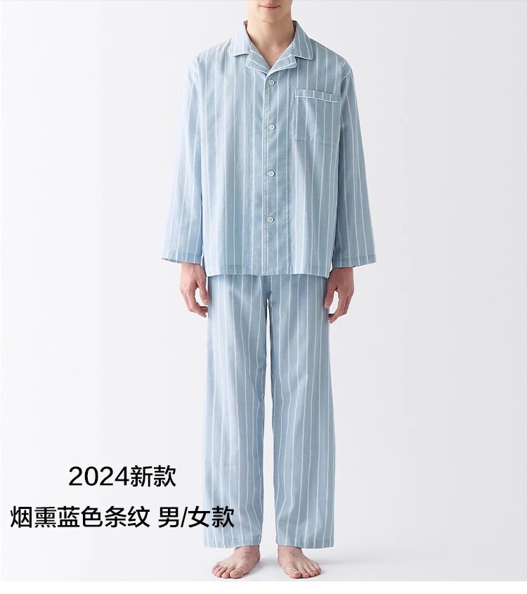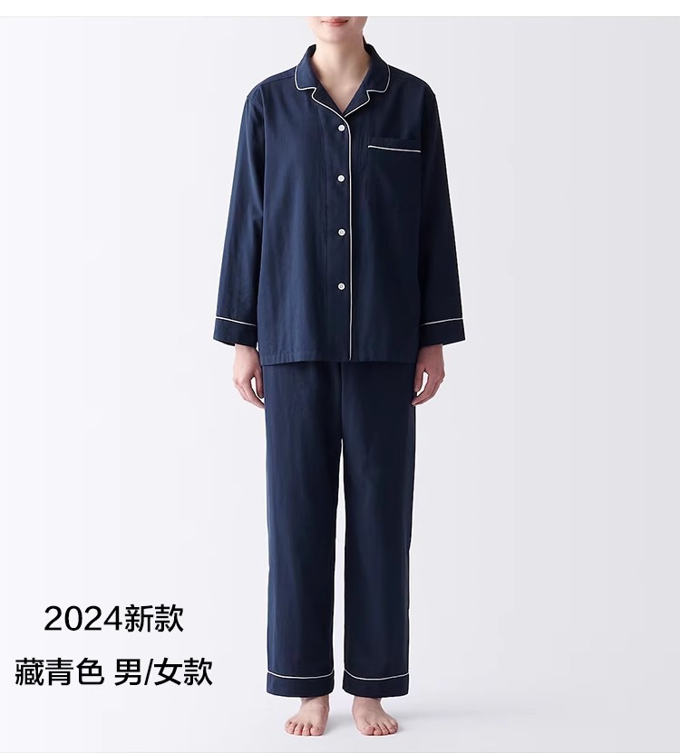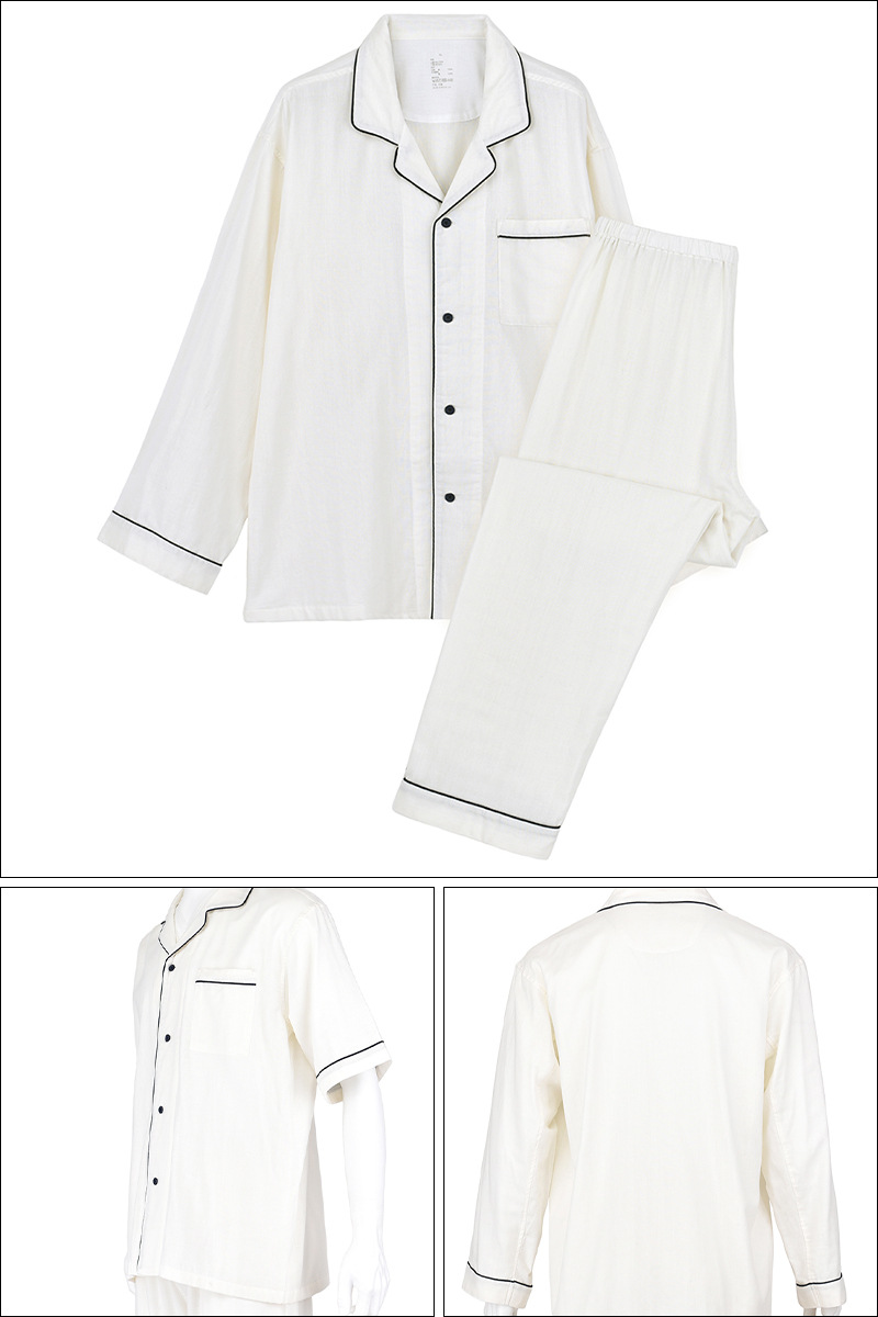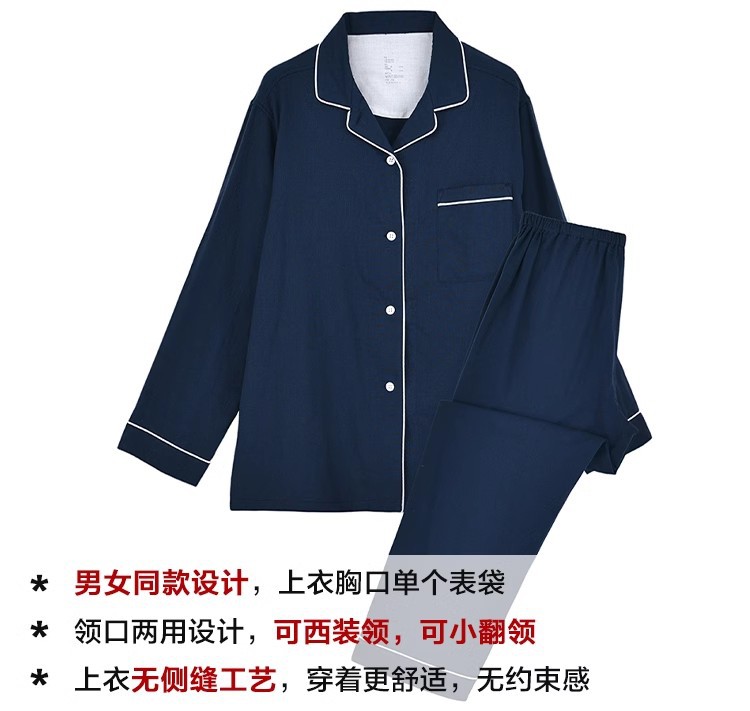 일본식 비인쇄 퓨어 코튼 더블 레이어 원사 파자마 남성용 순수 코튼 비사이드 솔기 홈 의류 세트 여성용 봄과 여름 얇은스토어 가기