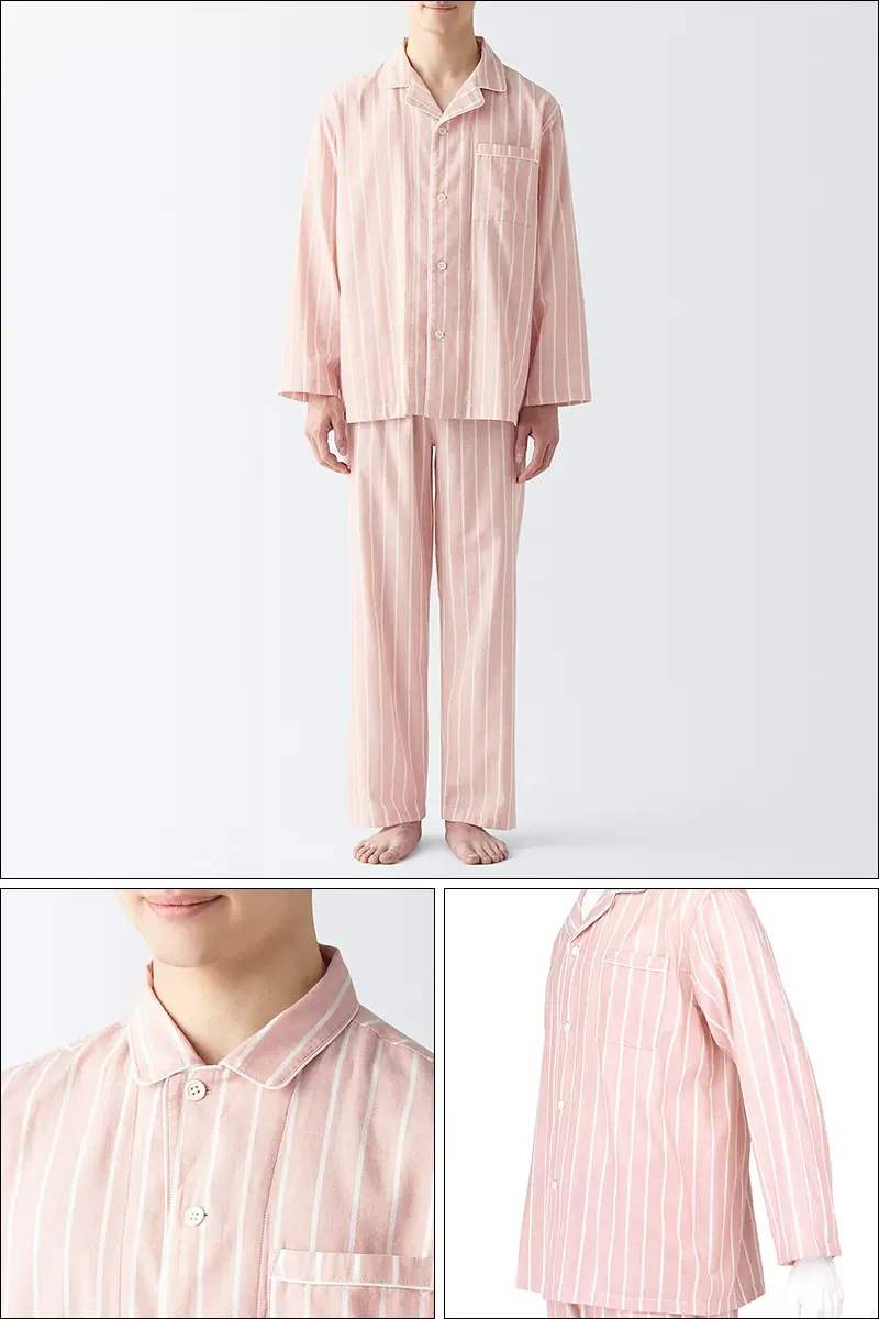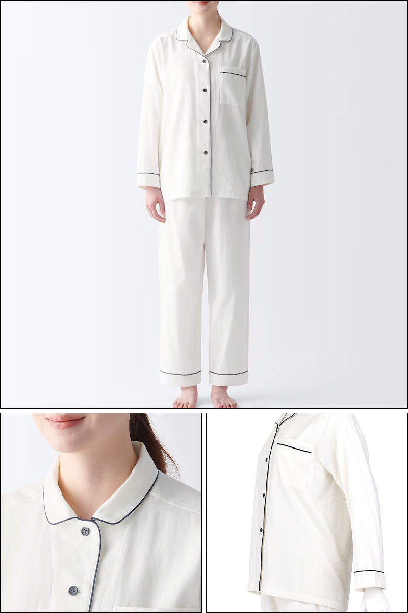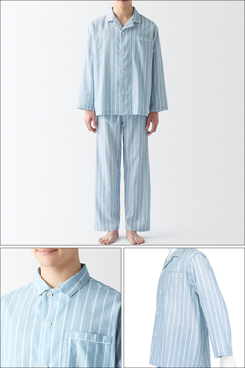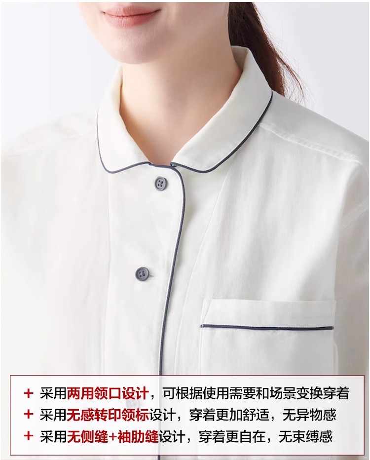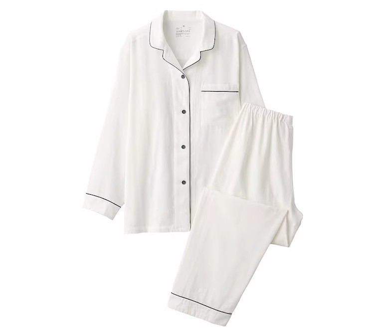 일본식 비인쇄 퓨어 코튼 더블 레이어 원사 파자마 남성용 순수 코튼 비사이드 솔기 홈 의류 세트 여성용 봄과 여름 얇은스토어 가기