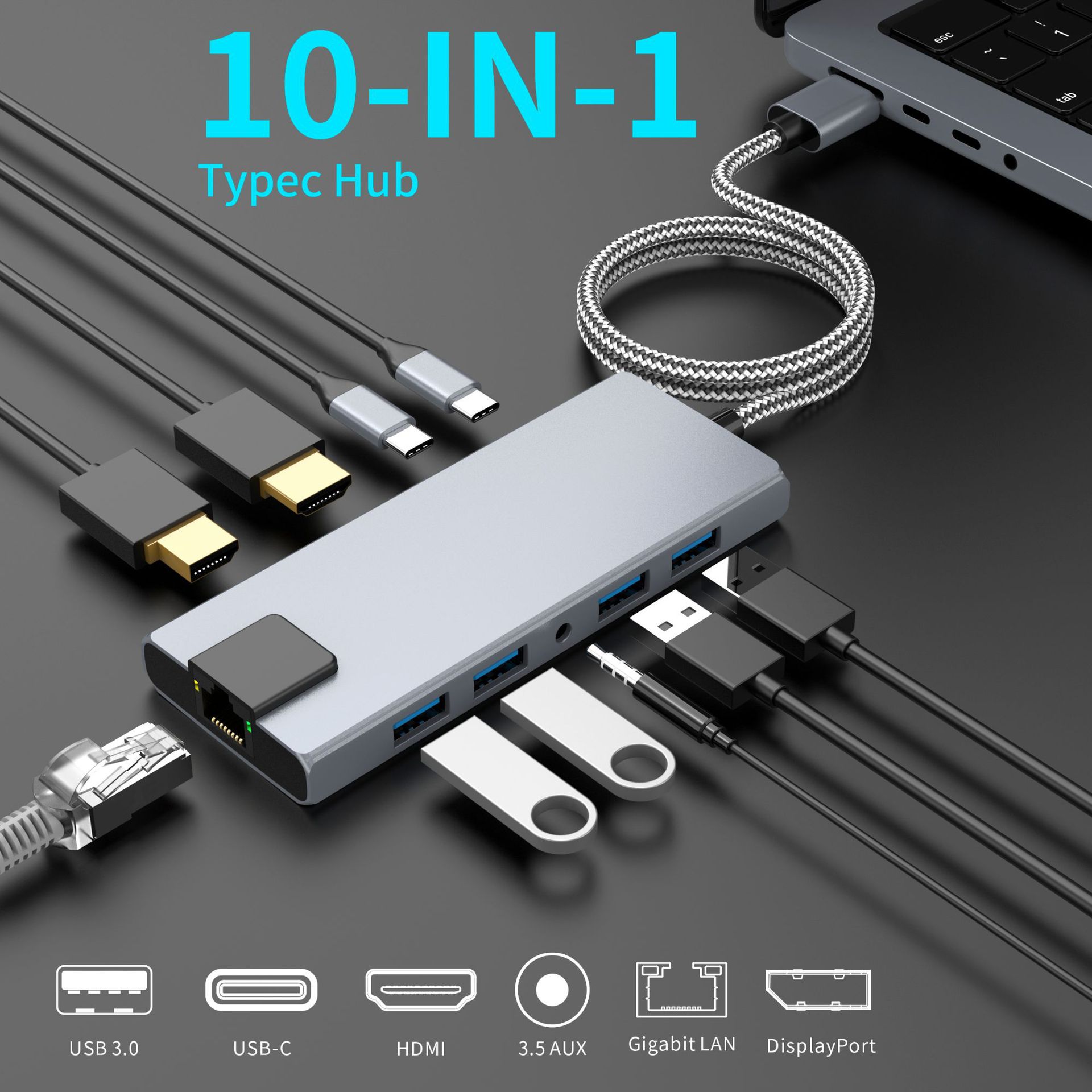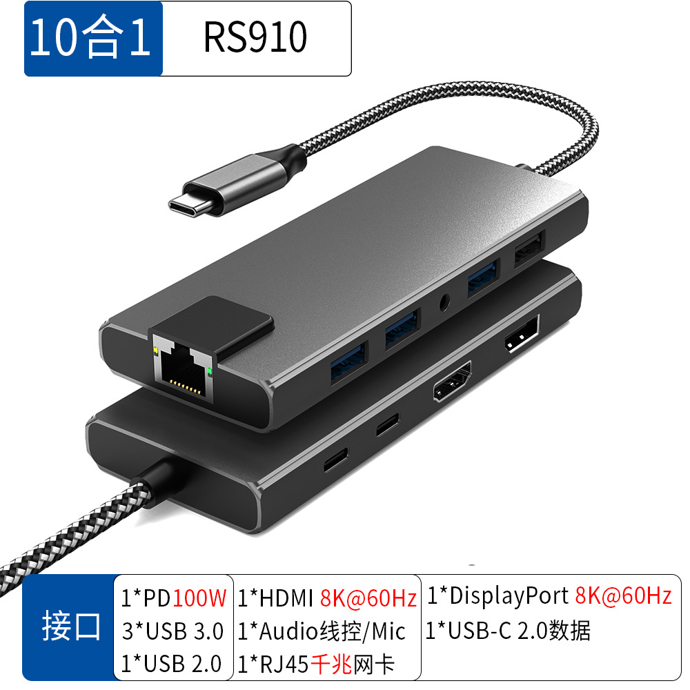 Ai Rongsheng 개인 모델 10-in -1 게임 개발 Dock 8K HDMI 및 DisplayPort 대형 DP 하이 브러시 헤드셋 3.5스토어 가기