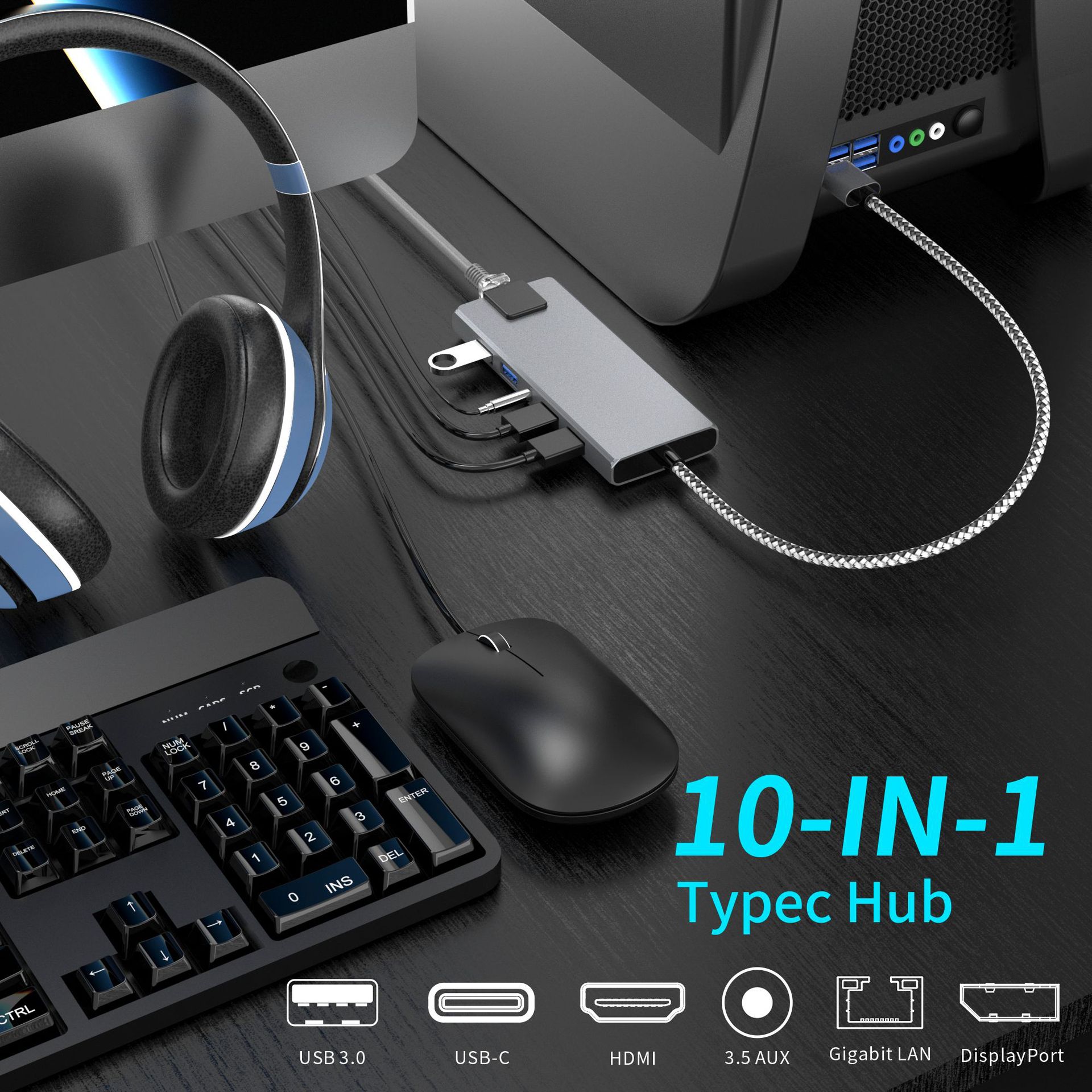Ai Rongsheng 개인 모델 10-in -1 게임 개발 Dock 8K HDMI 및 DisplayPort 대형 DP 하이 브러시 헤드셋 3.5