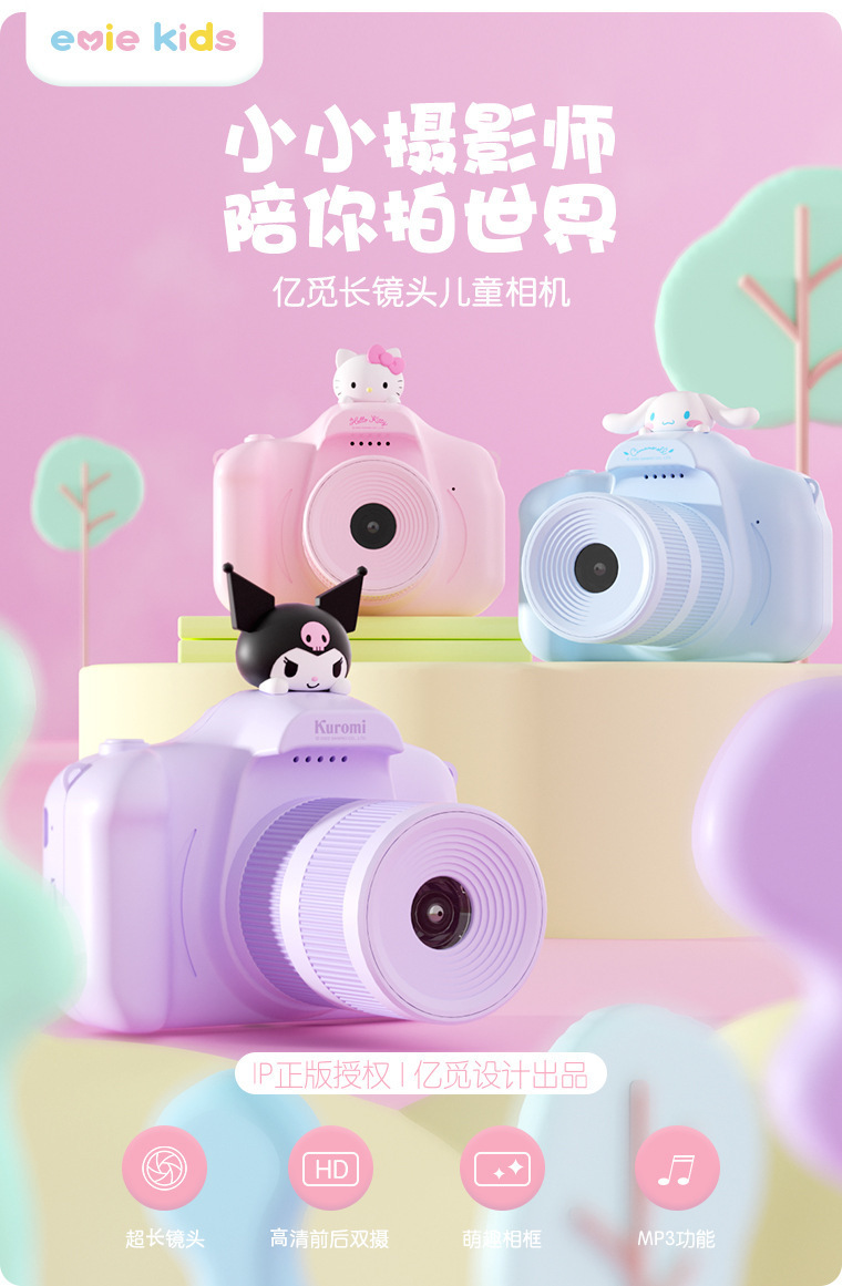 어린이 카메라 장난감 HD 픽셀 듀얼 카메라 비디오 키티 계피 쿠로미 미니 디지털 카메라 선물스토어 가기