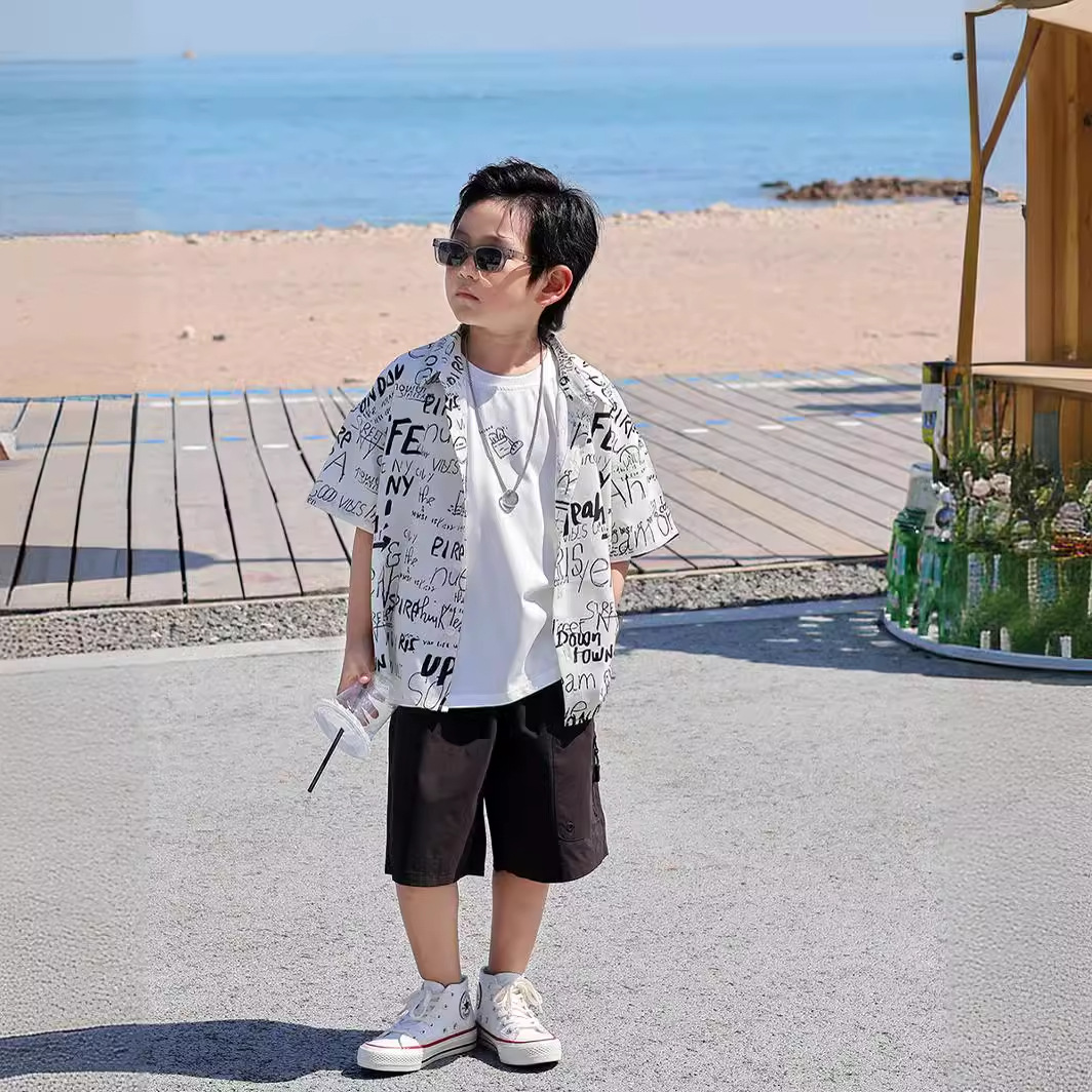 소년 꽃 셔츠 여름 새로운 어린이 반팔 셔츠 한국식 전장 만화 인쇄 아동복 탑스토어 가기