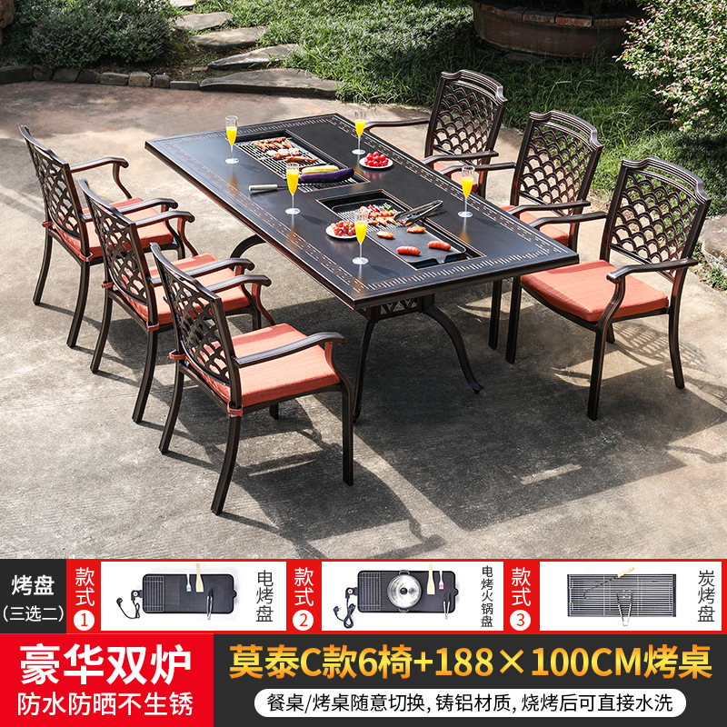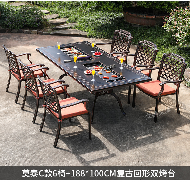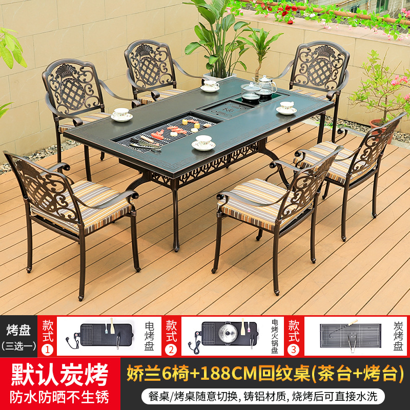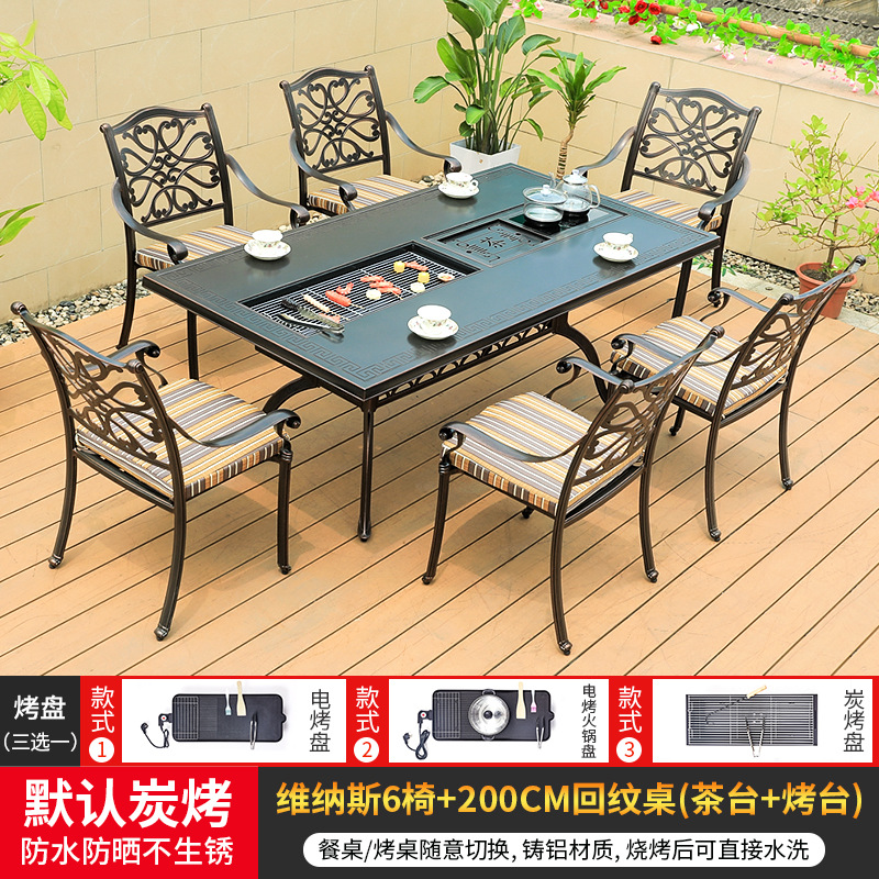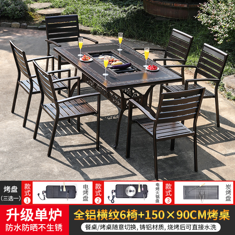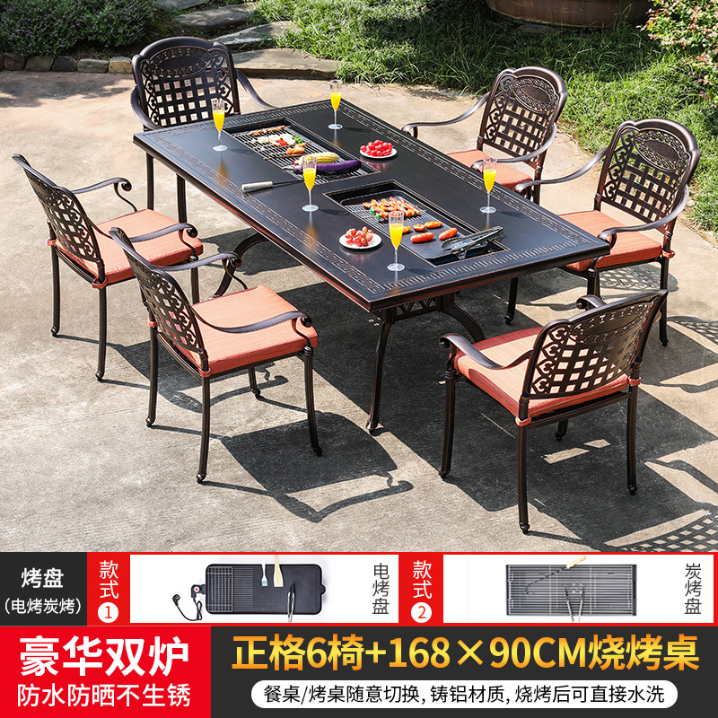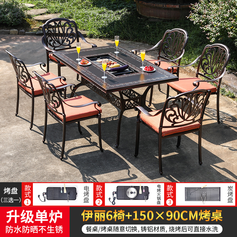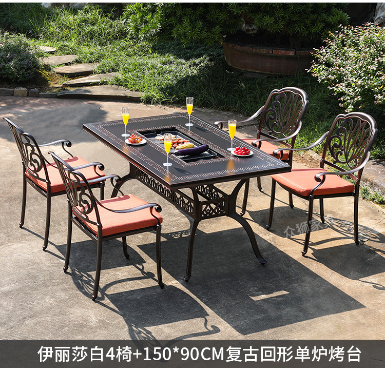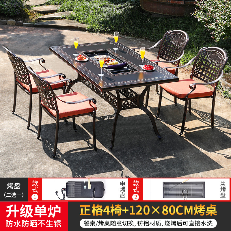 야외 바베큐 테이블과 의자 전기 굽기 숯 굽기 가정용 코트야드 가든 빌라 캐스트 알루미늄 테이블 및 의자
