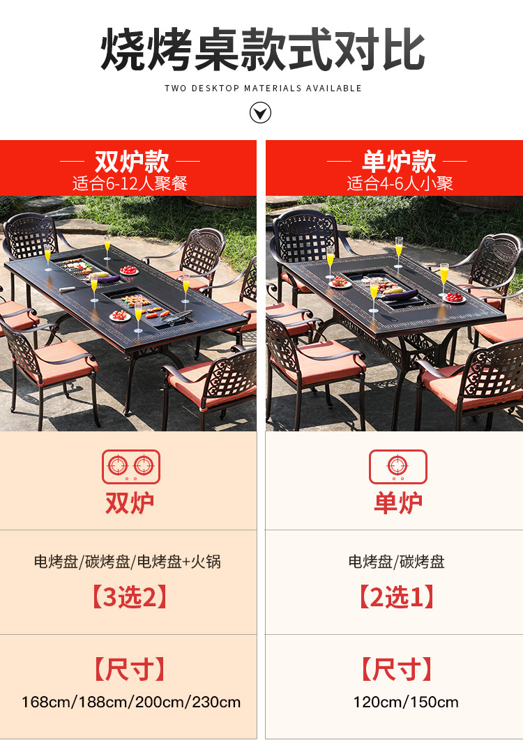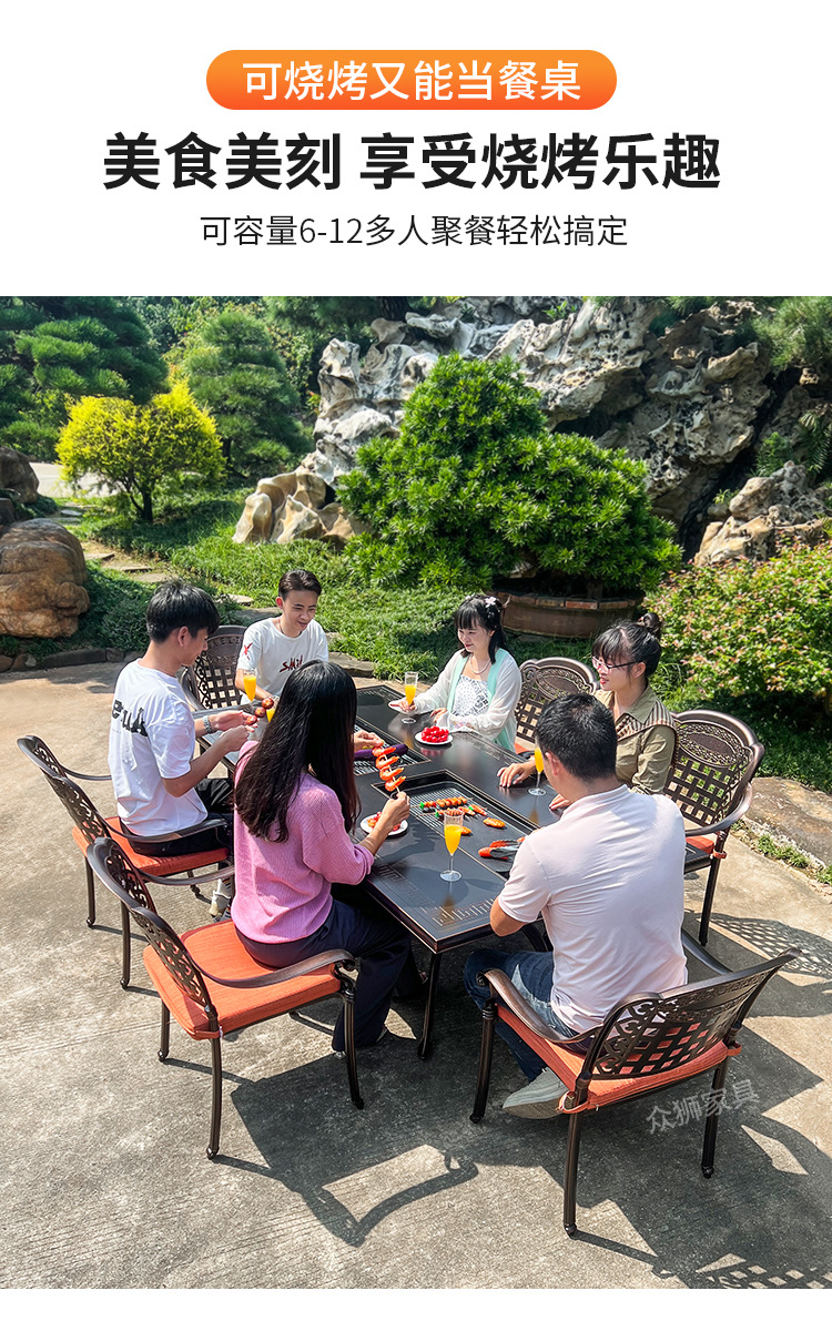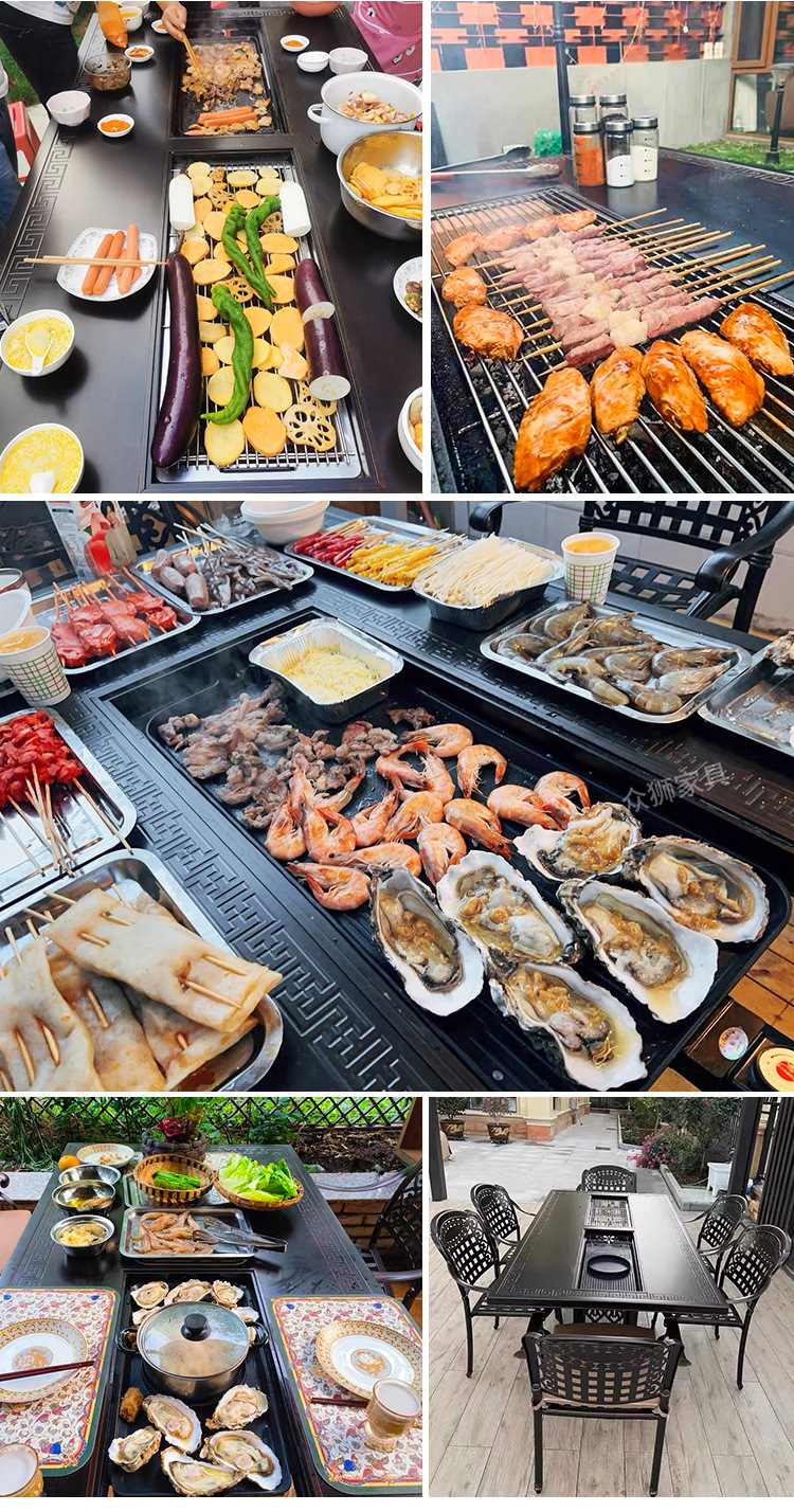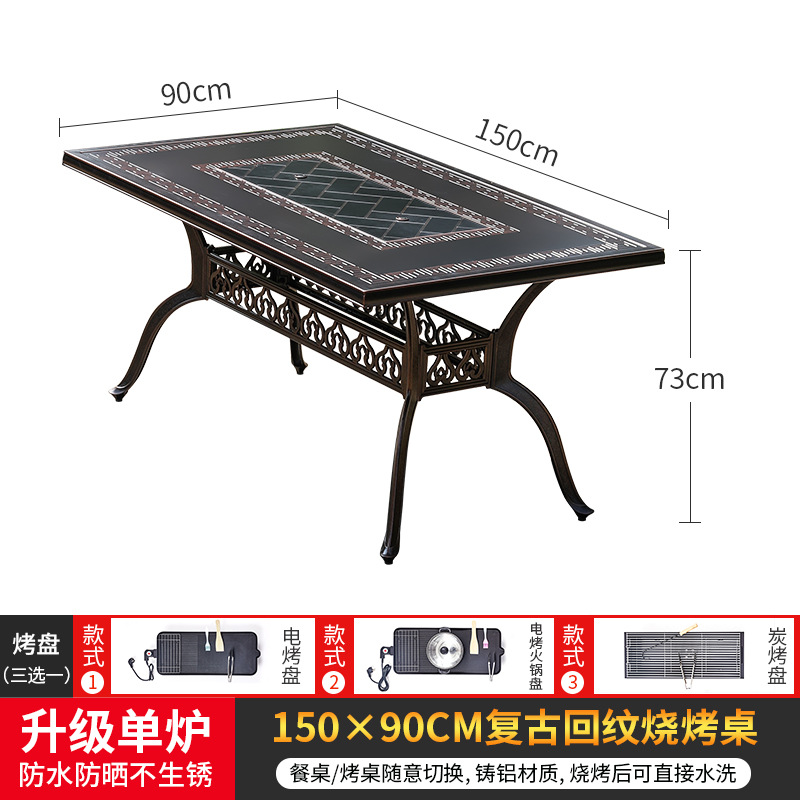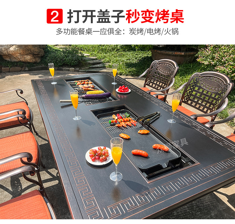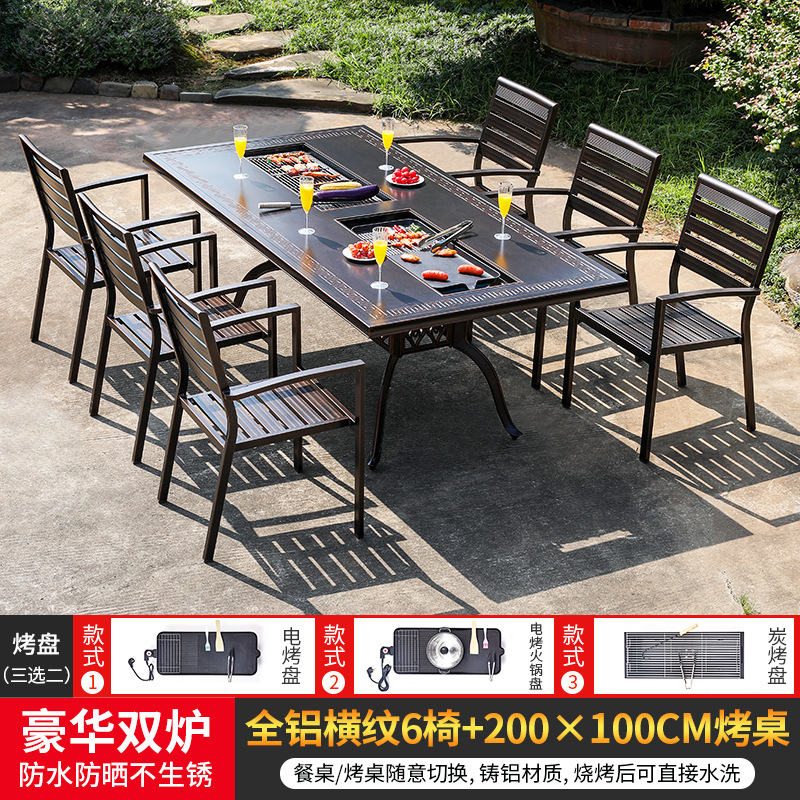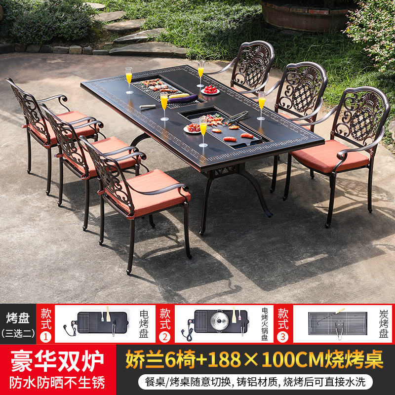 야외 바베큐 테이블과 의자 전기 굽기 숯 굽기 가정용 코트야드 가든 빌라 캐스트 알루미늄 테이블 및 의자