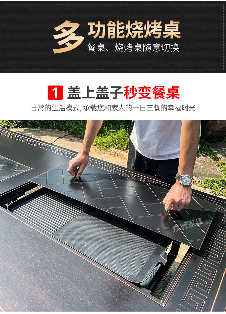 • 230*120cm 복고풍 패턴 더블 오븐 바베큐 테이블