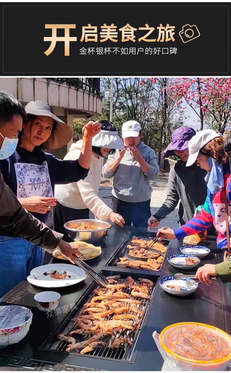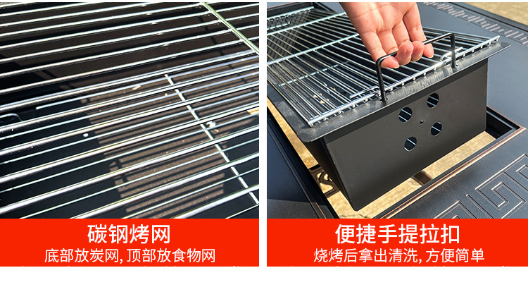 • 200*100cm 복고풍 패턴 더블 오븐 바베큐 테이블