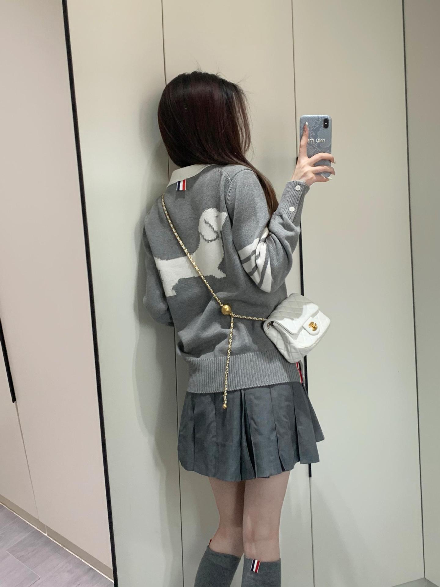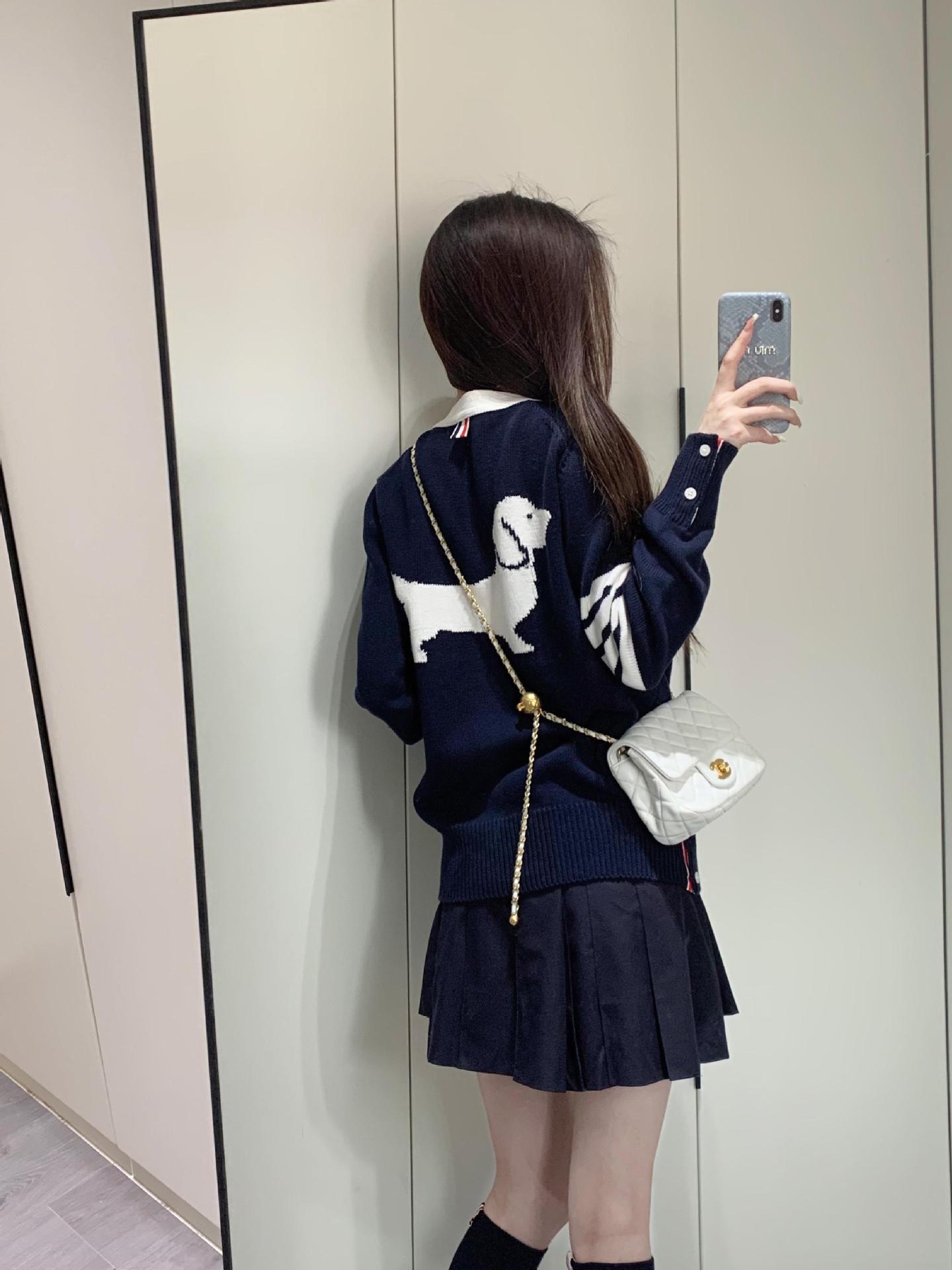 TB 봄가을 여성용 신상 니트 가디건 남녀공용 캐주얼 다용도 뉴백 강아지 코튼 브이넥 가디건