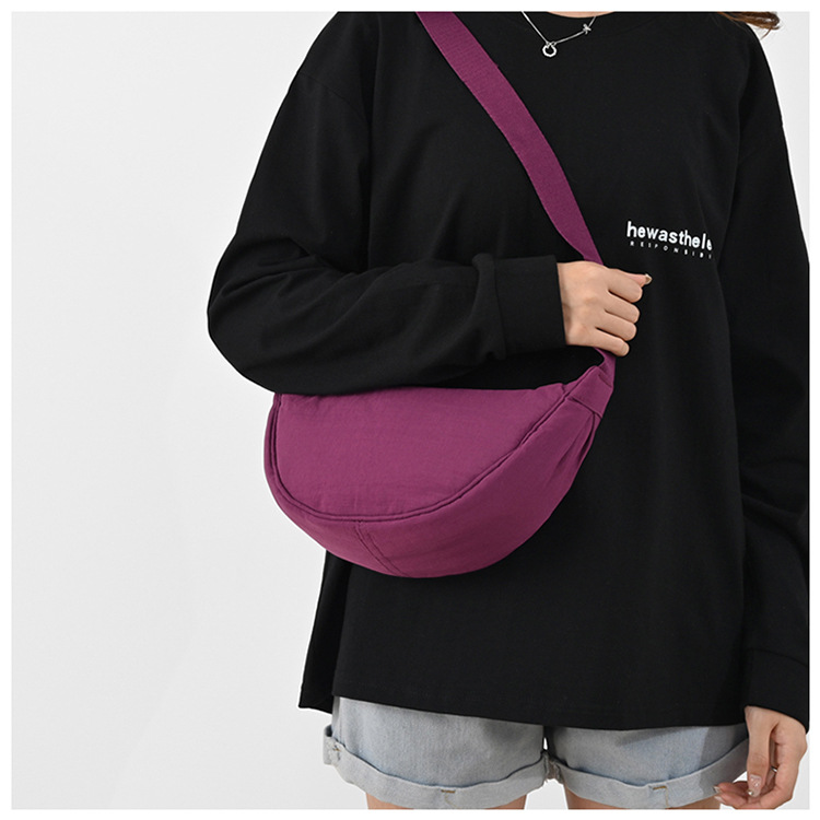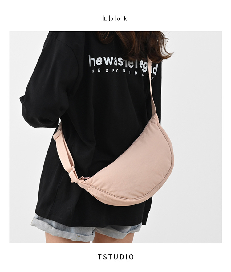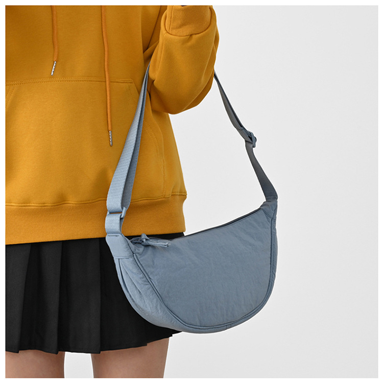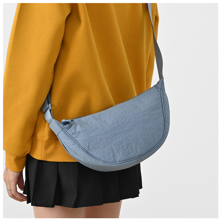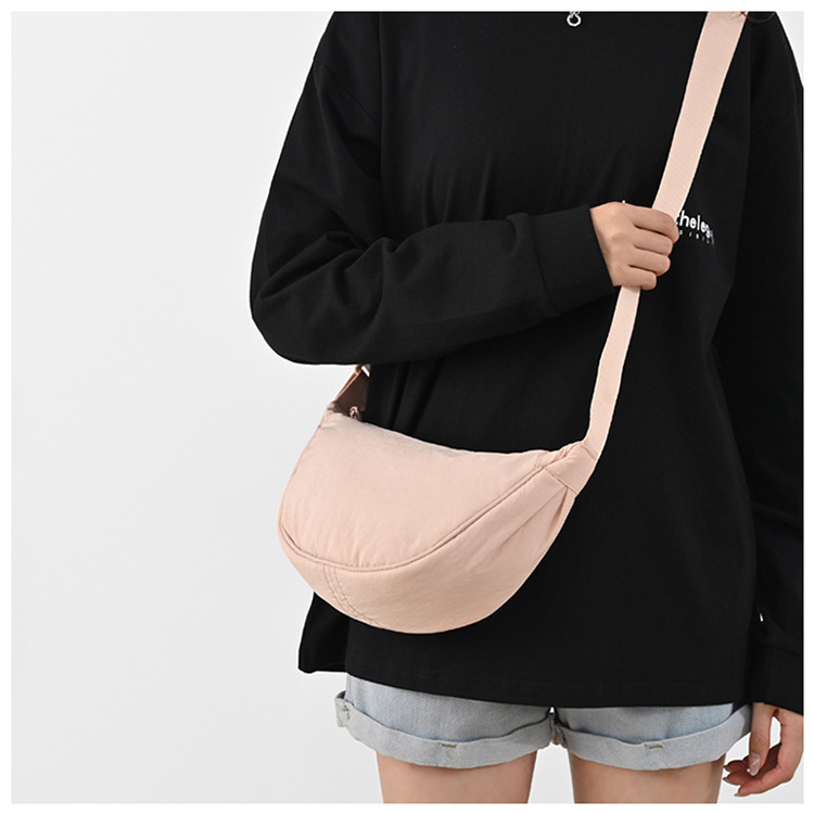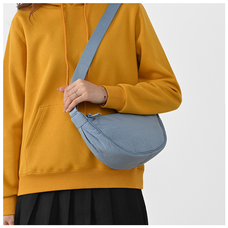 새로운 제품 물리적 매장 같은 스타일 만두 백 크로스 바디 백 여성 사첼 신학생 어깨 나일론 천 백 크레센트 백