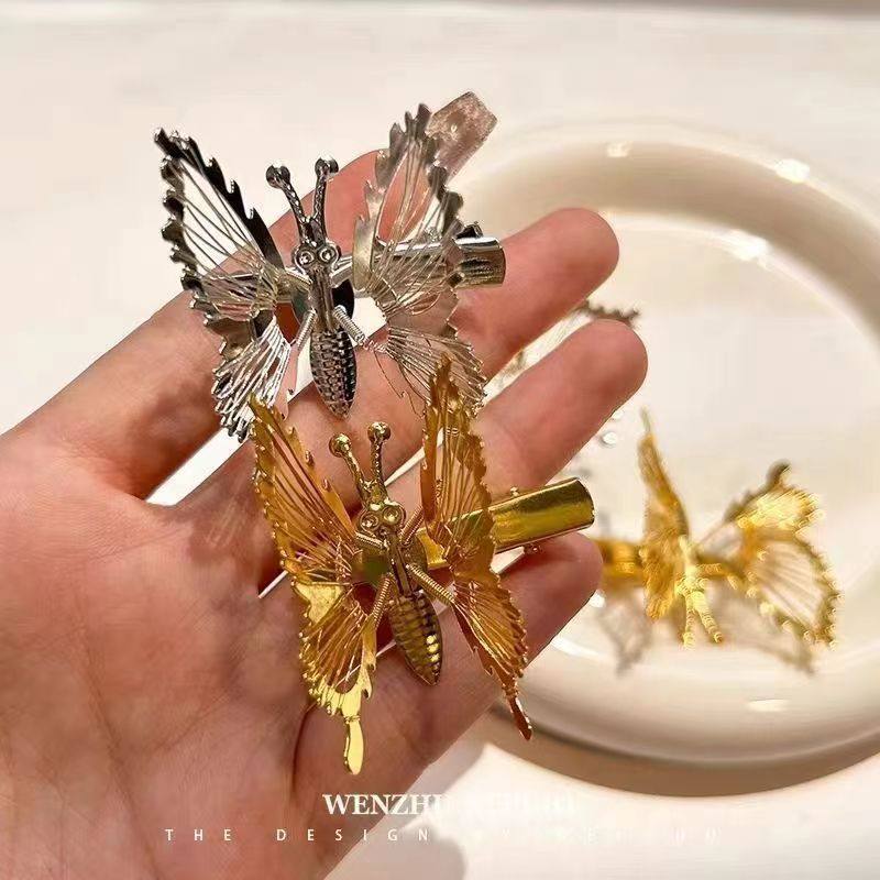 고급 이동식 나비 머리핀 금속 봄 나방 쉐이크 어린이 골동품 헤어 액세서리 측면 클립