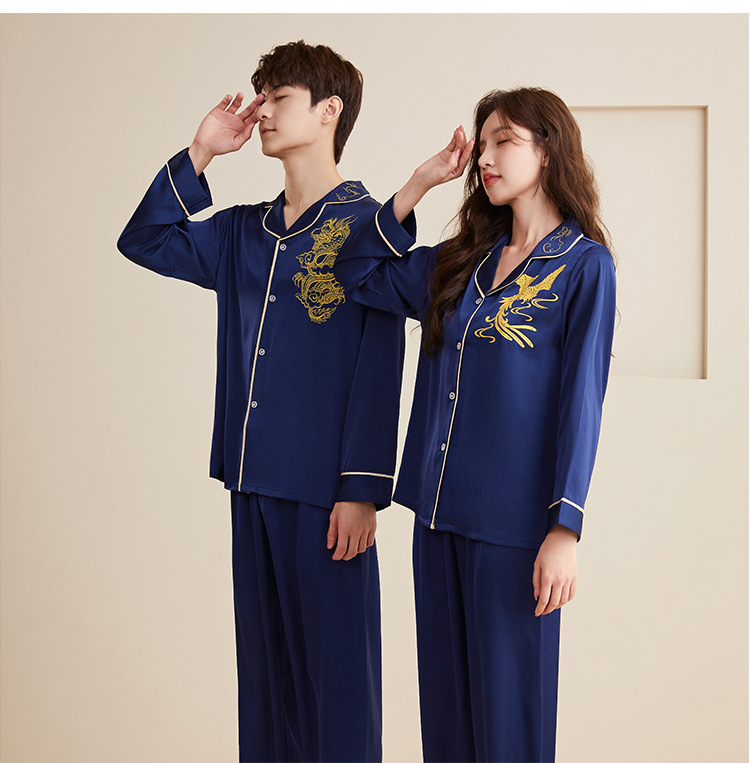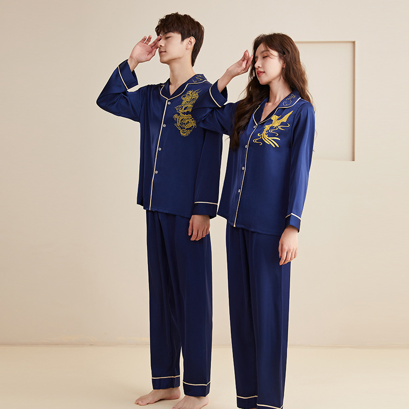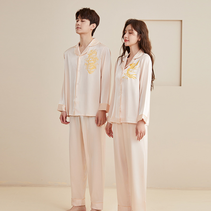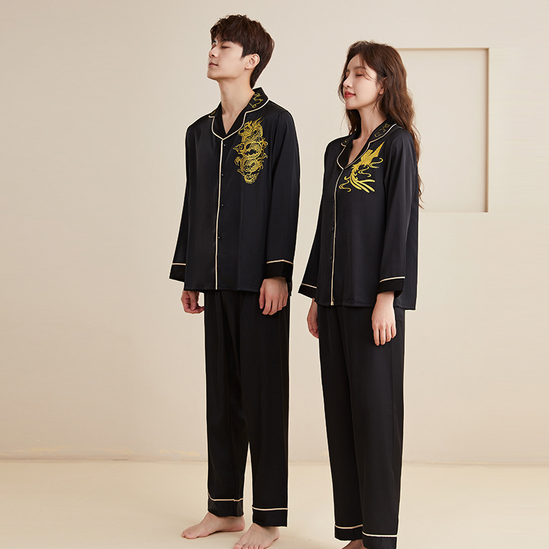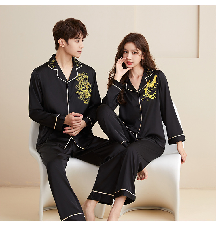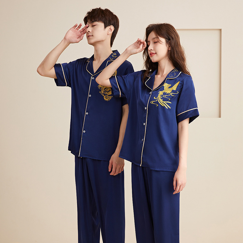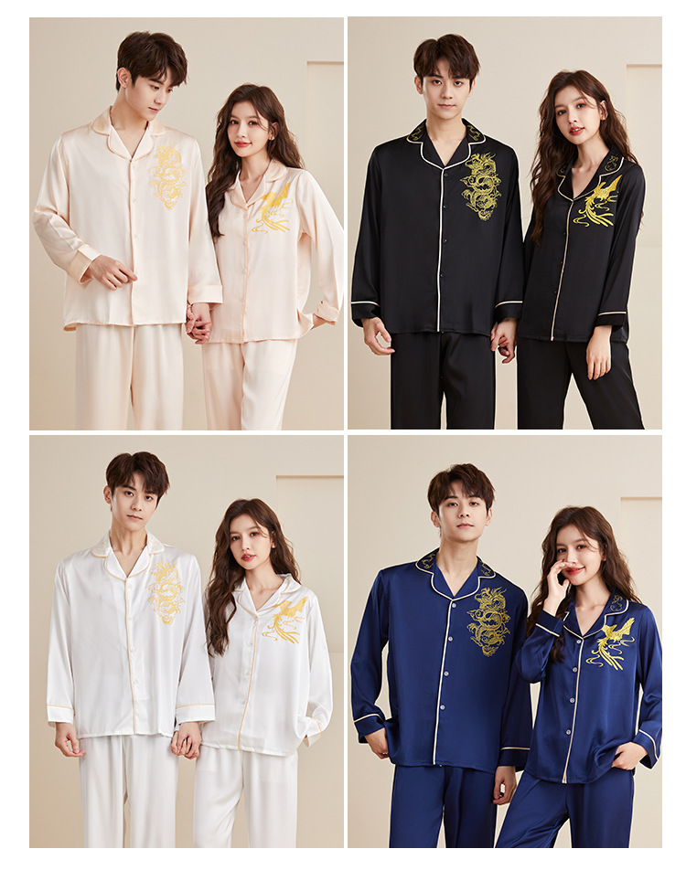 커플 잠옷 레드 웨딩 여성의 봄과 여름 새틴 반팔 신년 가을 드래곤과 피닉스 홈 의류 세트