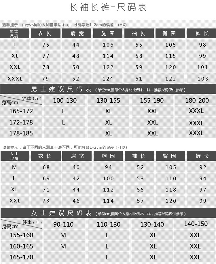• 여성용 긴 소매 바지-블랙 (싱글 세트)