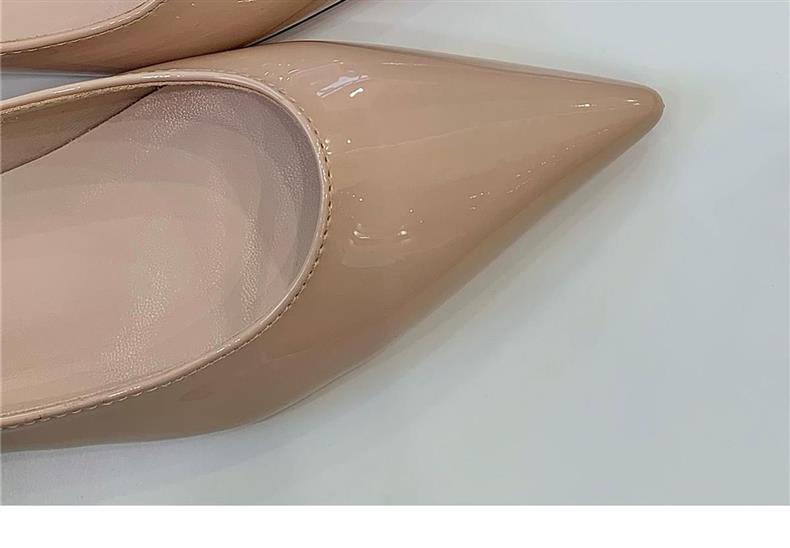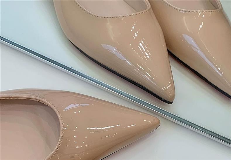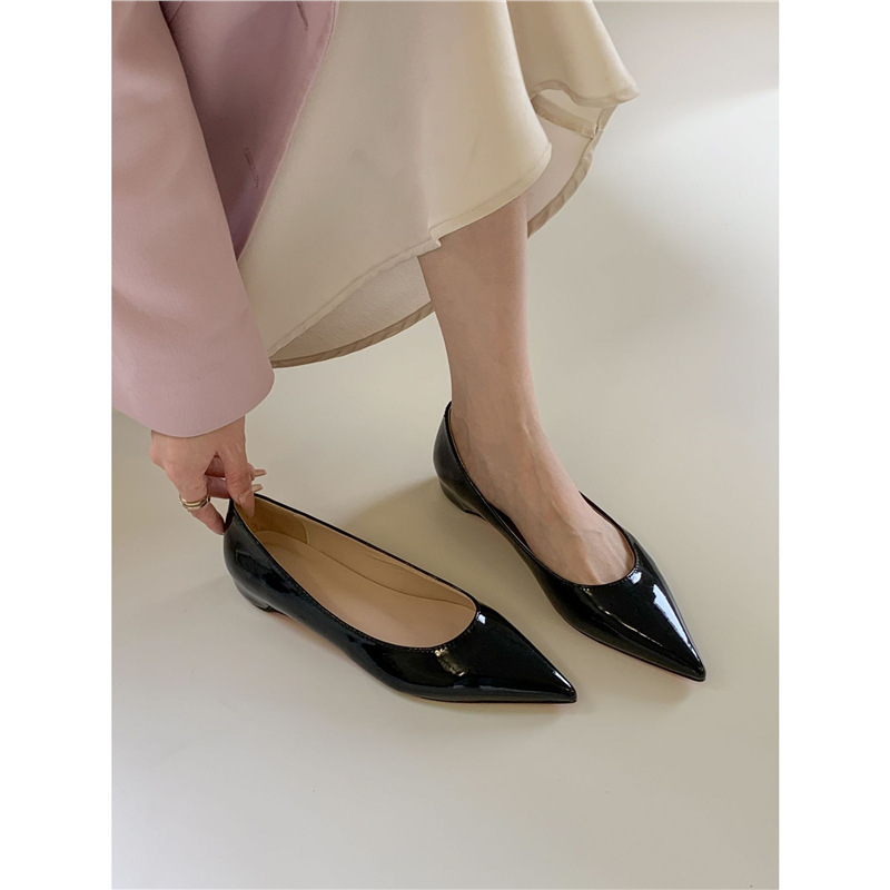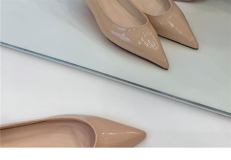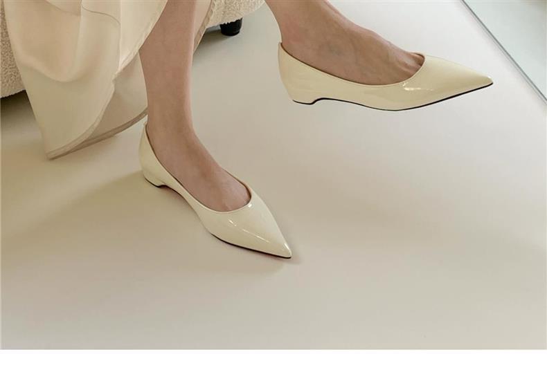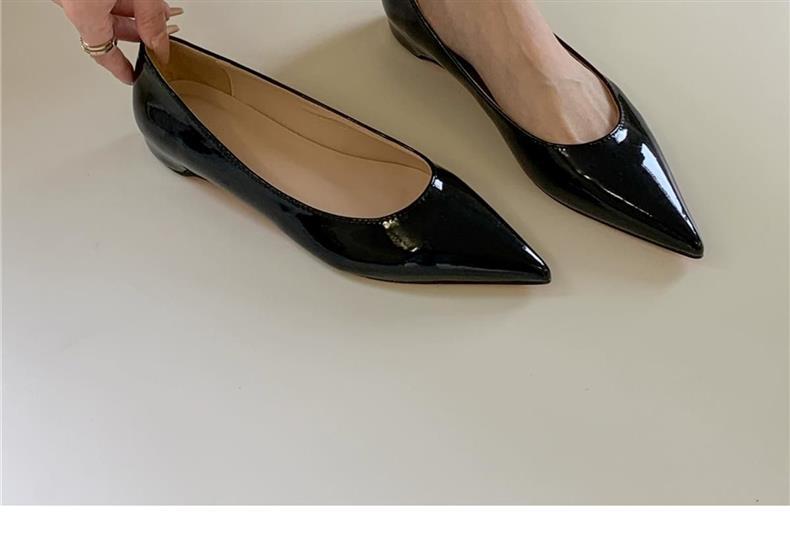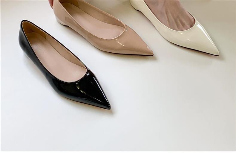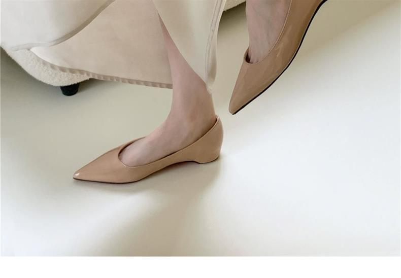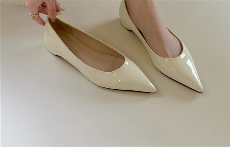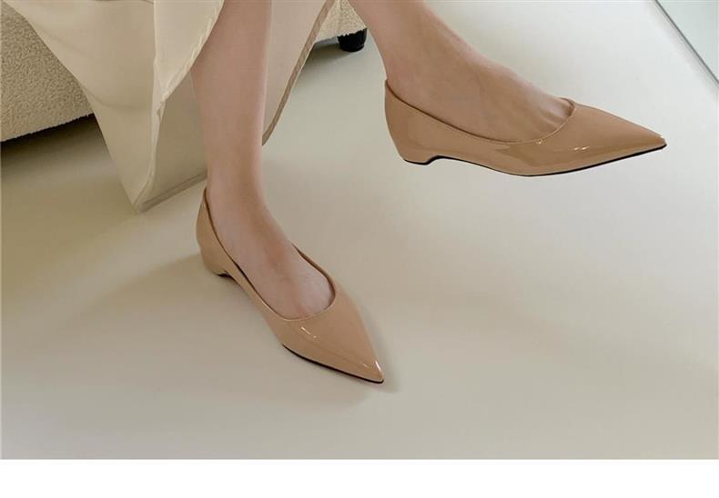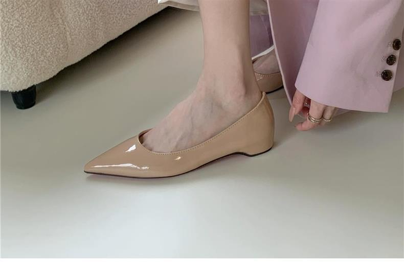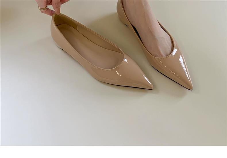 천금의 필수템 누드 컬러 샤넬 스타일 에나멜 가죽 여성용 싱글 슈즈 2026 신상 니치 디자인 포인티드 토 얕은 굽 플랫 슈즈스토어 가기