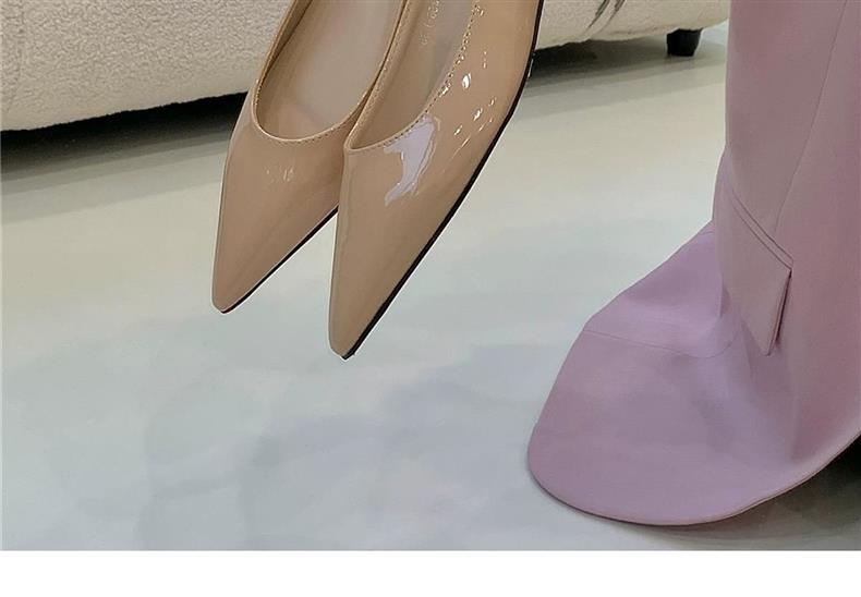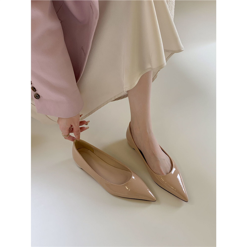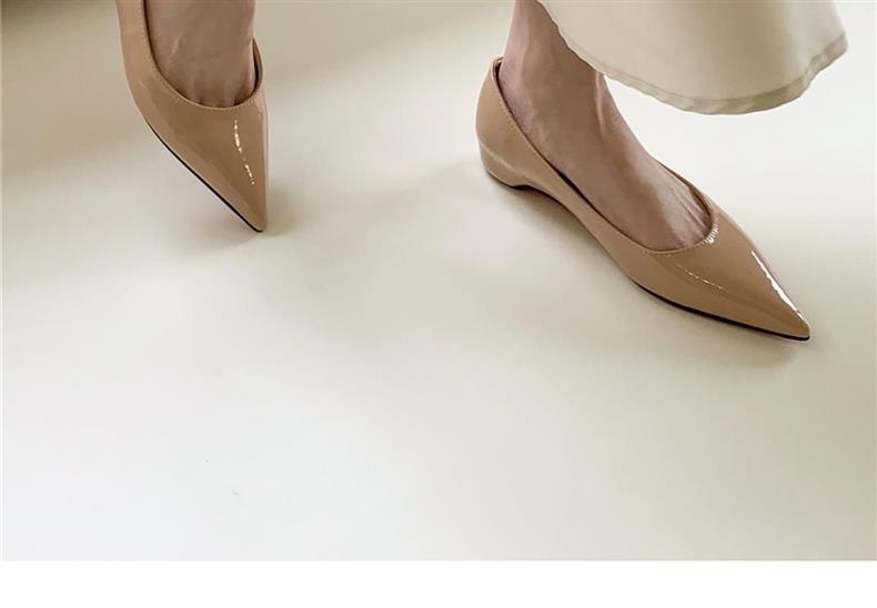 천금의 필수템 누드 컬러 샤넬 스타일 에나멜 가죽 여성용 싱글 슈즈 2026 신상 니치 디자인 포인티드 토 얕은 굽 플랫 슈즈