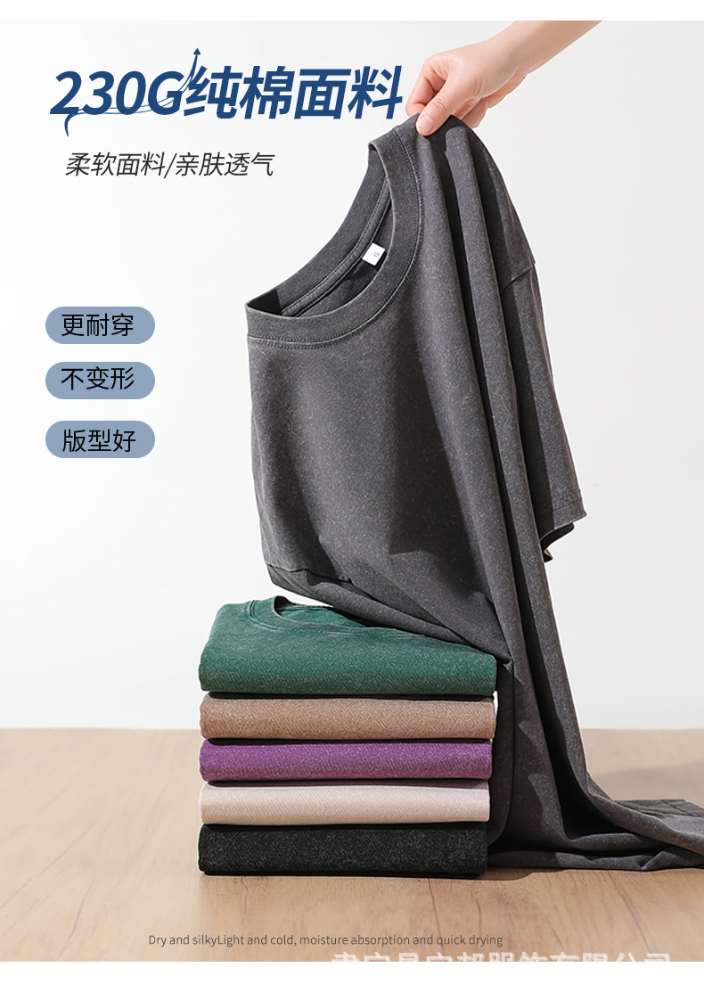 230g 워싱 데미지 라운드넥 반팔 여름 신상 순면 빅숄더 크로스보더 유럽사이즈 루즈핏 남성 티셔츠스토어 가기
