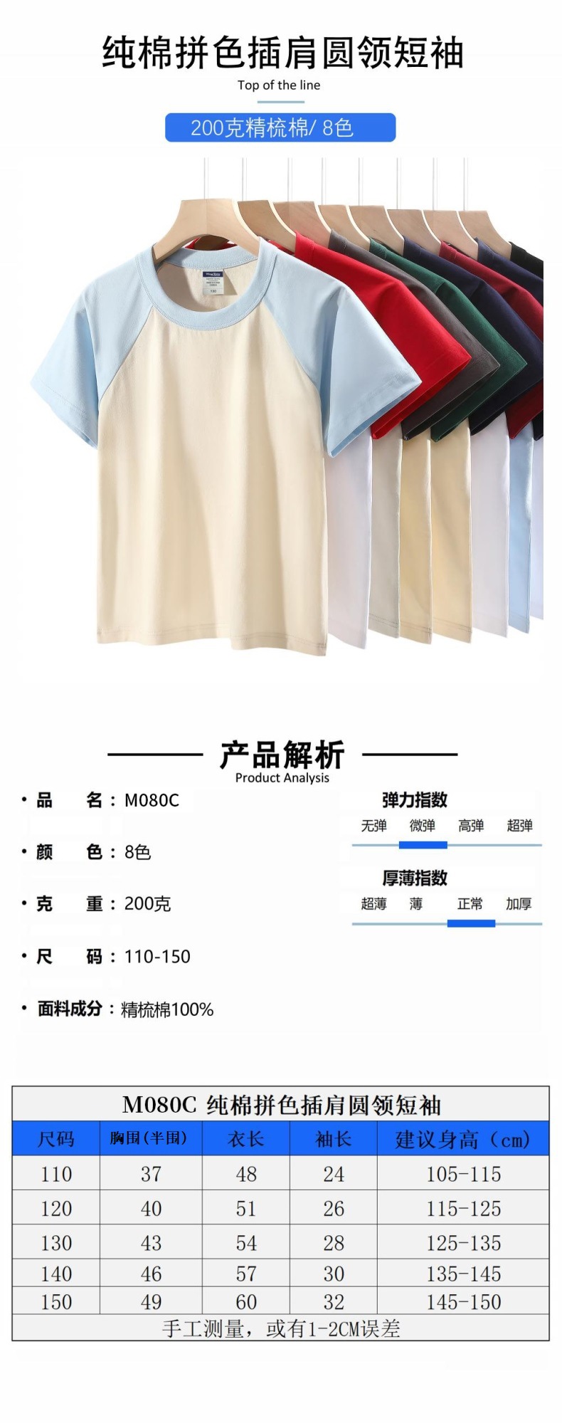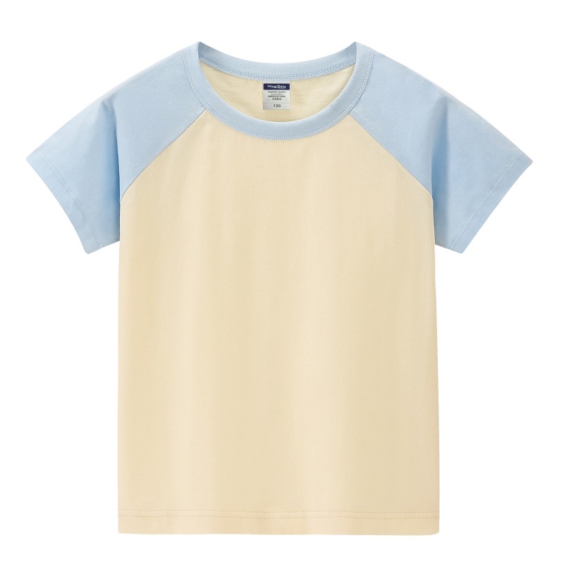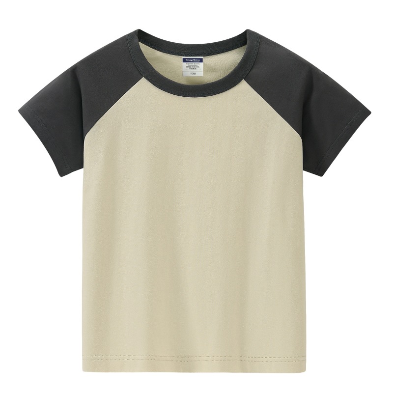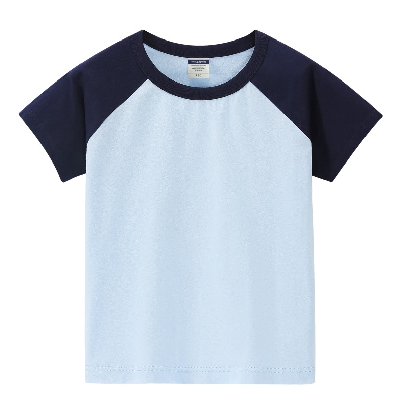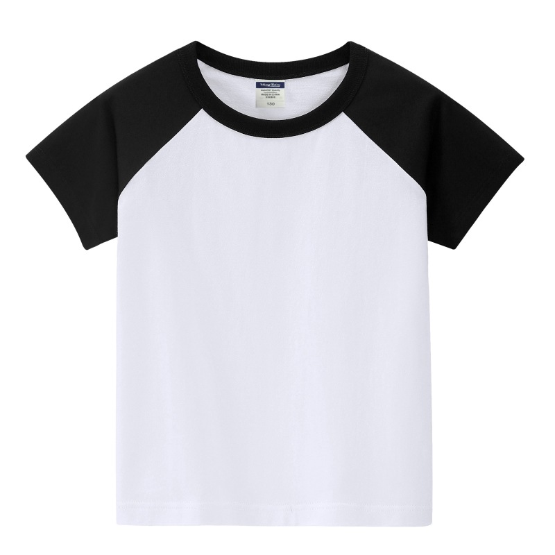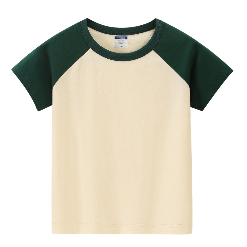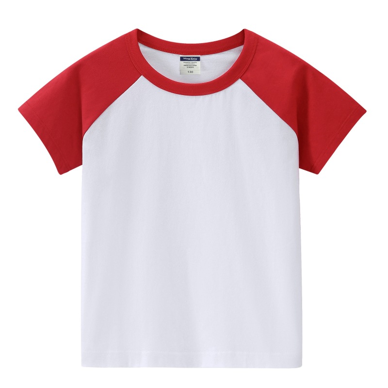 200g 어린이 어깨 블록 컬러 둥근 목 짧은 소매 인쇄 티셔츠 중간 및 대형 어린이 반 소매 맞춤형 졸업 의류 로고 인쇄스토어 가기