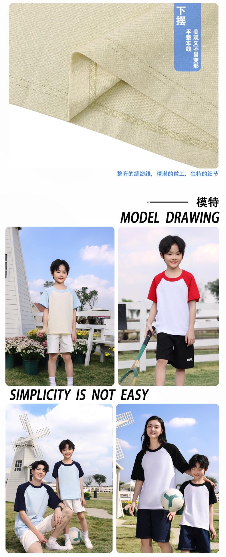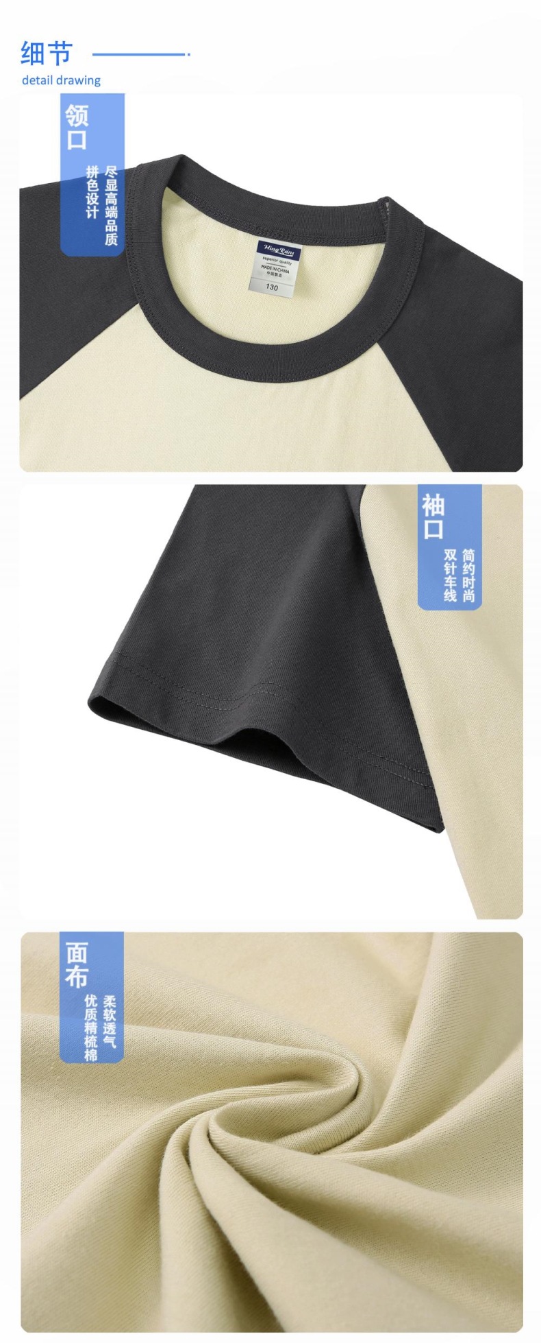 200g 어린이 어깨 블록 컬러 둥근 목 짧은 소매 인쇄 티셔츠 중간 및 대형 어린이 반 소매 맞춤형 졸업 의류 로고 인쇄