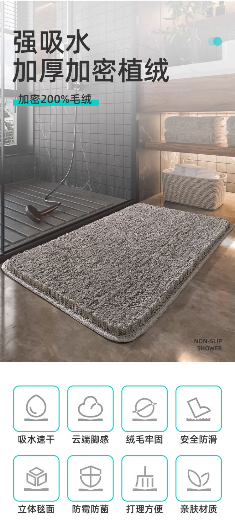 욕실 속건성 바닥 매트 단색 매트 욕실 흡수성 발 매트 화장실 문 카펫 욕실 미끄럼 방지 매트스토어 가기