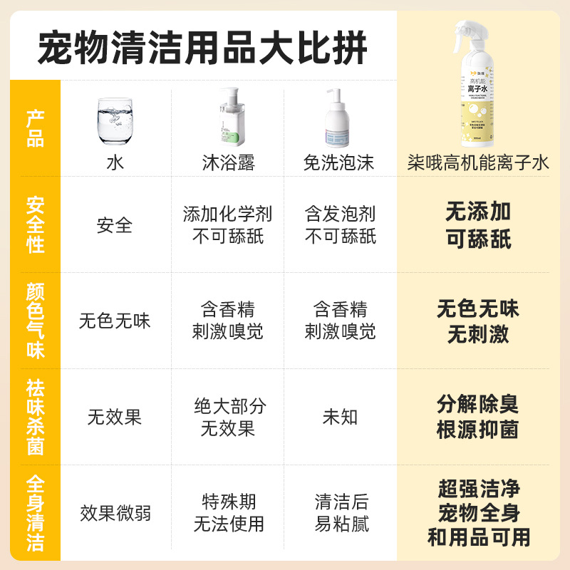 Qi Oh Pet 고기능 이온수 개 전용 노워시 샤워 젤 입 청소 노란 수염 탈취제