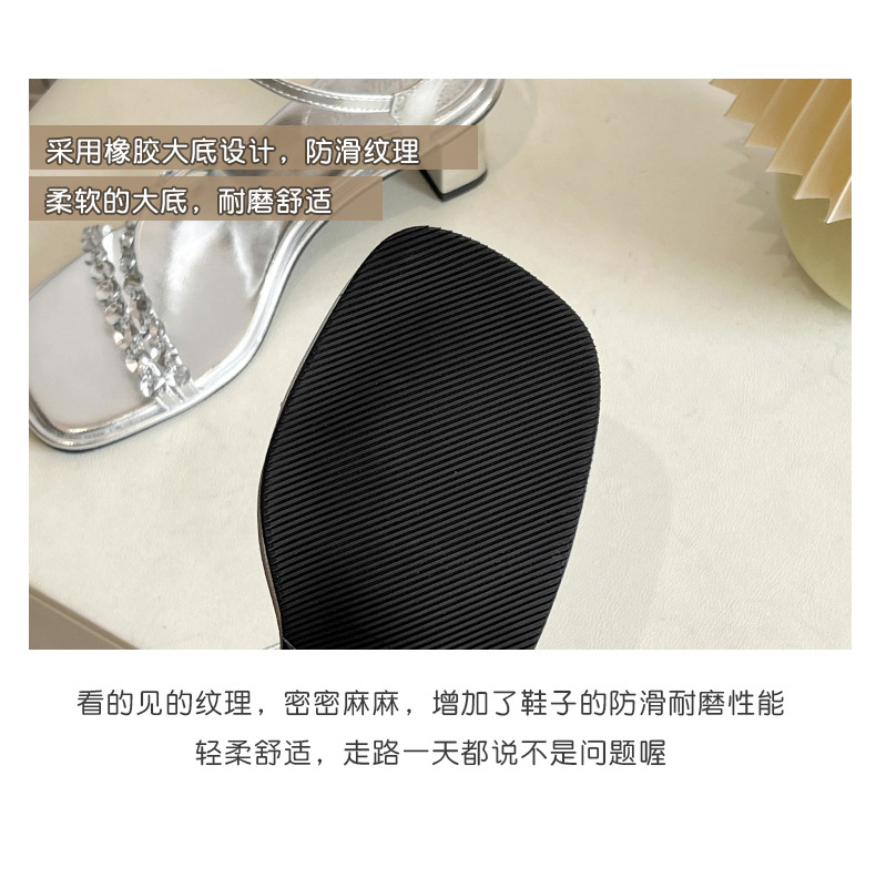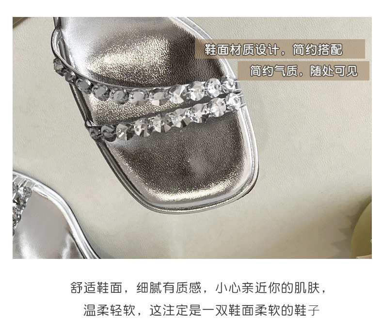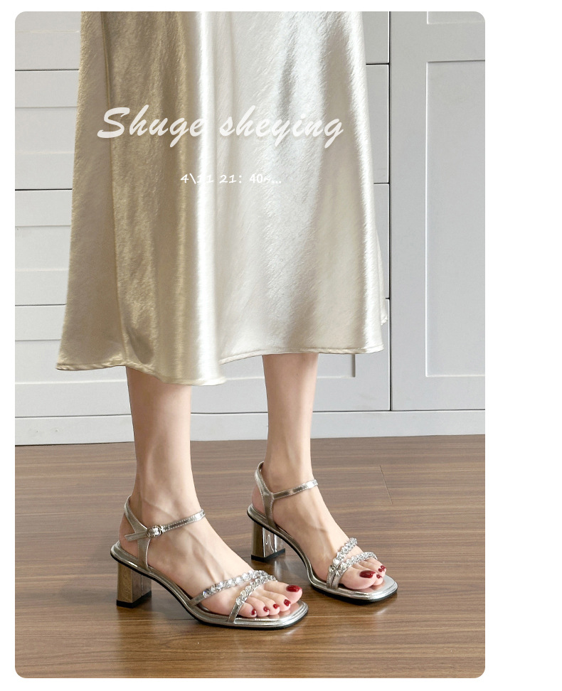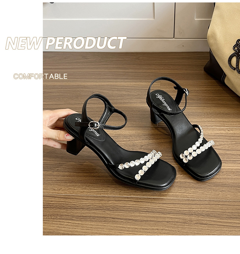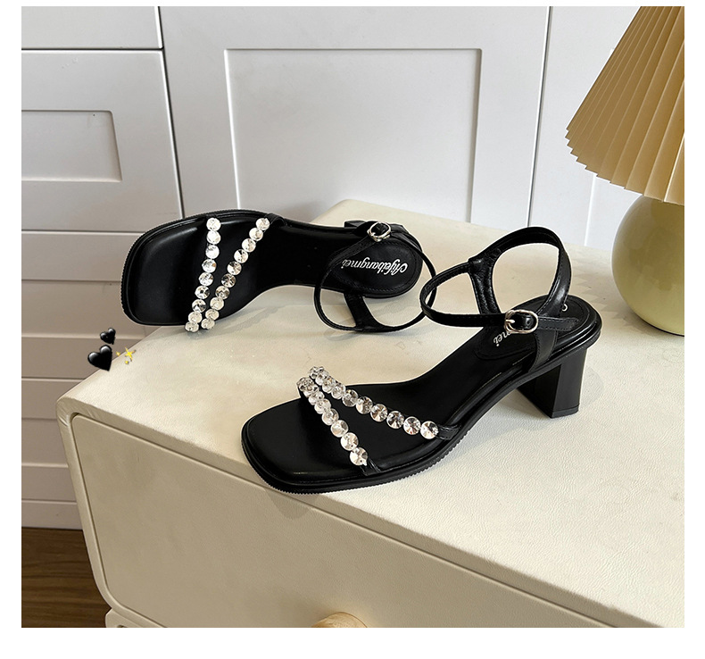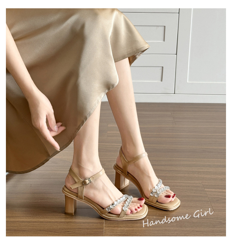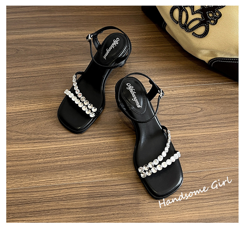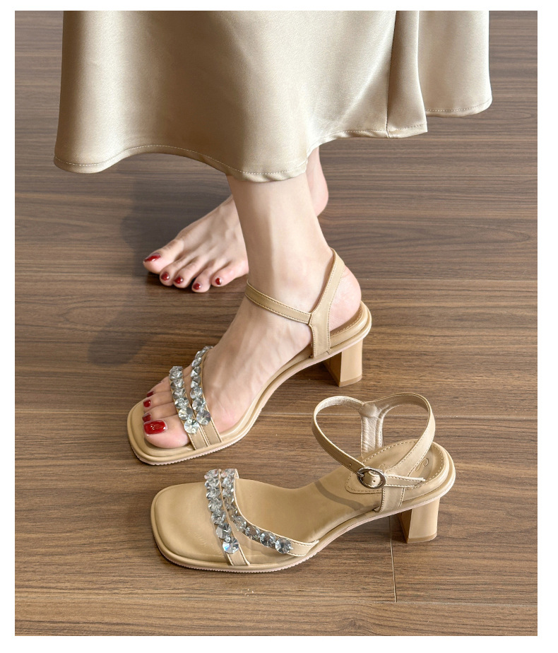 여성을 위한 고급 투명 두꺼운 굽 샌들, 패셔너블하고 다재다능한 원라인 크리스탈 라인스톤 2025 인터넷 연예인 인기 샌들스토어 가기