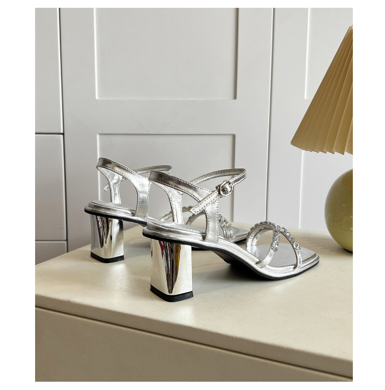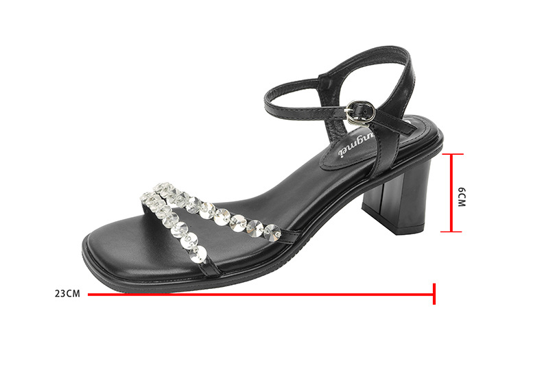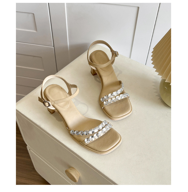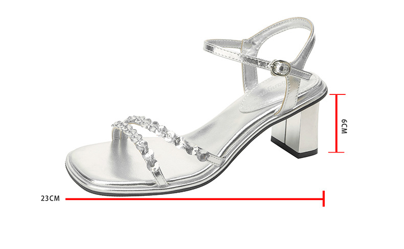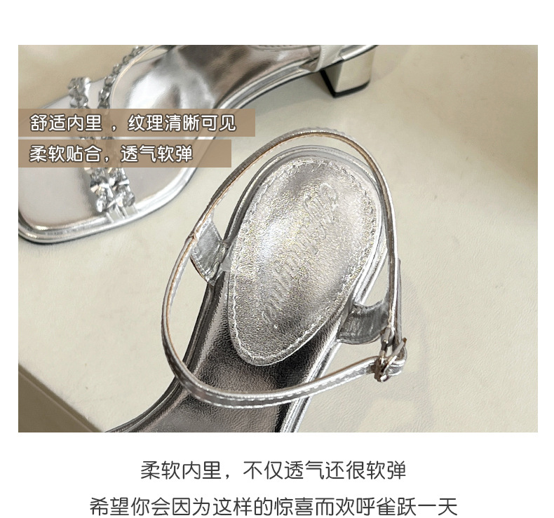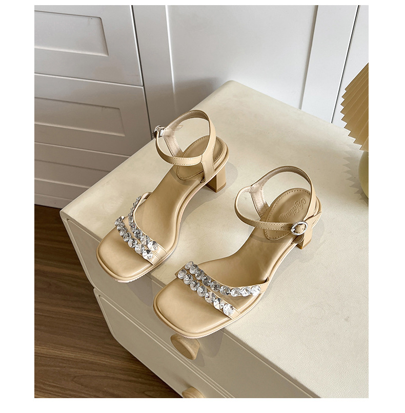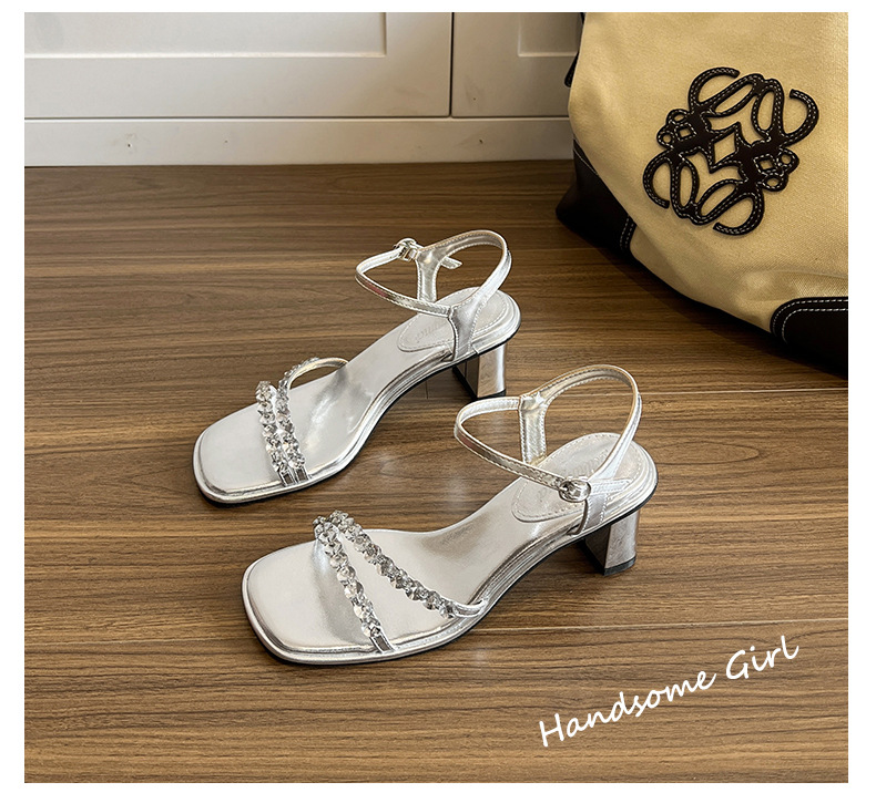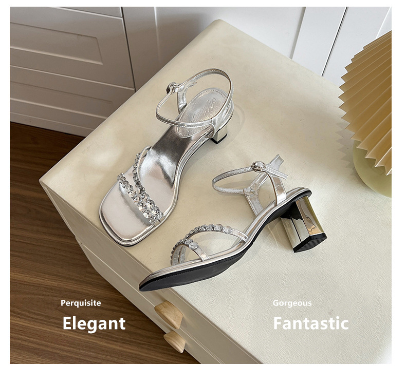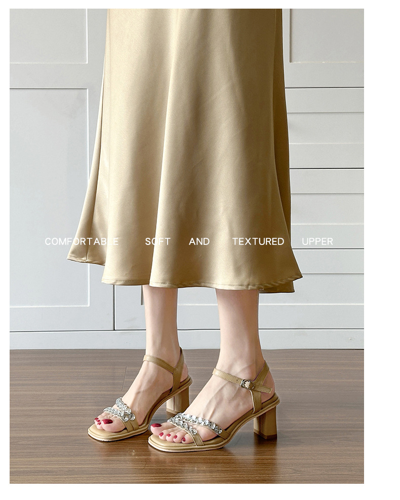 여성을 위한 고급 투명 두꺼운 굽 샌들, 패셔너블하고 다재다능한 원라인 크리스탈 라인스톤 2025 인터넷 연예인 인기 샌들스토어 가기