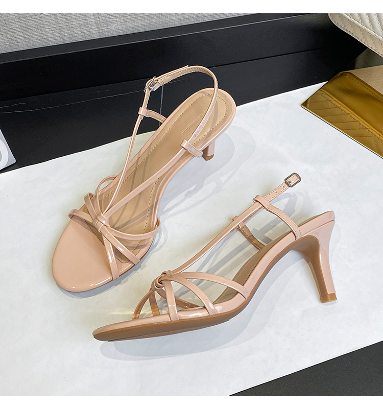 2025년 여름 인터넷 연예인의 새로운 스타일 버클 하이힐 여성용 스틸레토 힐, 아름다운 누드 컬러의 얇은 스트랩 샌들, 다용도스토어 가기