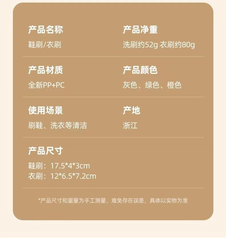 产品重量:64g(鞋刷)   97g(衣刷)  58g(纳米鞋刷)