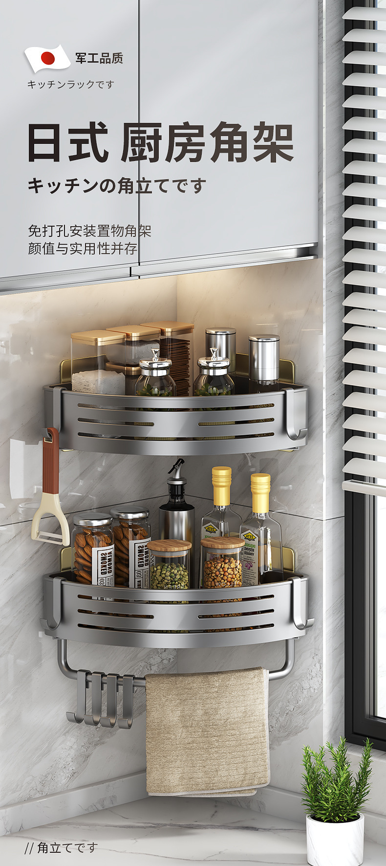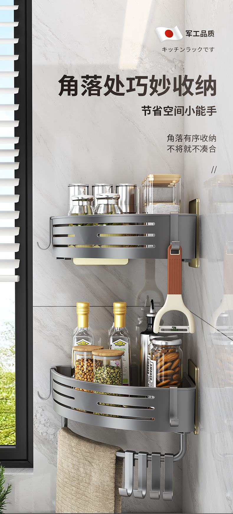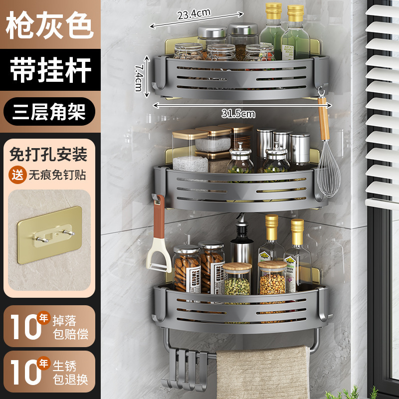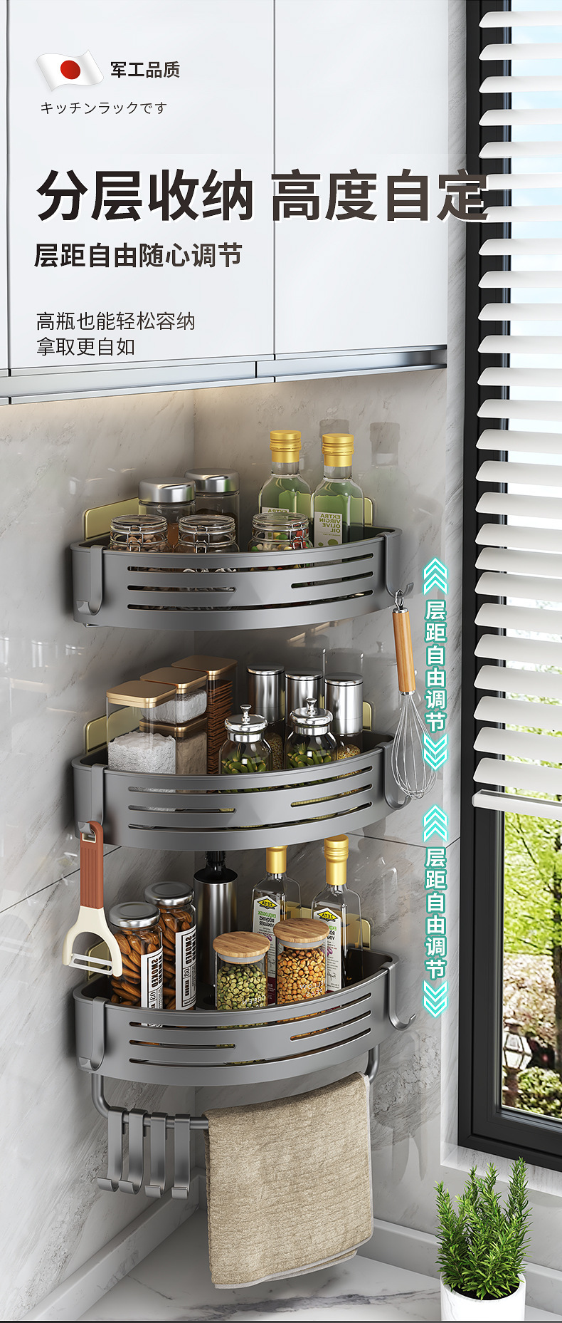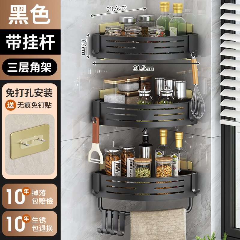 펀치없는 주방 보관 랙 다기능 가정용 저장 벽 장착형 조미료 완벽한 스토리지 랙 코너 랙