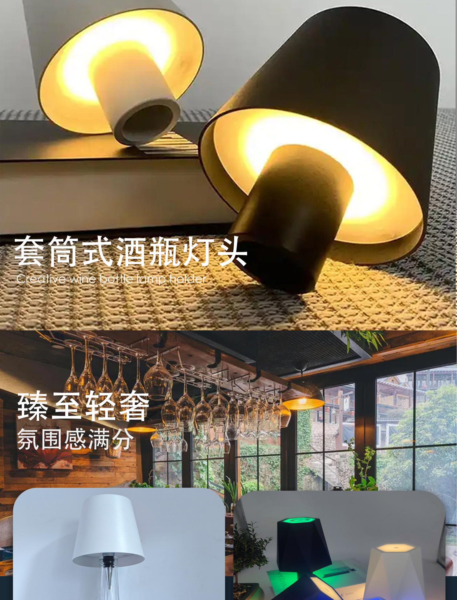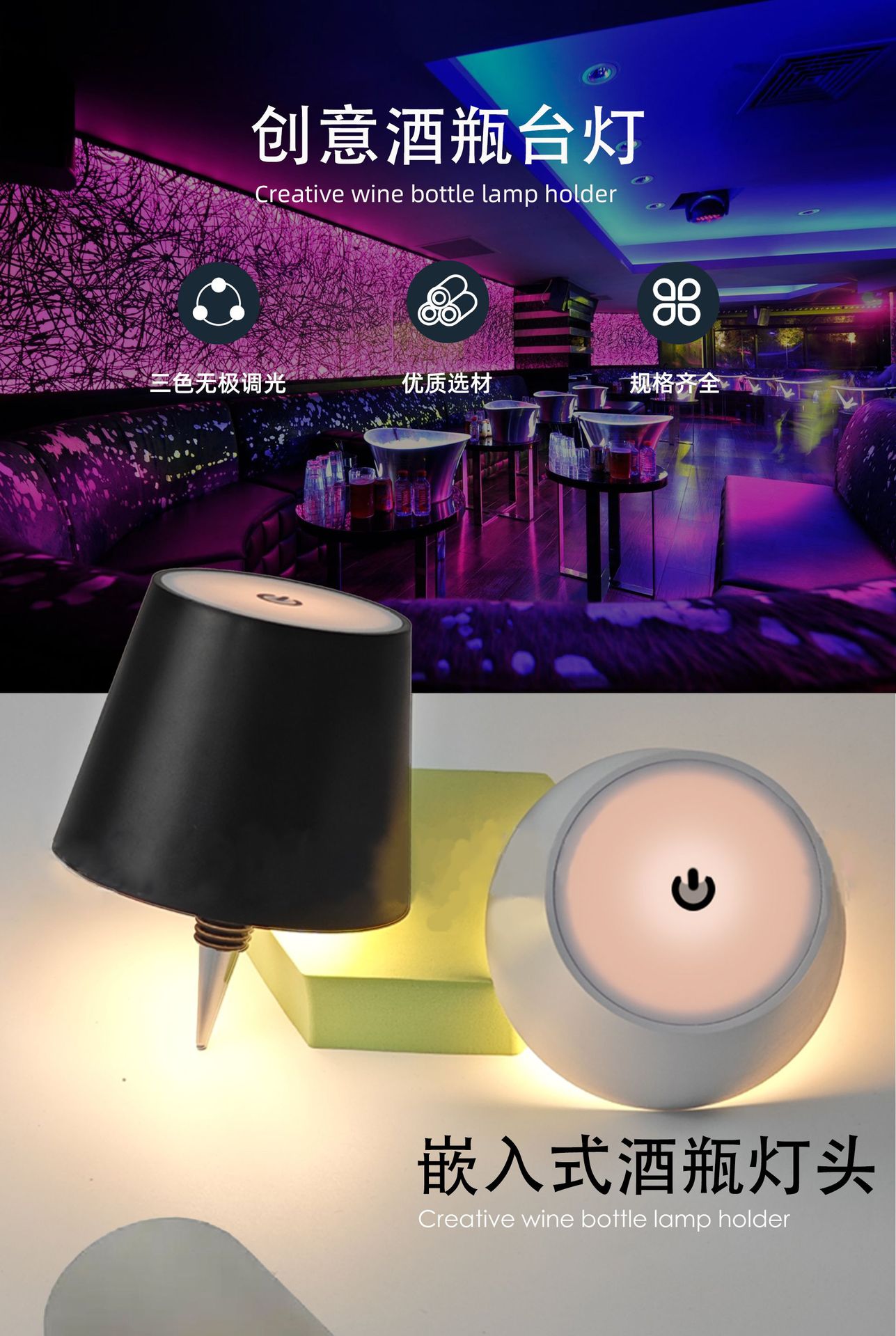 휴대용 와인병 테이블 램프, 야외 레스토랑 분위기 조절 가능 조명, USB 충전식 3색 장식 바 테이블 램프