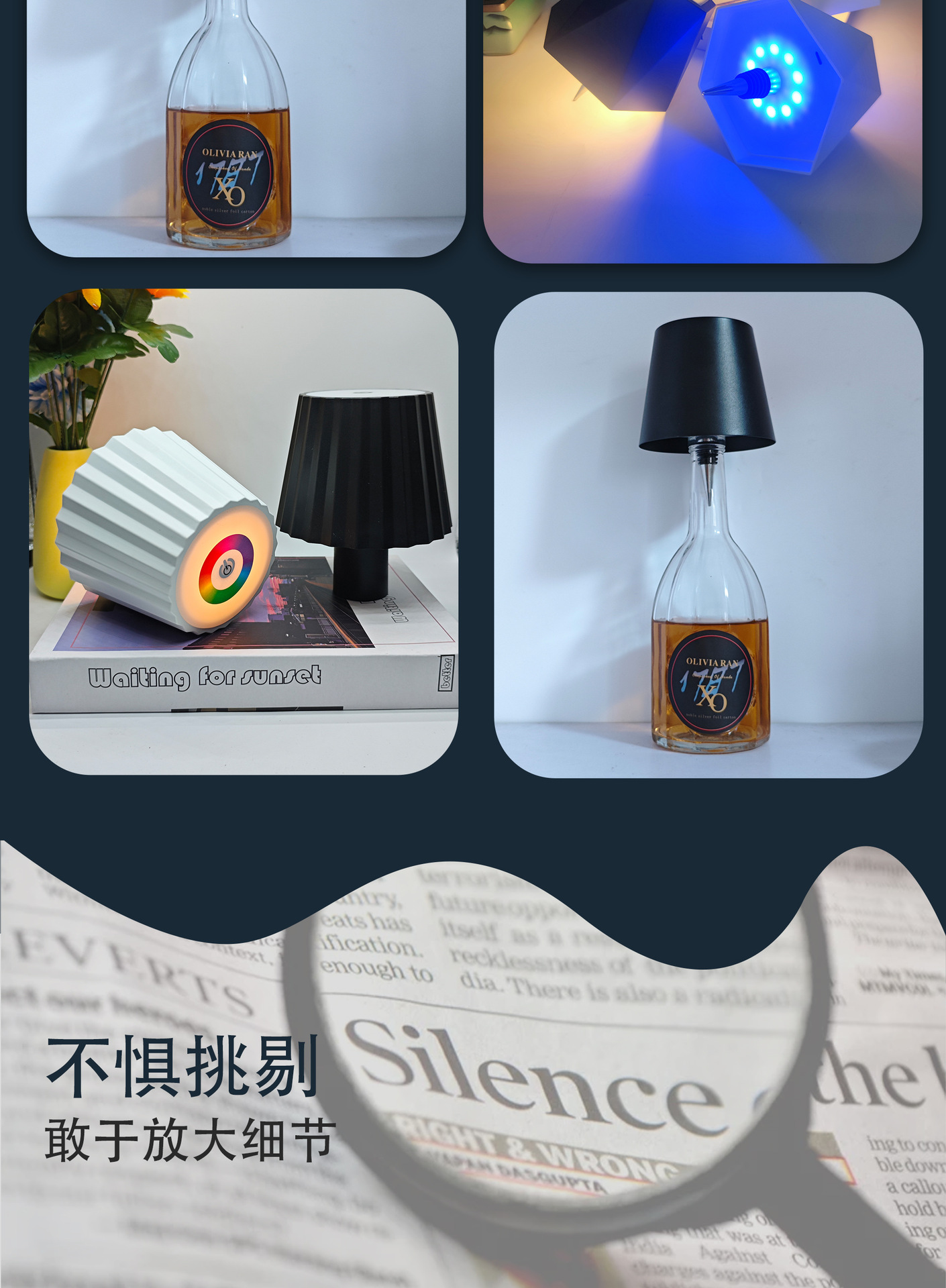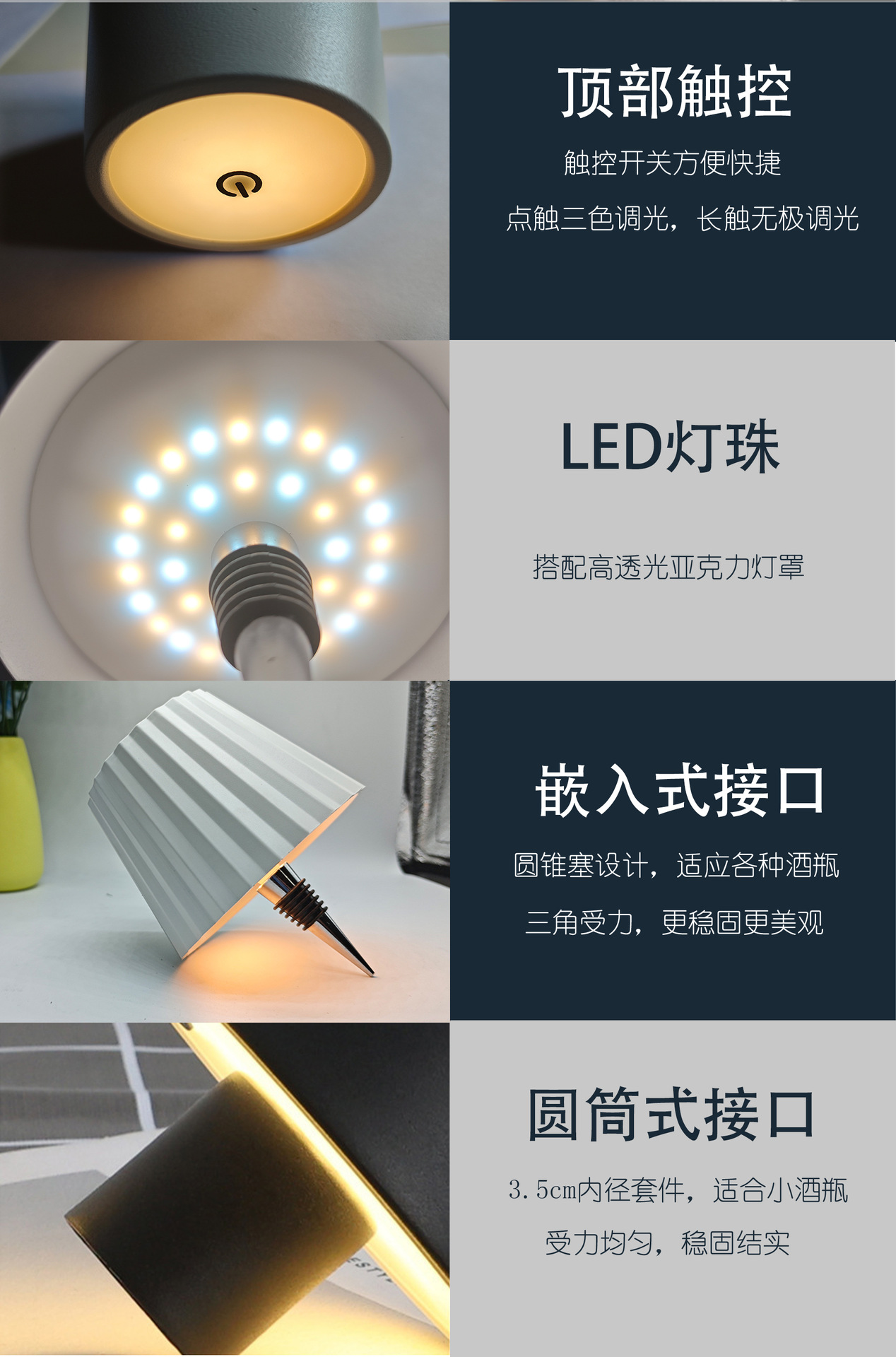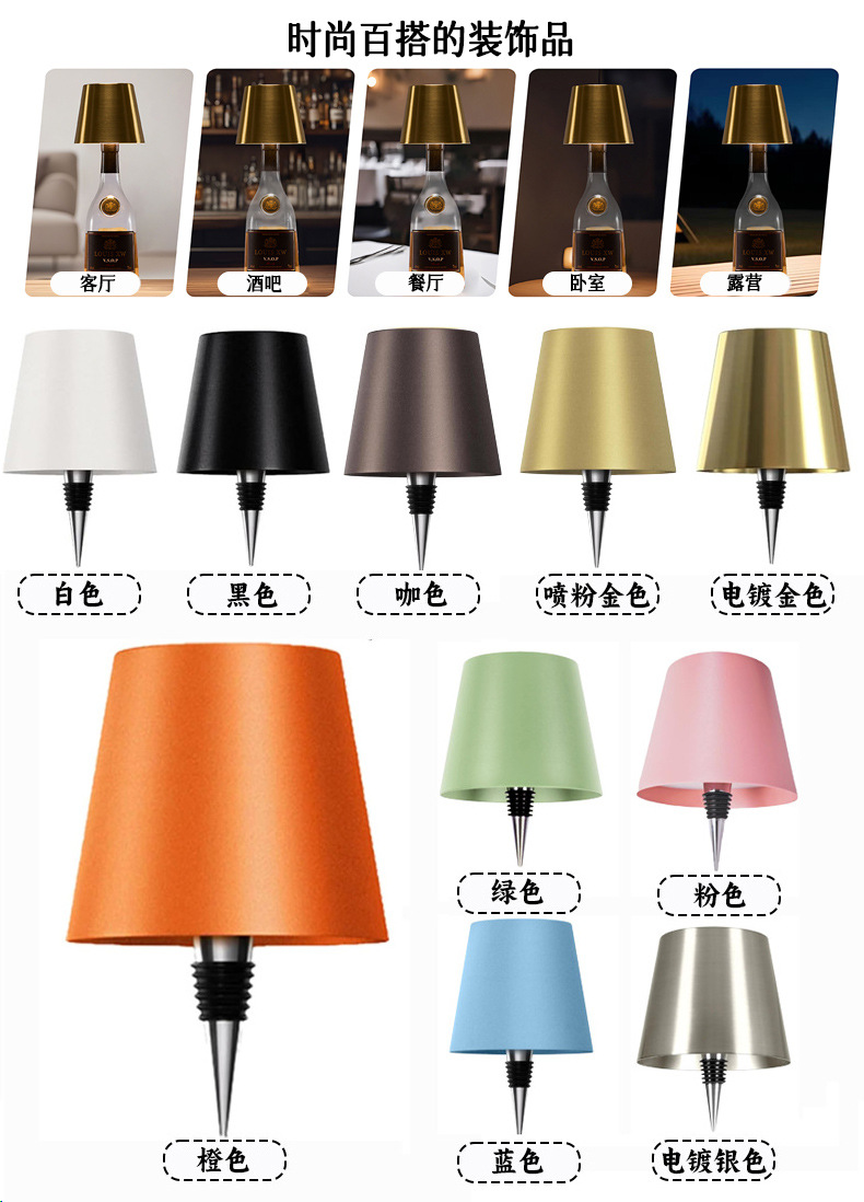 휴대용 와인병 테이블 램프, 야외 레스토랑 분위기 조절 가능 조명, USB 충전식 3색 장식 바 테이블 램프스토어 가기