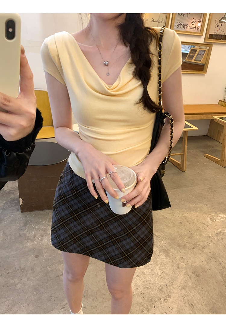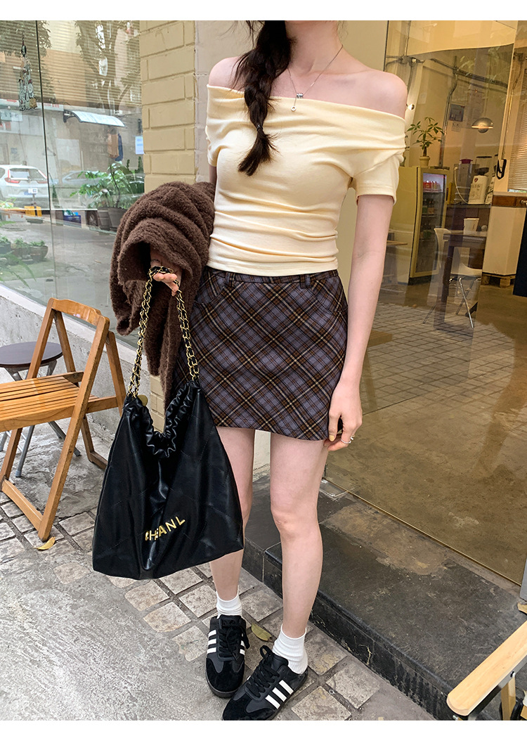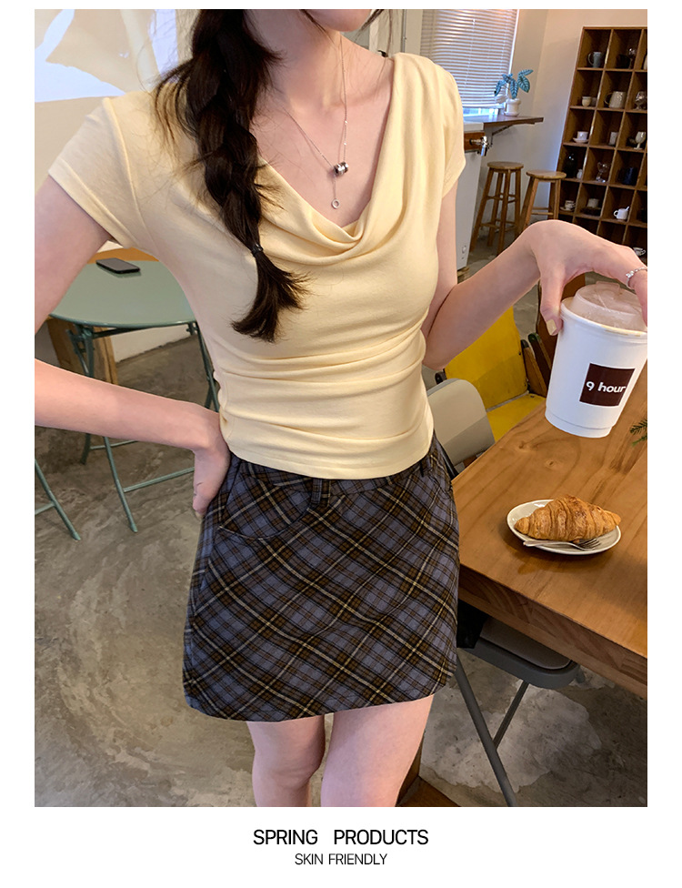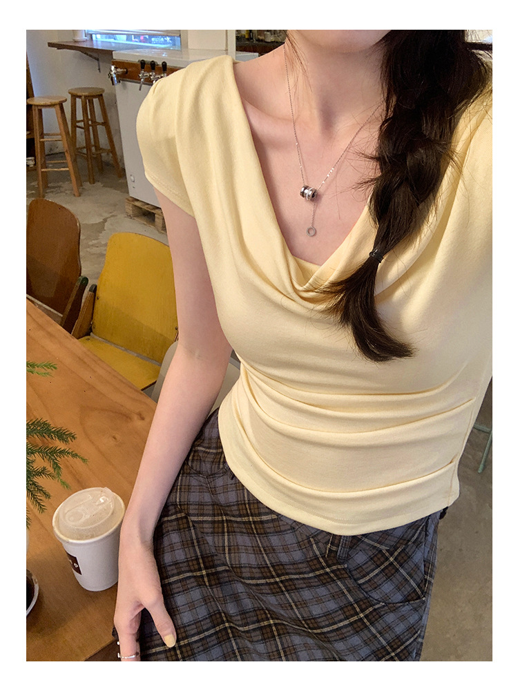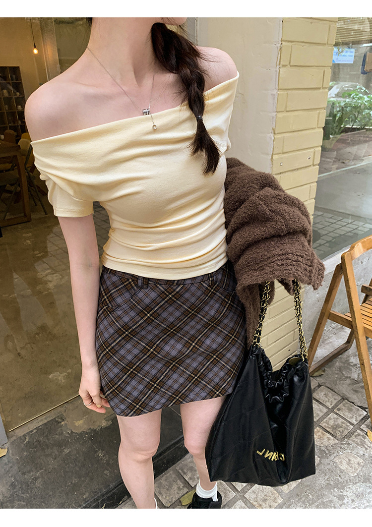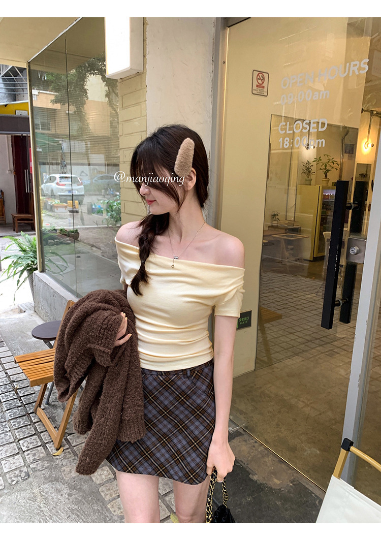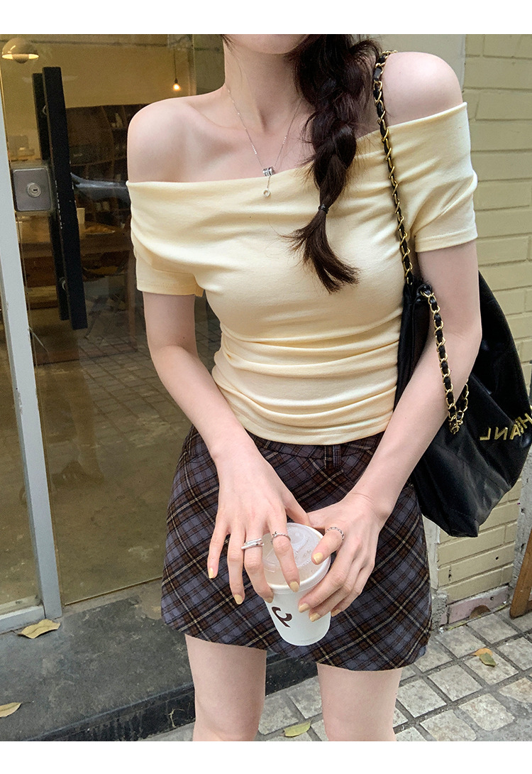 Ins 디자인 스레드 스윙 칼라 섹시한 뜨거운 여자 원 숄더 짧은 티셔츠 여성 슬림 슬림 반팔 탑 여성 유행스토어 가기
