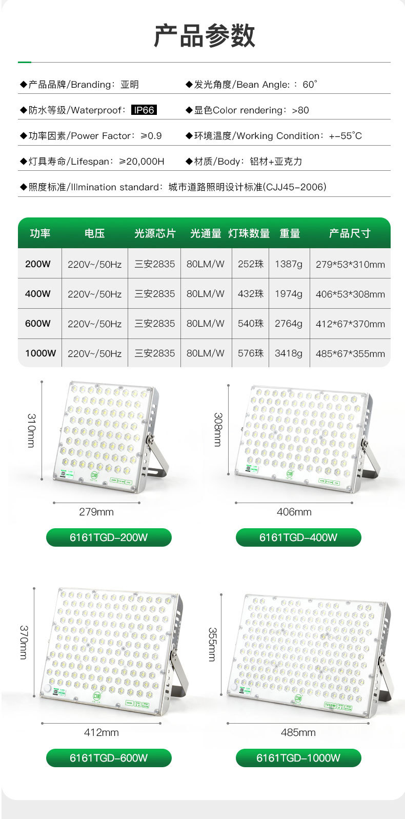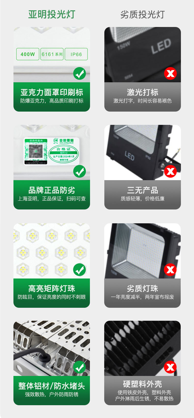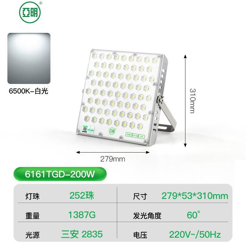 上海亚灯2020足瓦户外防水LED投光灯200W工程广告球场超亮泛光灯