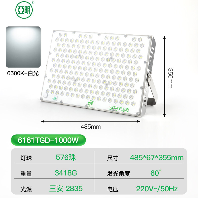 亚明led射灯6161投光灯大功率1000W工地防水防雷室外照明球场灯