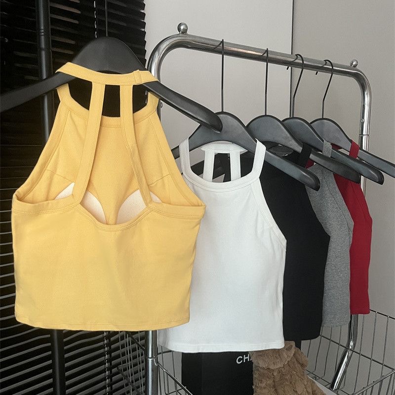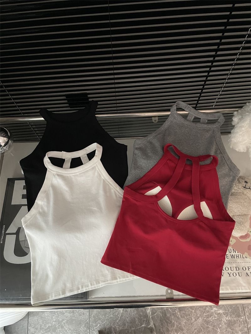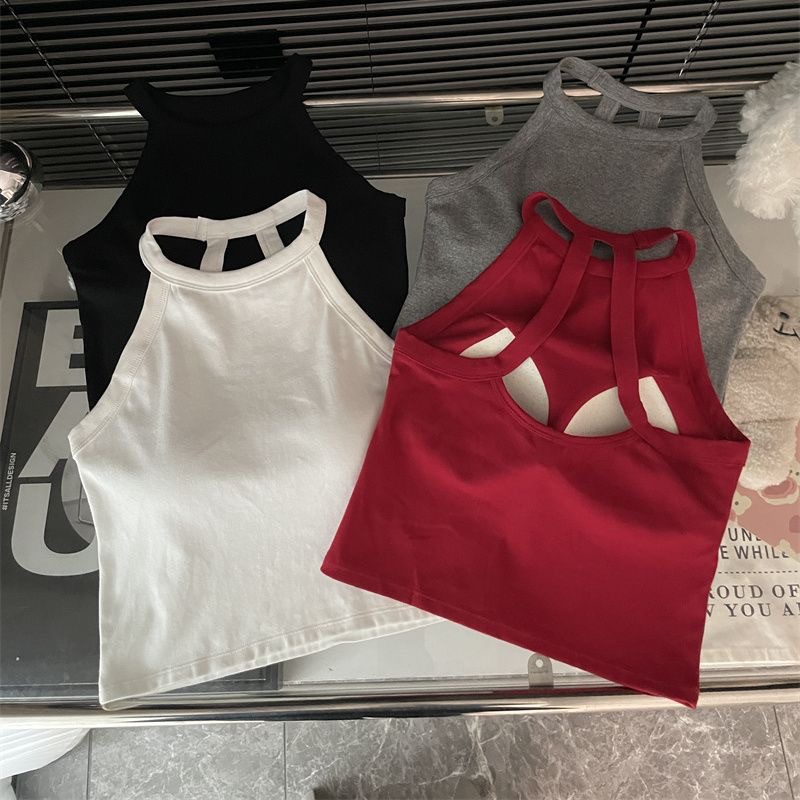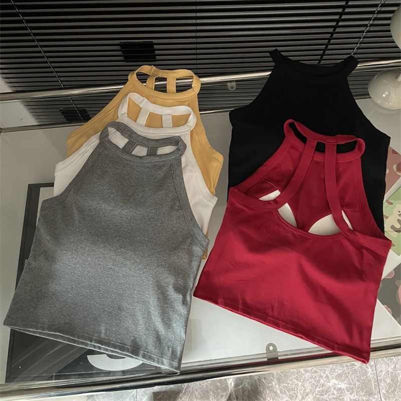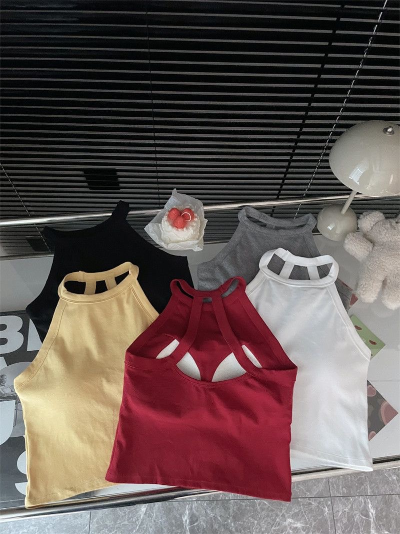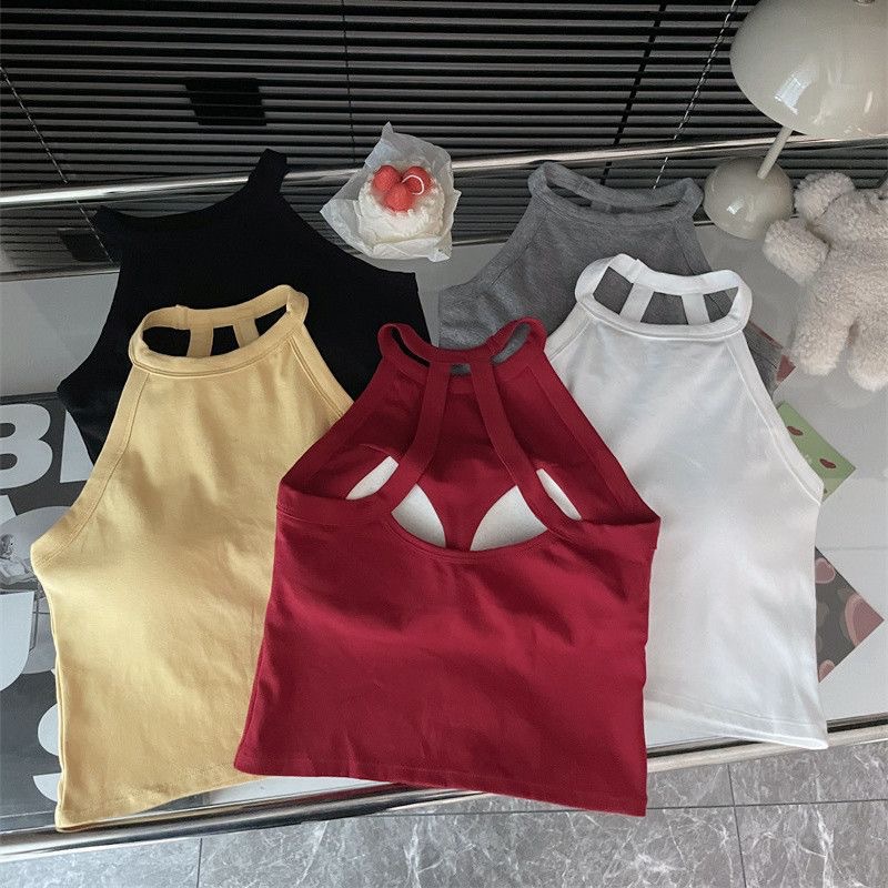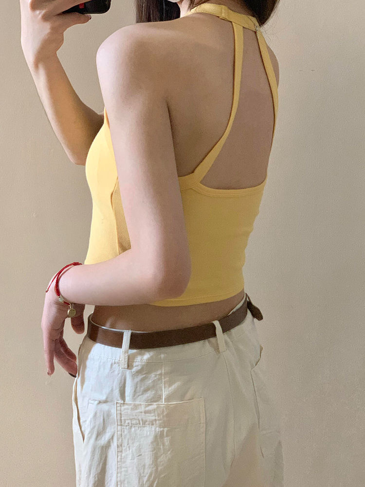 순수한 욕망 스파이스 소녀 여성의 여름 새로운 스타일 간단한 외부 매칭 백리스 가슴 패드 쇼트 탑스토어 가기