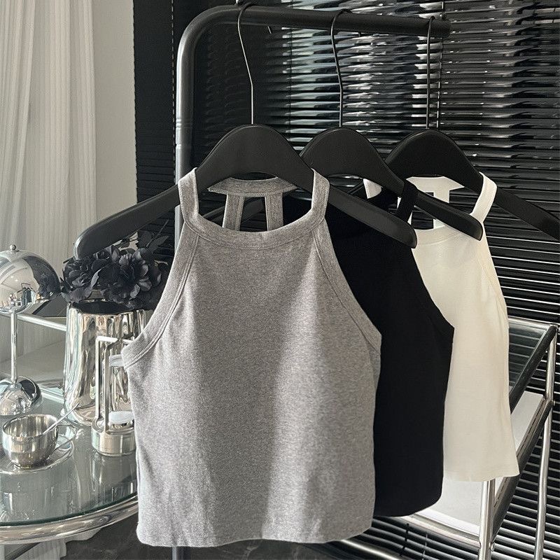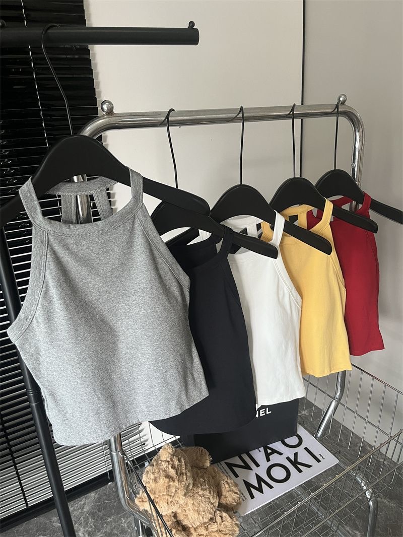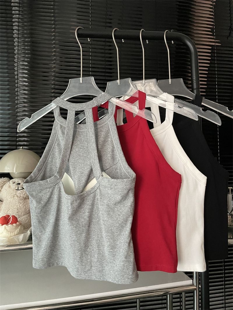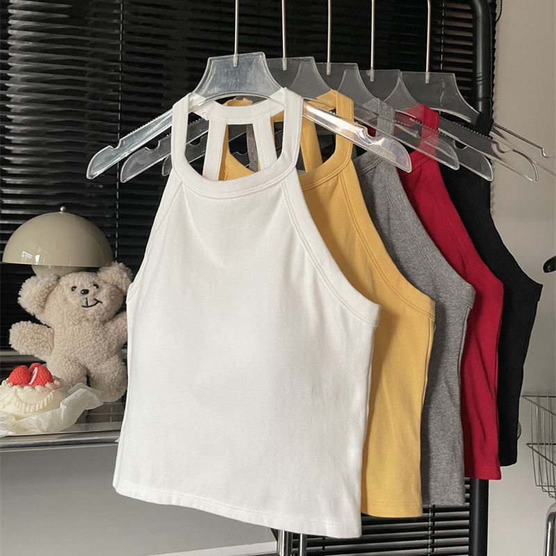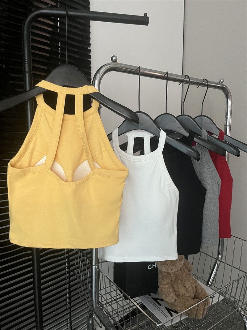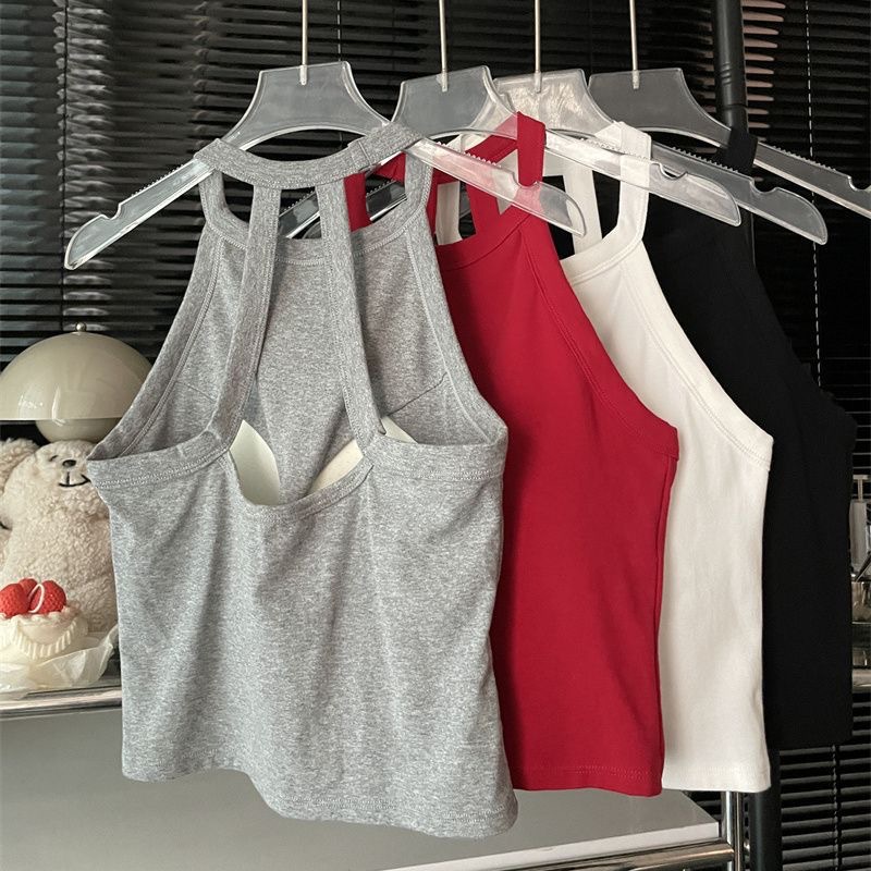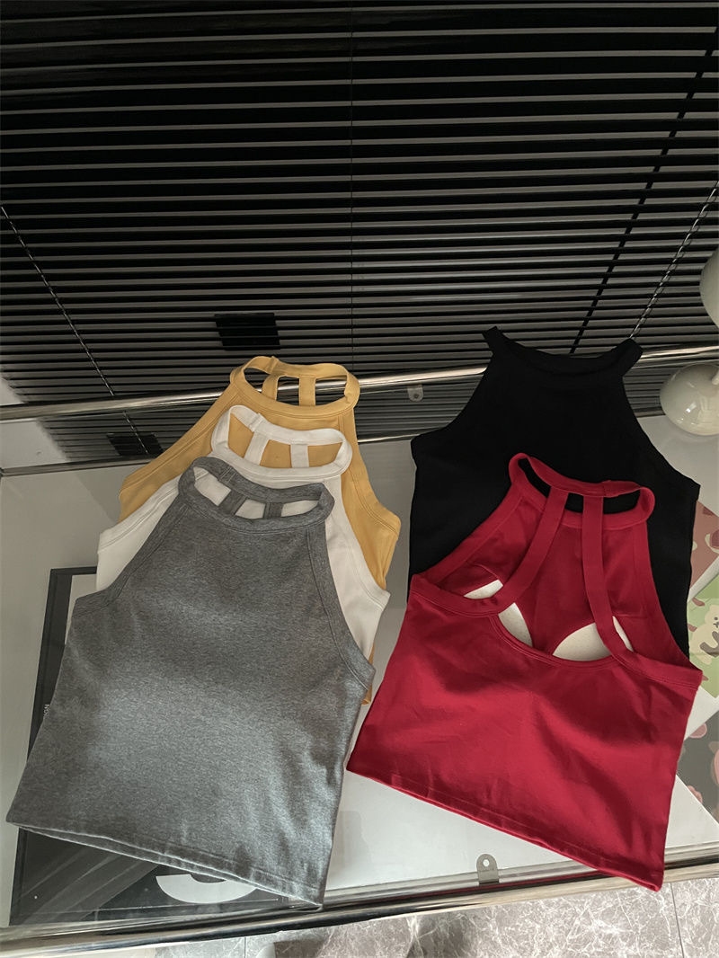 순수한 욕망 스파이스 소녀 여성의 여름 새로운 스타일 간단한 외부 매칭 백리스 가슴 패드 쇼트 탑스토어 가기